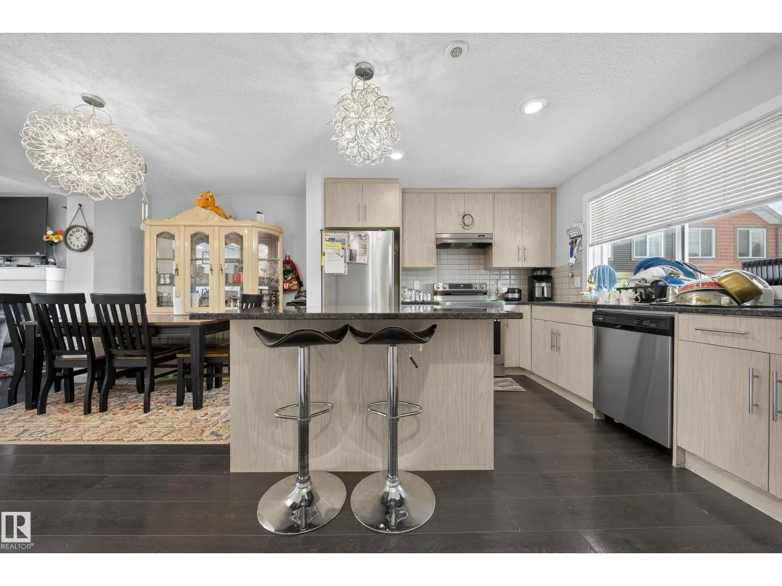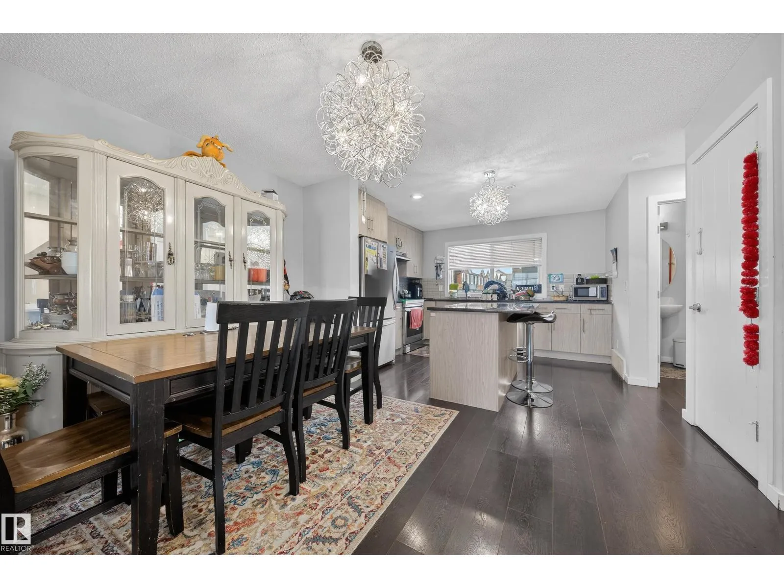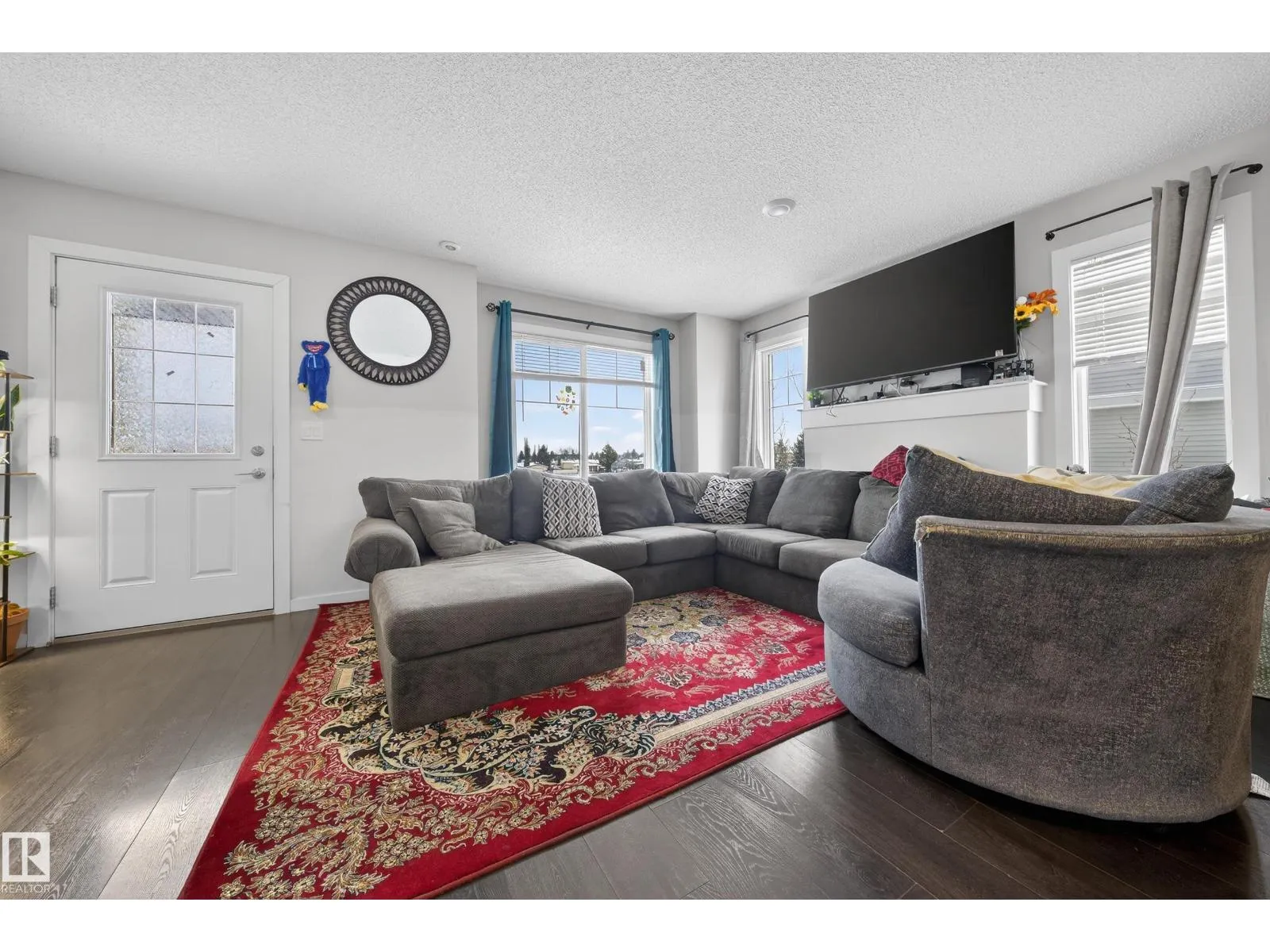 Discover this rare corner-unit townhouse backing directly onto a lush green space and playground in Kirkness community. As a premium end unit, extra side windows flood the home with natural light, highlighting the contemporary finishes throughout. The heart of the home features a gourmet kitchen boasting sleek quartz countertops, stainless steel appliances, and a convenient walk-in pantry. Relax in the spacious living room by the elegant fireplace or host guests in the dedicated dining area. Upstairs, the primary retreat offers a walk-in closet and private 3-piece ensuite. Two additional large bedrooms and a 4-piece bathâboth featuring quartzâprovide ample space for family. The versatile ground level is perfect for a home office, media room, or guest suite. Highlights: Double attached garage - Balcony overlooking peaceful greenery - Steps from Kirkness School & Fraser Ravine - Fast access to Anthony Henday & Yellowhead. A perfect blend of style, space, and nature ! (id:27476)