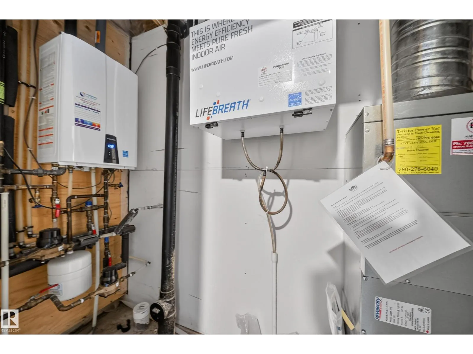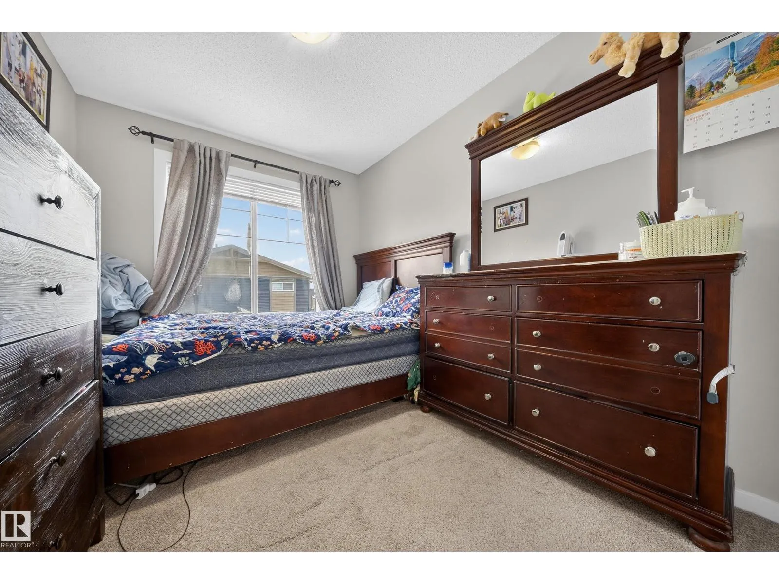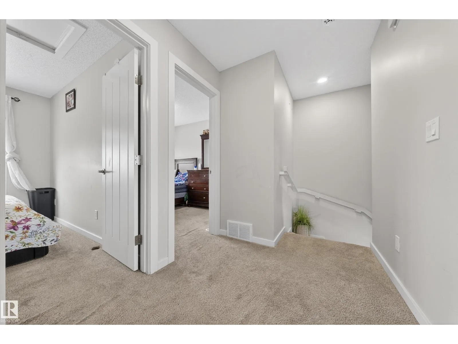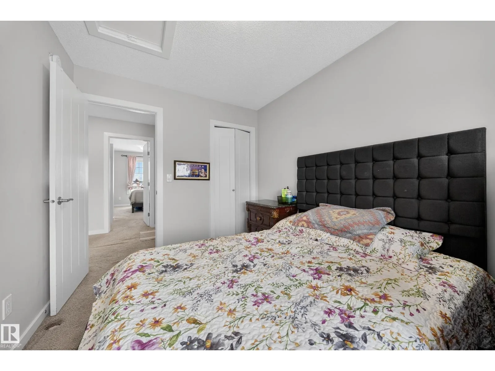 Discover this rare corner-unit townhouse backing directly onto a lush green space and playground in Kirkness community. As a premium end unit, extra side windows flood the home with natural light, highlighting the contemporary finishes throughout. The heart of the home features a gourmet kitchen boasting sleek quartz countertops, stainless steel appliances, and a convenient walk-in pantry. Relax in the spacious living room by the elegant fireplace or host guests in the dedicated dining area. Upstairs, the primary retreat offers a walk-in closet and private 3-piece ensuite. Two additional large bedrooms and a 4-piece bathâboth featuring quartzâprovide ample space for family. The versatile ground level is perfect for a home office, media room, or guest suite. Highlights: Double attached garage - Balcony overlooking peaceful greenery - Steps from Kirkness School & Fraser Ravine - Fast access to Anthony Henday & Yellowhead. A perfect blend of style, space, and nature ! (id:27476)