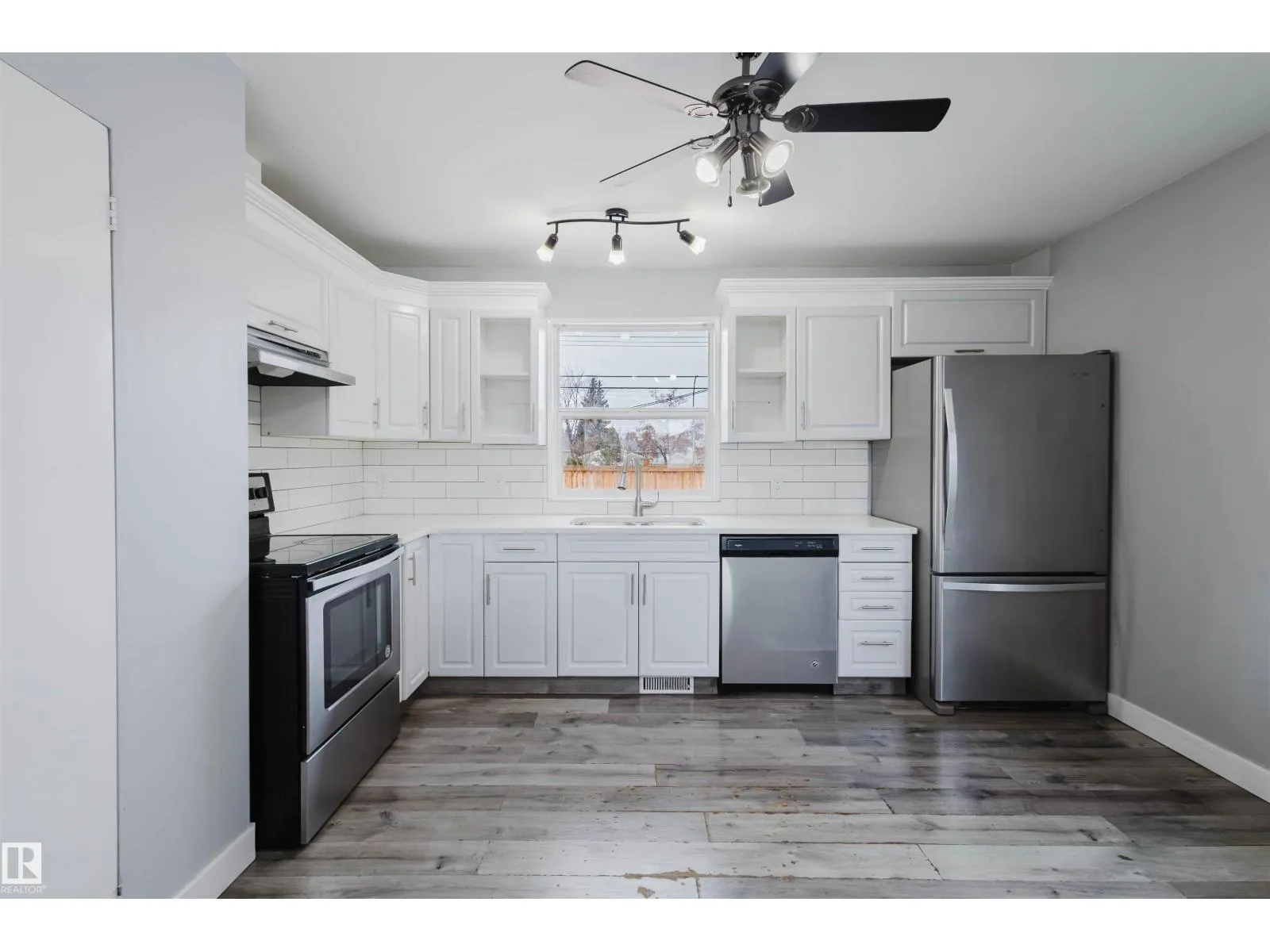 Solid 5 bedrooms & 2 full baths bungalow home with a second kitchen in the mature neighborhood of Mayfield. Sitting on a subdividable 50'X110' lot with a SOUTH facing backyard, this renovated home has so much to offer. Spacious living room features a large window overlooking the quiet front street. Bright kitchen has newer cabinets, granite countertops & SS appliances. 3 good sized bedrooms and a renovated full bath complete the main floor. Basement has a large family room, a second kitchen, a 3 pc bath and TWO more bedrooms. Outside newer sidewalks leading to your double garage w/ extra parking space on the side.Newer shingles, furnace and fence. Convenient location with walking distance to 2 Great Elementary Schools, Park Space & Playground. Easy access to nearby Junior High, High Schools or uofA and minutes to West Edmonton Mall, Yellowhead or Henday. (id:27476)