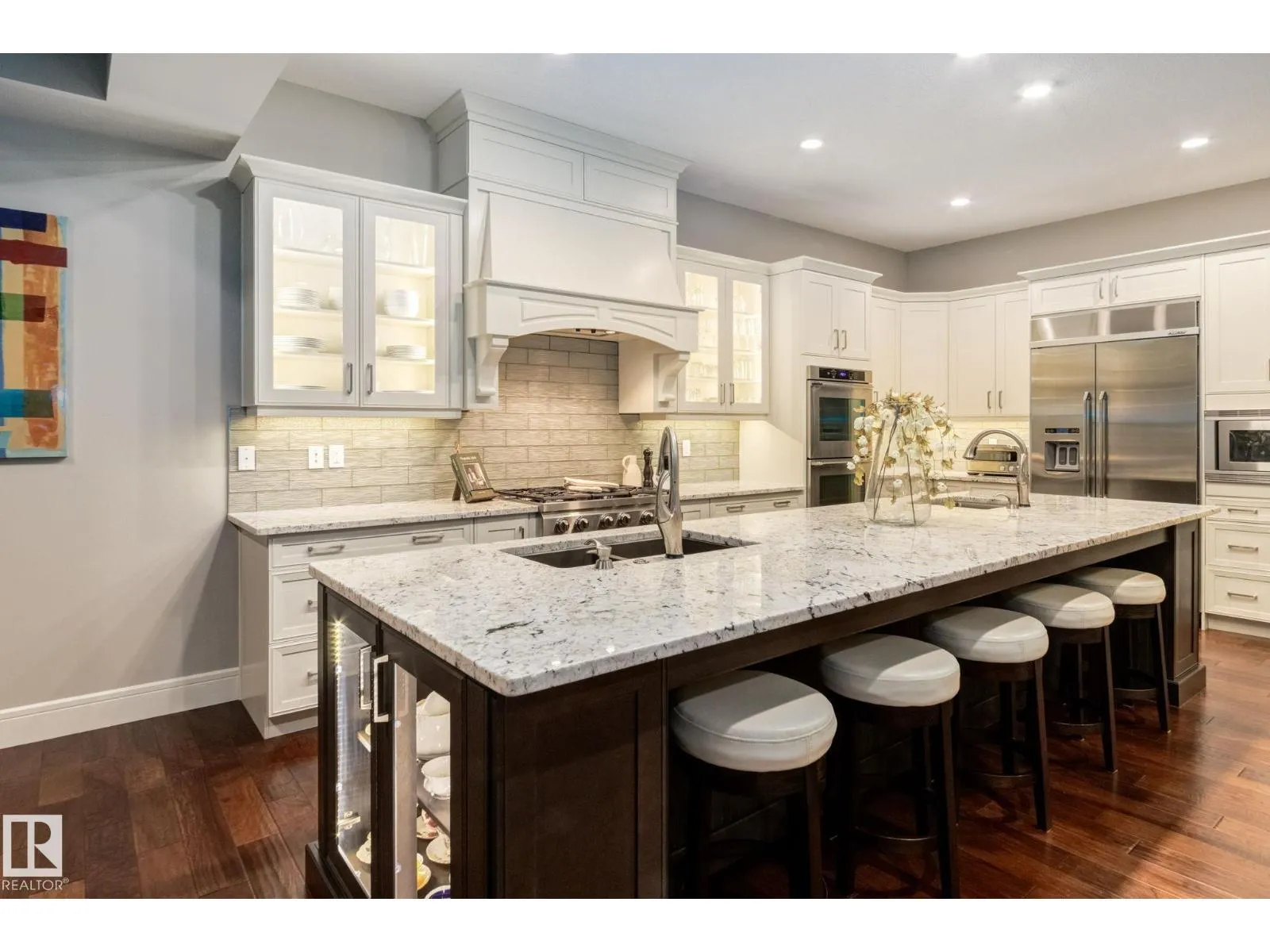 Set on a quiet cul-de-sac in prestigious Westpointe, directly across from the ravine & on a 1/3-acre lot, this stunning walk-out estate offers a rare blend of luxury, scale, & thoughtful design. The chefâs kitchen is beautifully appointed with premium Dacor appliances, a stunning 13' island, & a fully equipped butlerâs pantry. Entertaining is effortlessly elevated in the formal dining room with tray ceiling details & the living room with rich coffered ceilings. Created for seamless main-floor living, discover an elegant primary retreat complete with a fireplace & spa-inspired en-suite. Upstairs, a spacious family lounge overlooks the grand foyer, while 3 bedrooms that each enjoy their own en-suite. The lower level offers a sophisticated wet bar, glass wine room, theatre, gym, bedroom, & covered patio. Finished with practical luxuries including Hunter Douglas blinds, whole home sound, triple heated garage, & Built Green efficiency. Direct access to river valley trails, sought after schools & amenities. (id:27476)