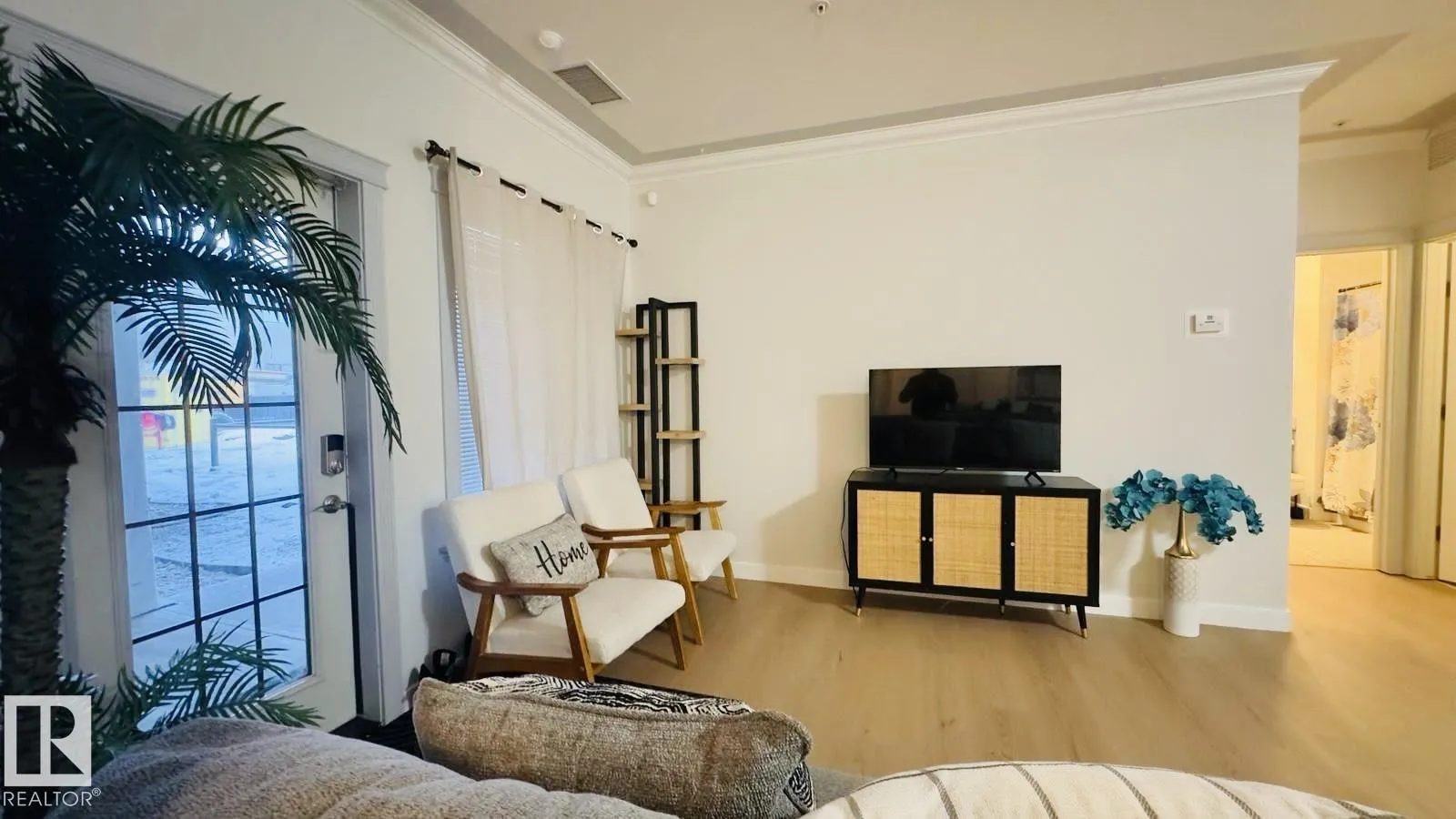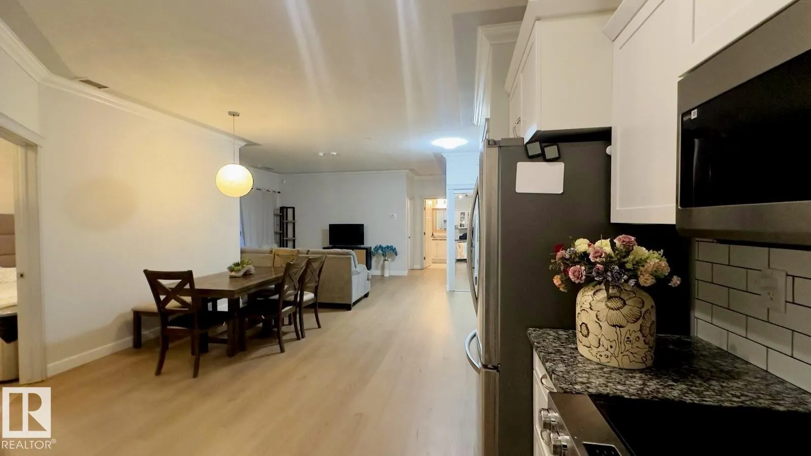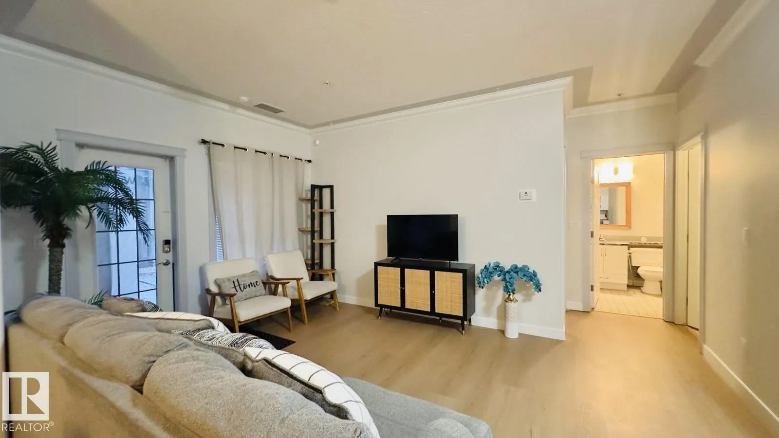 Experience FANTASTIC VALUE in this bright, open-concept 2-bedroom, 2-bathroom ground-floor retreat! The modern kitchen shines with GRANITE COUNTERTOPS, a stylish ceramic backsplash, and premium stainless-steel appliances. Elegance meets function with crown moldings, a spacious living area separating the bedrooms for privacy, and in-suite laundry. Pet owners will love the secure patio door offering direct outdoor access. This well-managed building boasts a fitness center, sauna, social room, and titled underground parking. Nestled in a vibrant Northeast Edmonton hub, you are minutes from the scenic River Valley and Clareview Recreation Centre. Enjoy ultimate convenience with elite shopping at Manning Town Centre and easy access to the LRT system for a seamless commute downtown or to the University. With the Anthony Henday and Manning Freeway nearby, this is a perfect home for starters, students, or investors seeking a turnkey property in a growing community near parks and schools! (id:27476)