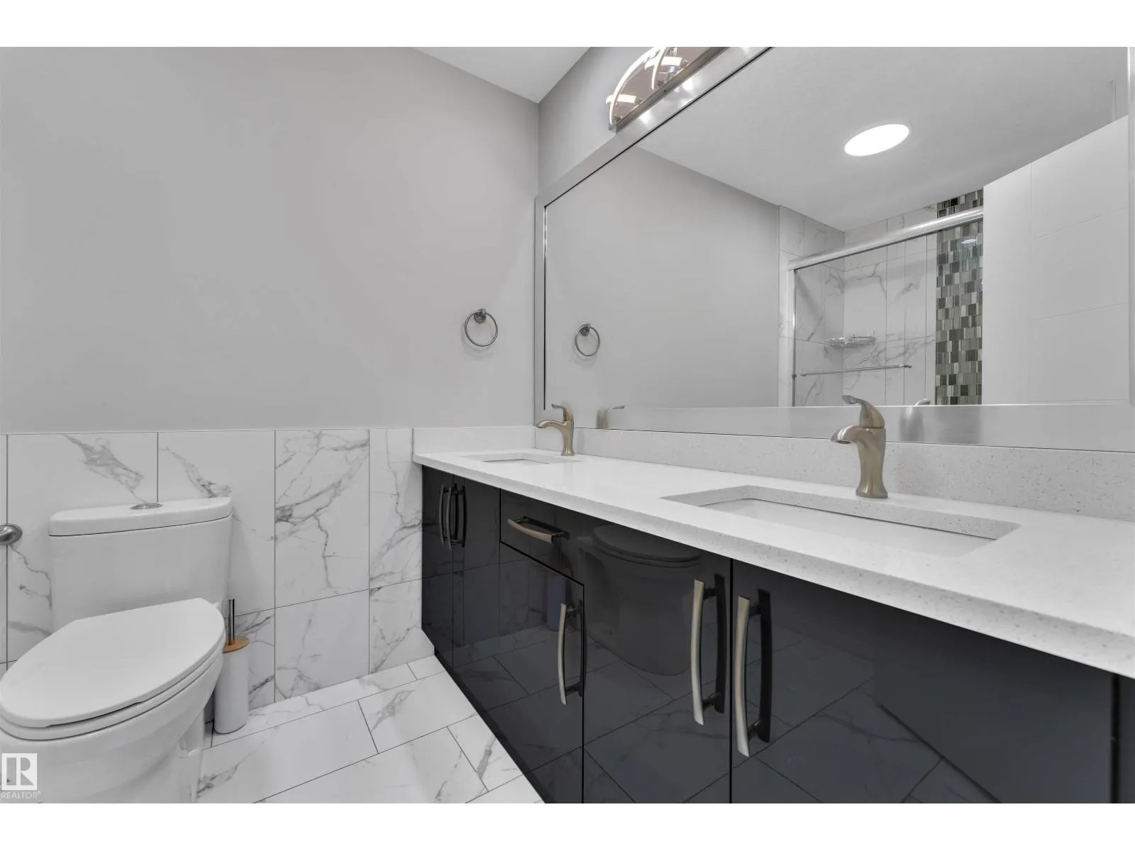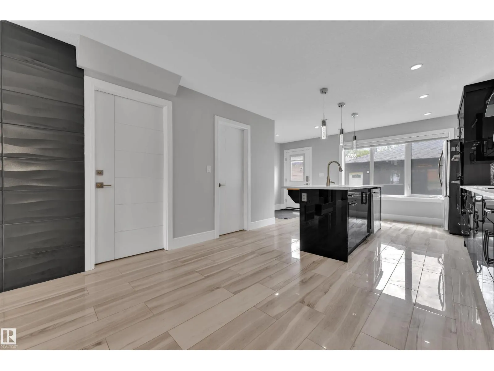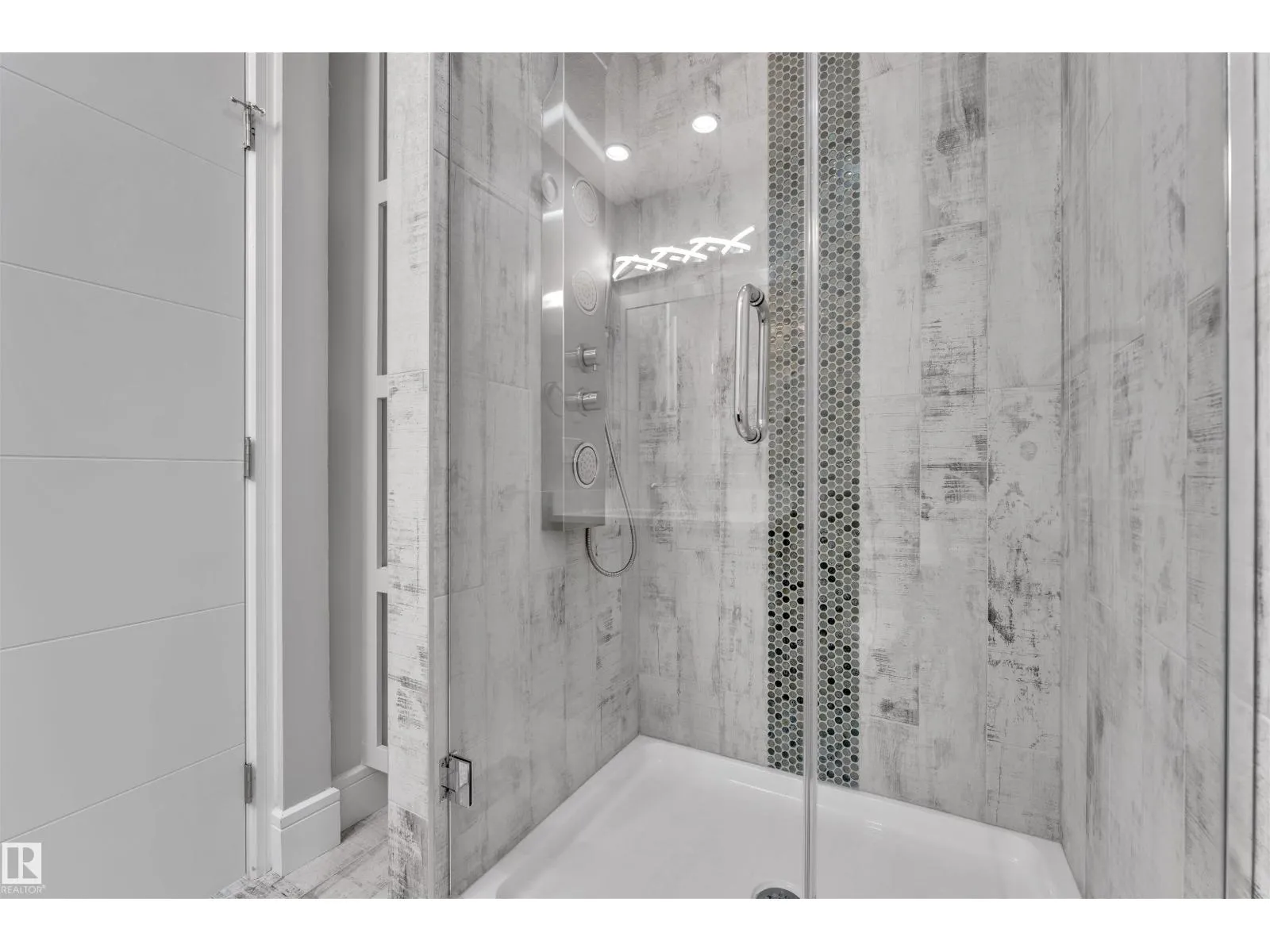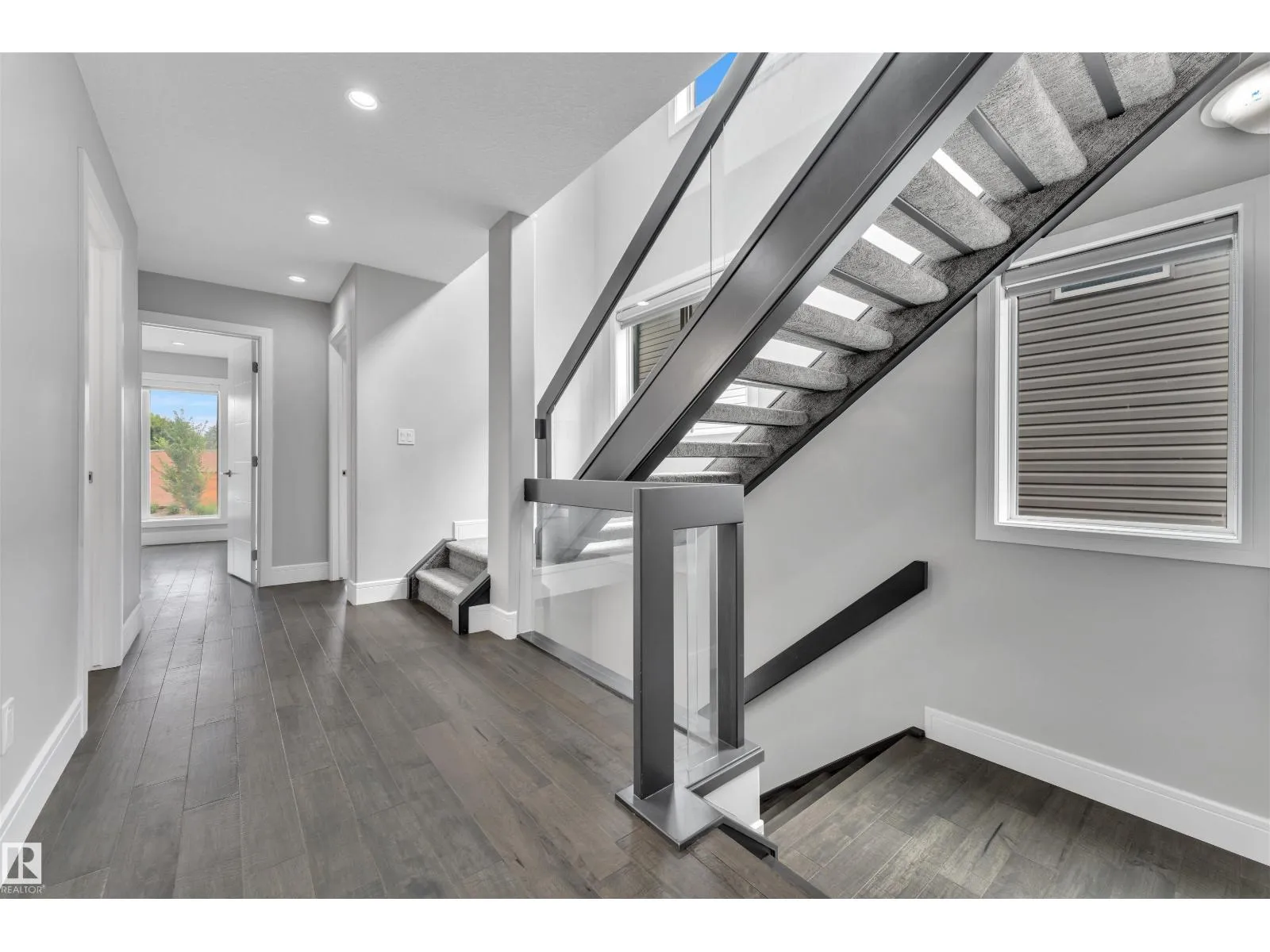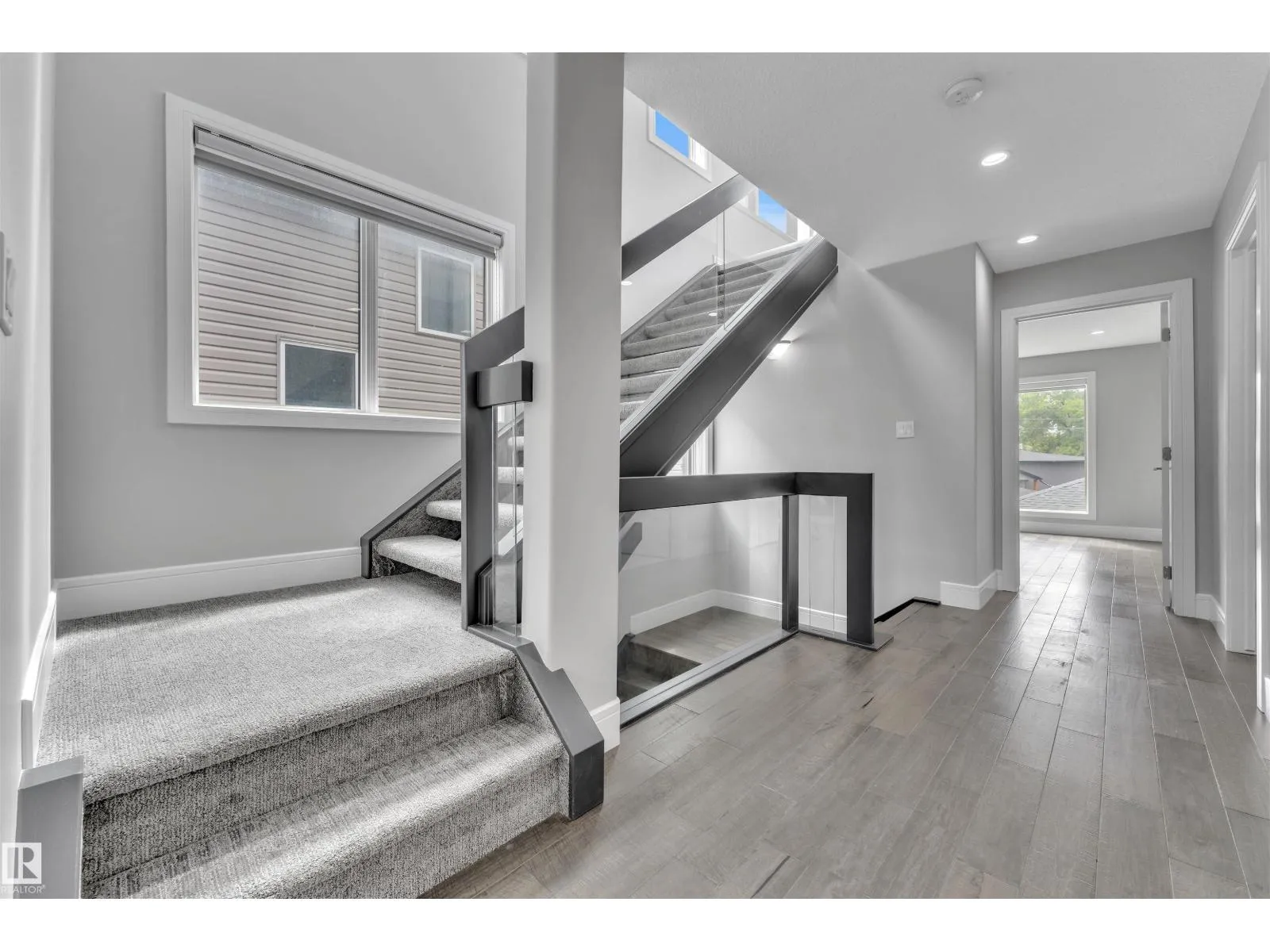 One-of-a-kind, fully finished three-storey duplex with a legal basement suite located in the highly desirable community of Bonnie Doon, right on the edge of Downtown Edmonton. This beautifully upgraded home features hardwood flooring throughout, triple pane windows, and high-end finishes on every level. The main floor offers a modern kitchen with quartz countertops, high-end appliances, a half bathroom, and double patio doors that lead to the backyard and double detached garage. The second level includes a spacious primary bedroom with a double-sink ensuite, two additional bedrooms, and a full common bathroom. The third level is a rare findâfeaturing a large bonus room and two rooftop terraces at the front and rear, offering stunning views of Downtown. The fully finished basement is a legal one-bedroom suite with a full bathroom, heated tile flooring, and its own high-end kitchen appliancesâideal for rental income or extended family. This property truly stands out with its design, upgrades, and unbeatable (id:27476)