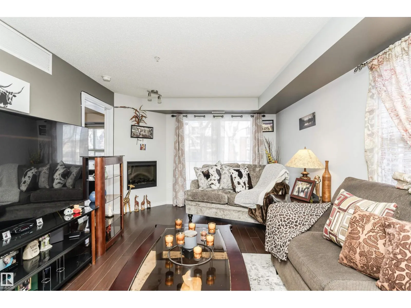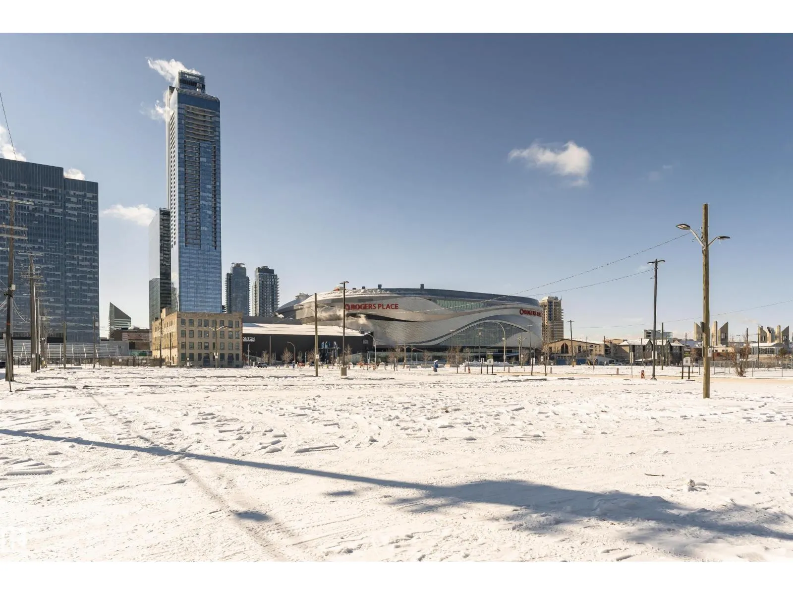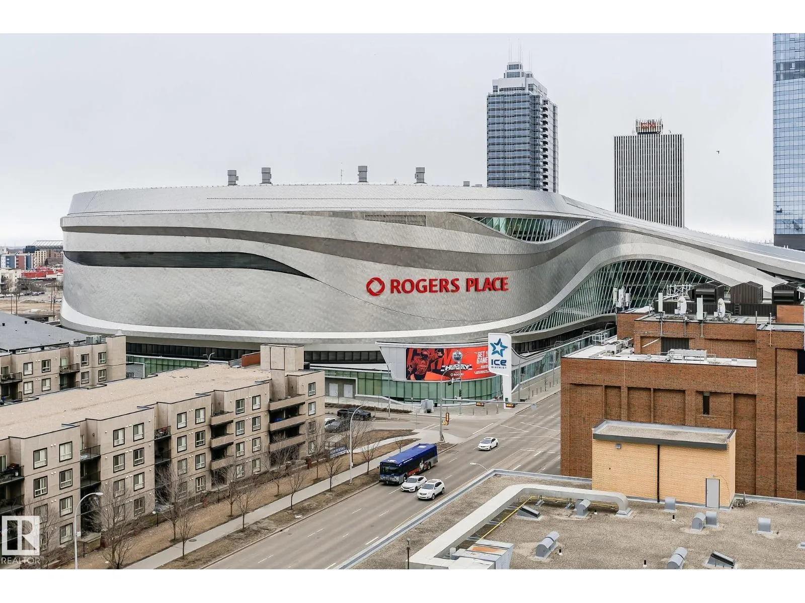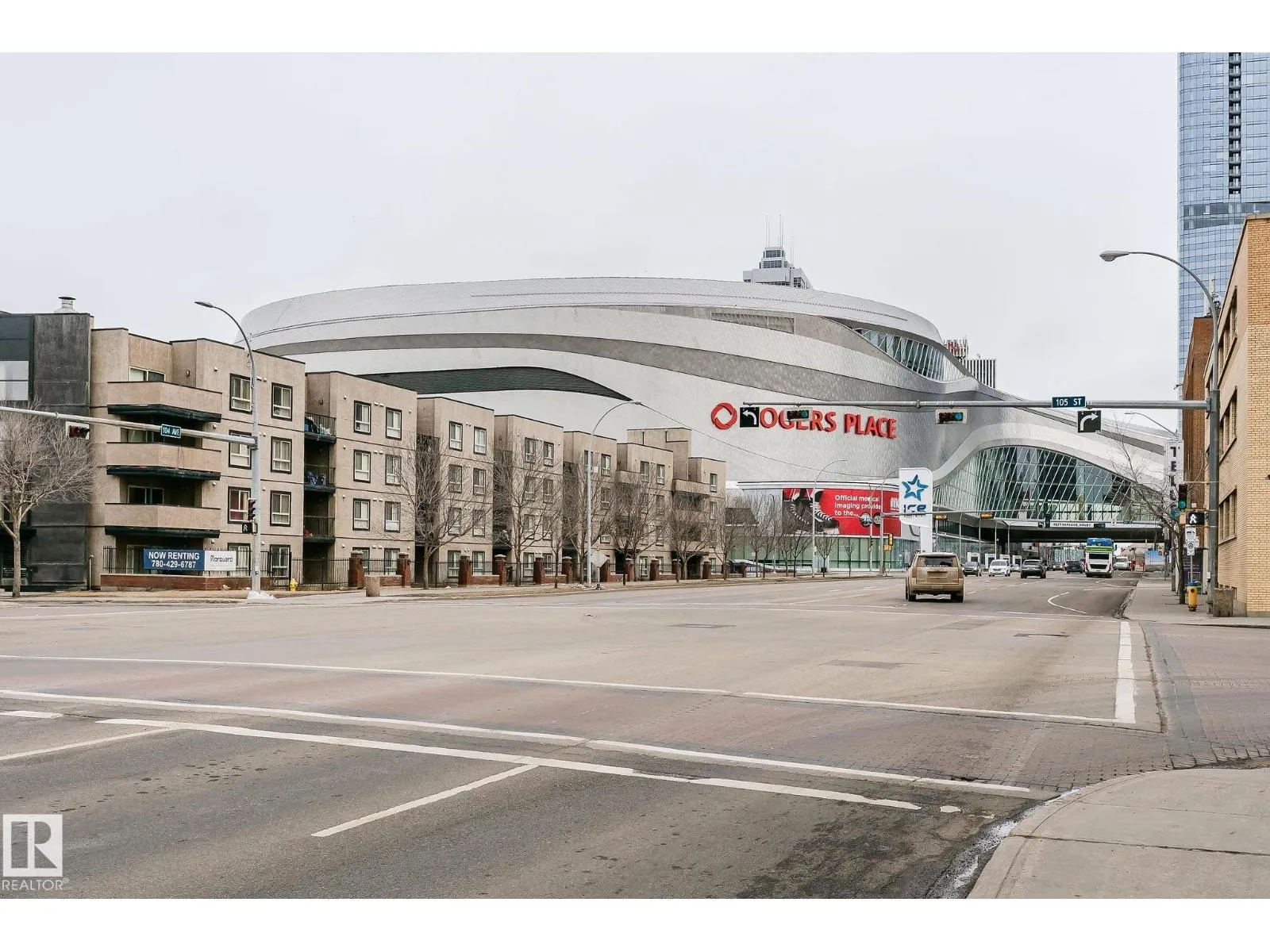 INVESTORS/AIRBNB,FIRST TIME BUYERS, STUDENTS ALERT ! Turnkey 2 bed, 2 bath condo located just steps away from Rogers Place and the ICE District then this unit is for you! This beautiful 1125sqft corner unit has an open concept design perfect for entertaining. Kitchen complemented with espresso cabinetry, large island, and S.S. appliances. Spacious dining room! Living room with corner gas fireplace and sliding glass door to your large patio complete with gas line for summer BBQs. Primary room offers walk-in closet and 3pc en-suite. Great size 2nd bedroom and 4pc main bath. In-suite laundry and storage room, central AC, and HEATED underground parking. Secure entrance to the building. NY style courtyard. Close to downtown core, City Center, LRT station, EPCOR Centre, Grant McEwan University, and Royal Alex Hospital. Great VALUE ! (id:27476)