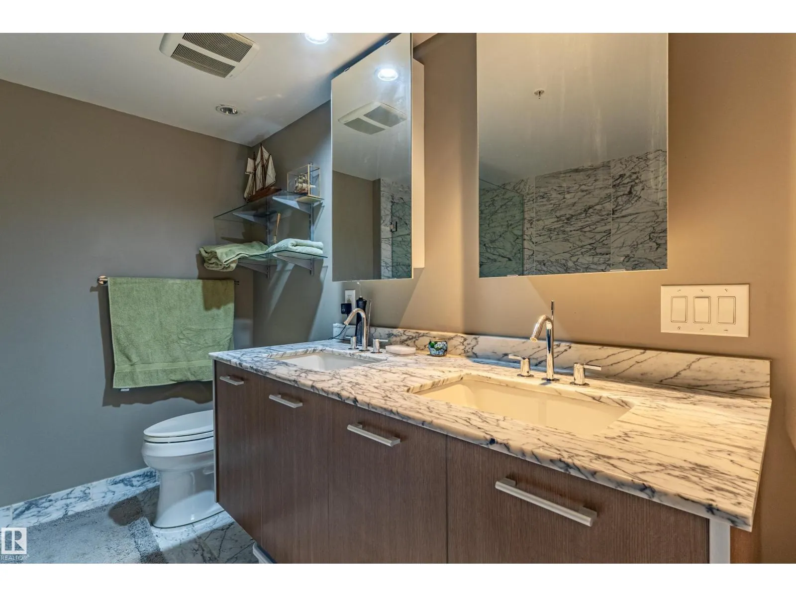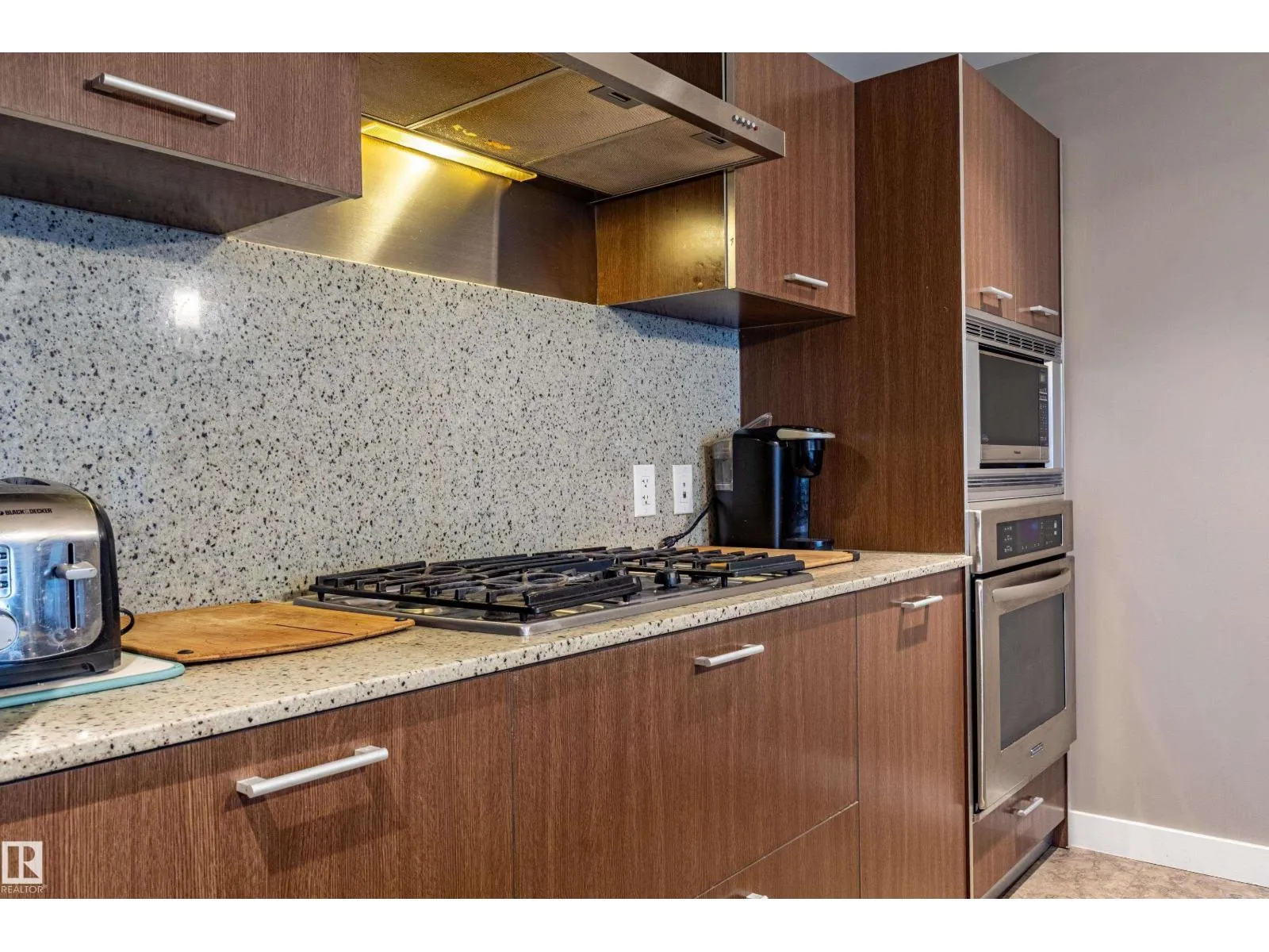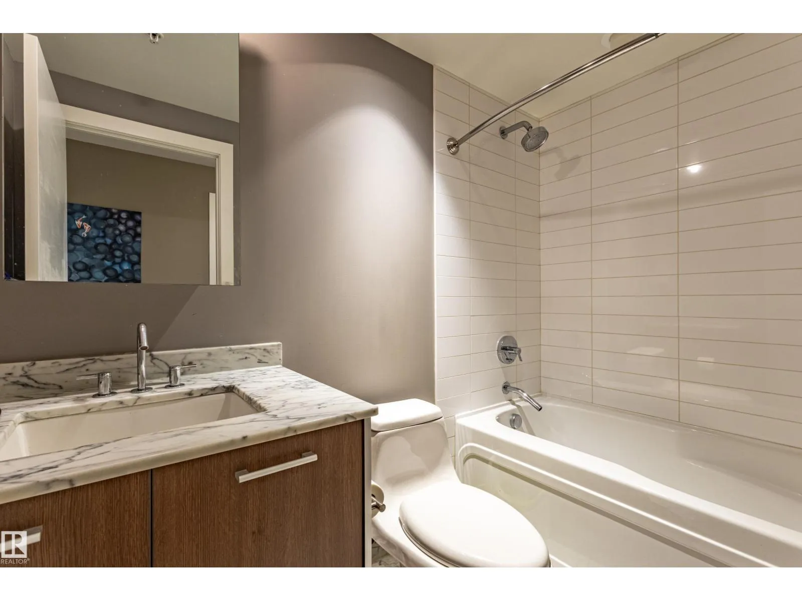 Welcome to this beautifully maintained 970 sq.ft. 2-bedroom, 2 full bathroom unit in One Century Park! This south-facing home offers abundant natural light and a peaceful courtyard view from your private balcony - perfect for relaxing or entertaining. Featuring 9â ceilings and an open-concept layout, the space is both functional and inviting. The kitchen is thoughtfully designed with granite countertops, under-mount sinks, marble backsplash, stainless steel appliances, and ample cabinetry, flowing seamlessly into the living area with a cozy electric fireplace. The primary bedroom features a well-appointed ensuite with dual sinks and a separate shower. Additional highlights include in-suite laundry, heated underground parking, and a secure storage cage. Condo fees include all utilities plus internet access. Ideally located within walking distance to Century Park LRT, shopping, dining, and everyday amenities - perfect for professionals or investors. (id:27476)