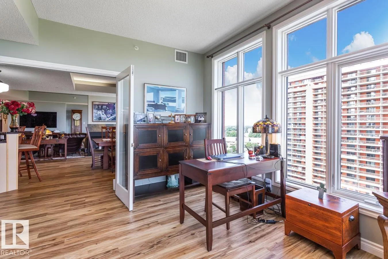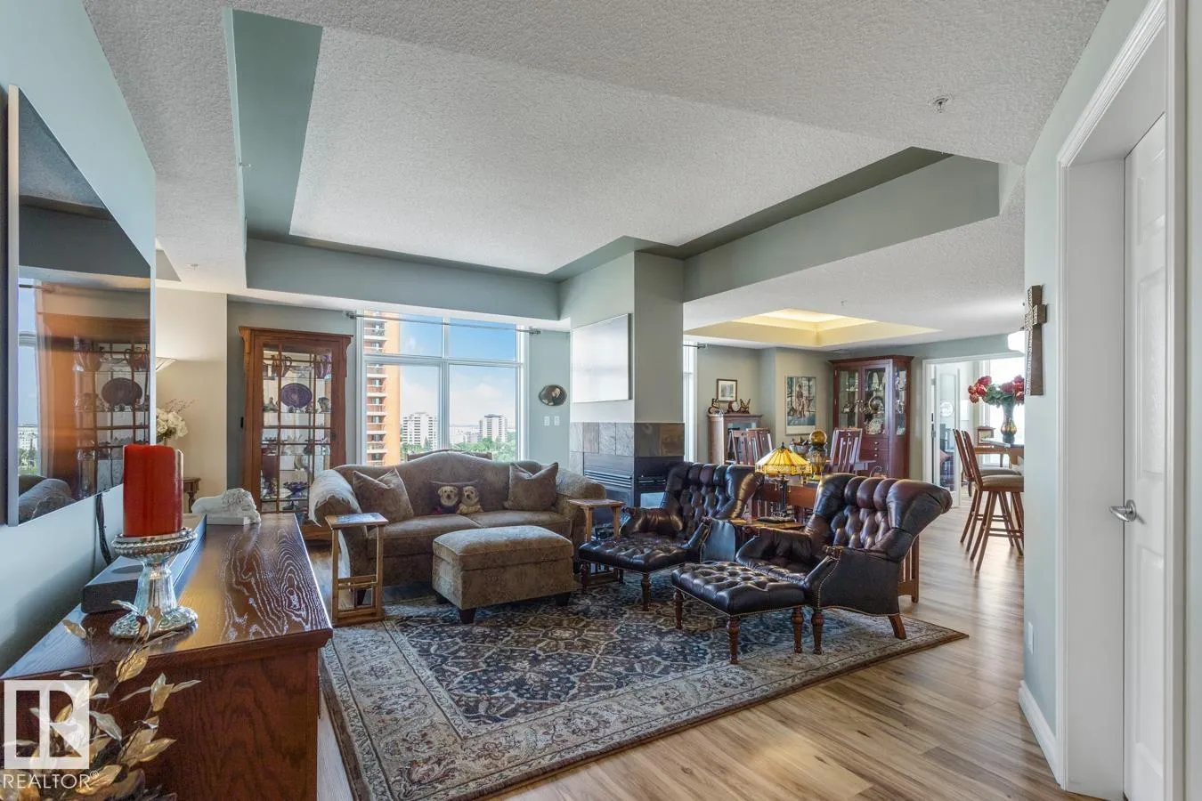 Exceptional Value in this Stunning 1538 sq/ft Two Bed + Den, Two Bath, Two Titled Underground Stalls, Air conditioned Hi Rise Condominium with River Valley & City Views. This bright & spacious home features an open floor plan with floor to ceiling triple pane windows in the main living area with a three sided fireplace offering some separation. The cooks kitchen has a pantry, island with breakfast bar, granite counter tops, glass tile backsplash & top of the line stainless steel appliances. The primary bedroom has a walk in closet & updated four piece bath, the 2nd bedroom is located just off the updated 3 piece bath. The view-t-full Den is going to be the sought after work space. The east/south balcony has a gas line for the bar-b-q. The home features numerous updates including luxury vinyl plank flooring, updated baths, granite counter tops, appliances, Fan Coil Unit & more! Building amenities include gym, building manager & social room. Pets x one are allowed 10 kg max weight with board approval. (id:27476)