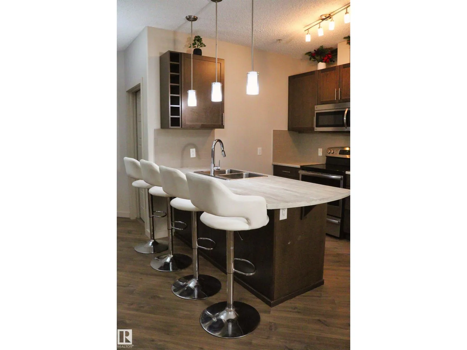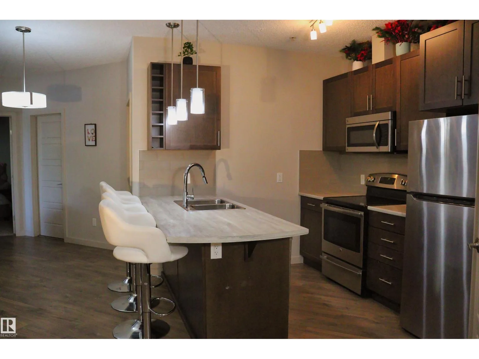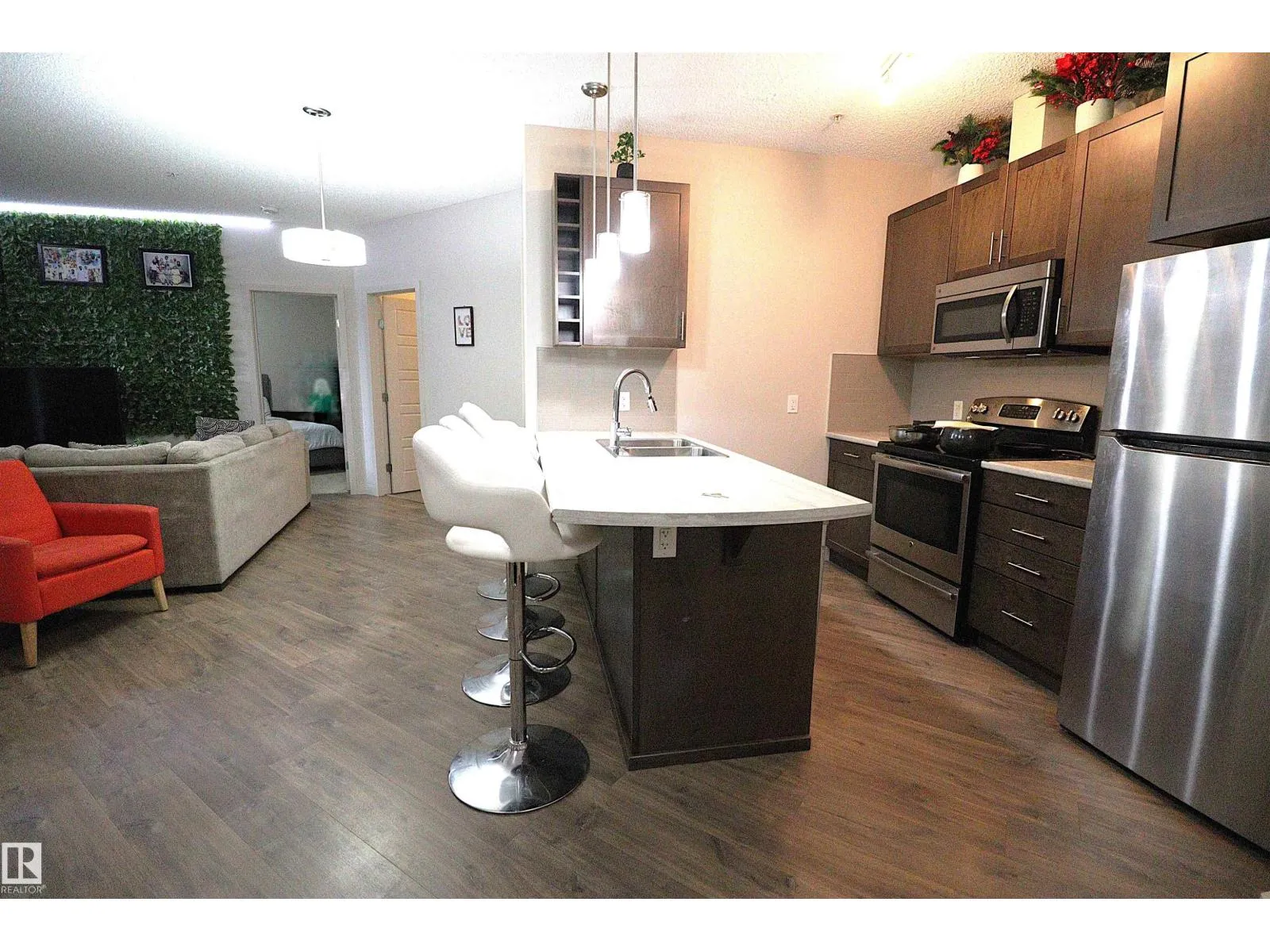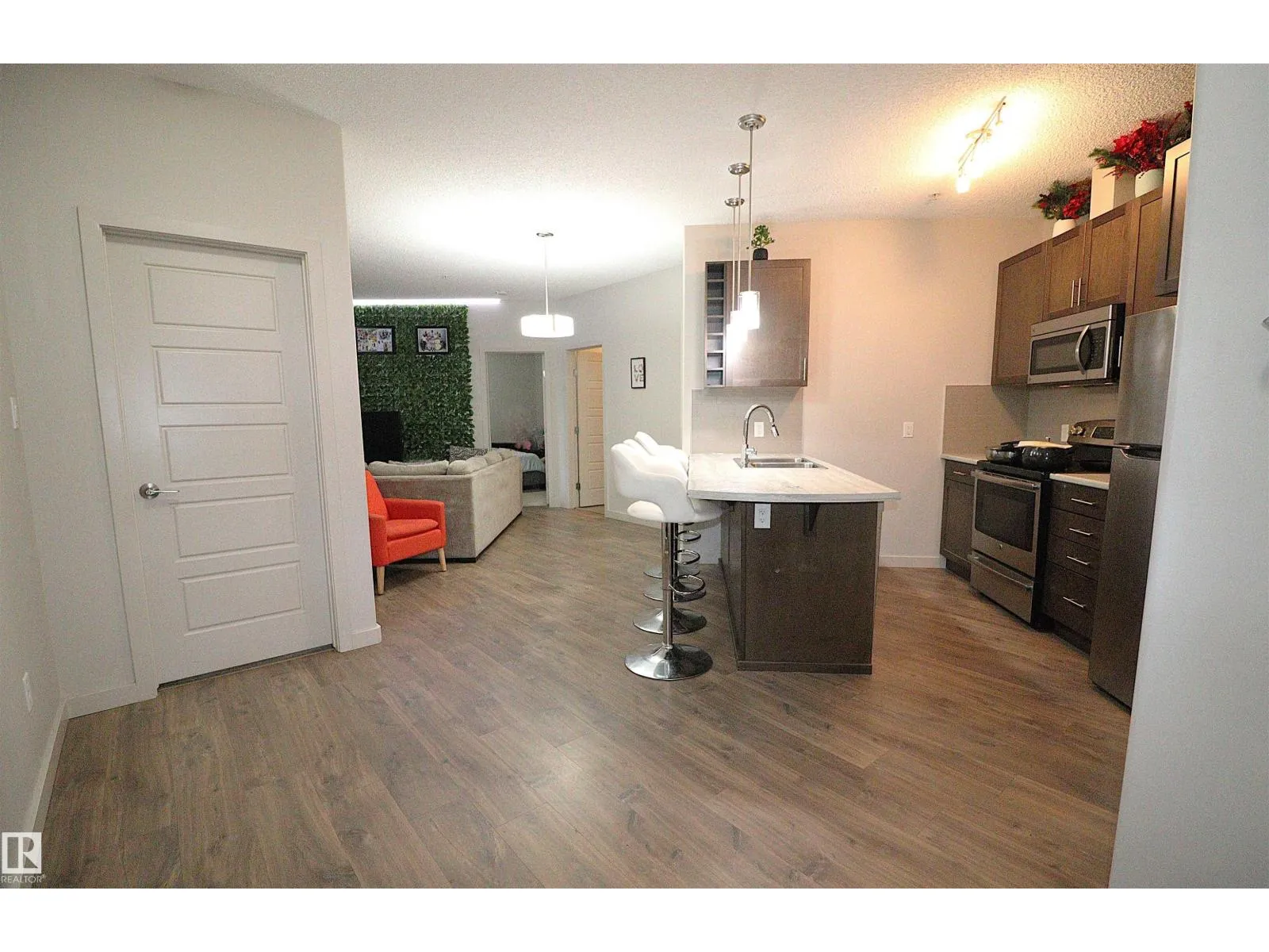 Welcome to Allard and this amazing ground floor condo with 2 large bedrooms , open concept layout, 2 full bathrooms and custom cabinetry in the well appointed kitchen with island and eating bar. Convenient access from the main entrance and a large patio to enjoy the outside. Comes with a titled underground heated parking and assigned storage in a safe building and family oriented neighborhood close to the Cavanagh walking trails, highway 2 and local amenities. The building features a large well equipped fitness room & rec room. This is a perfect first time home or investment opportunity. (id:27476)