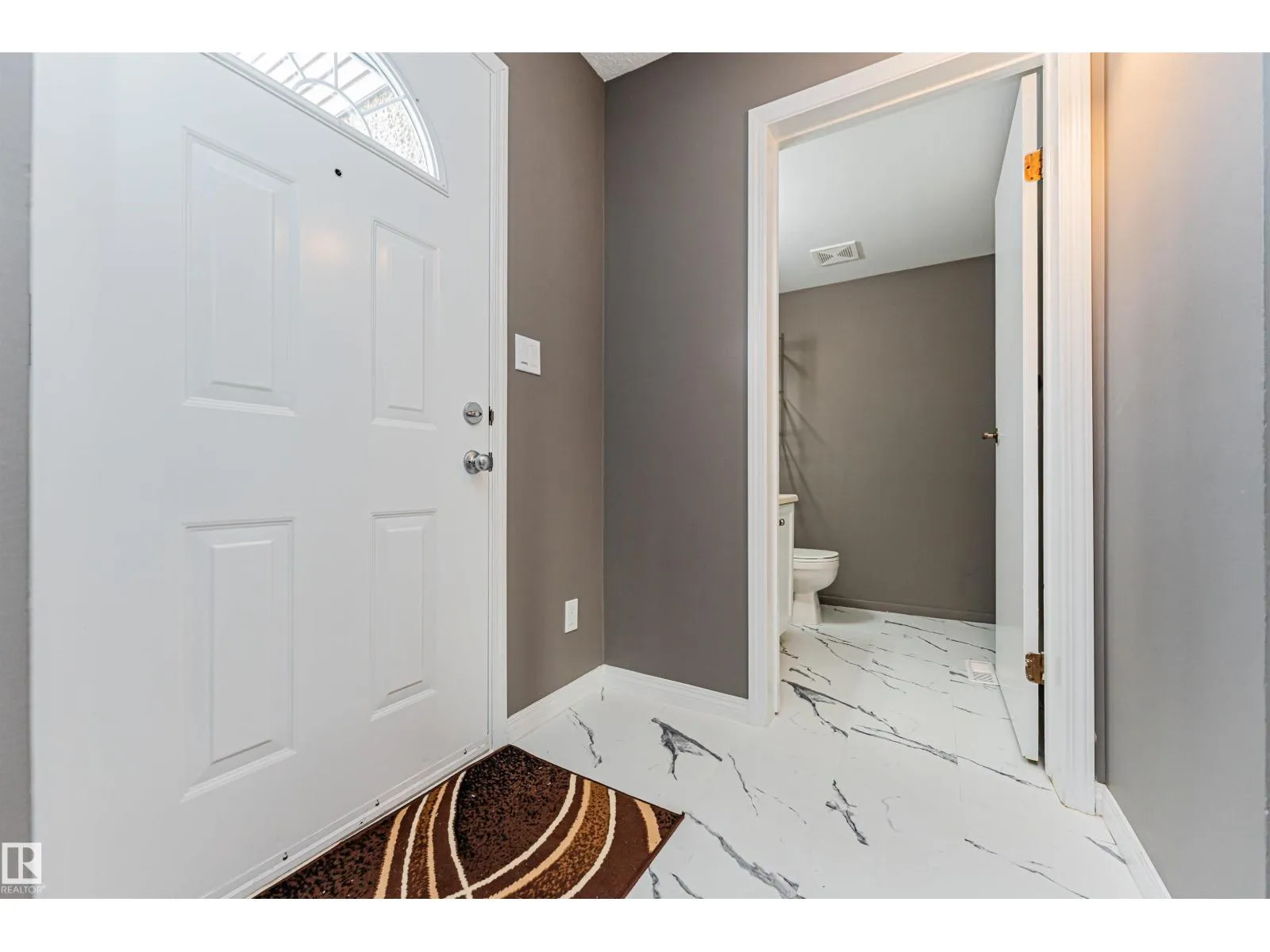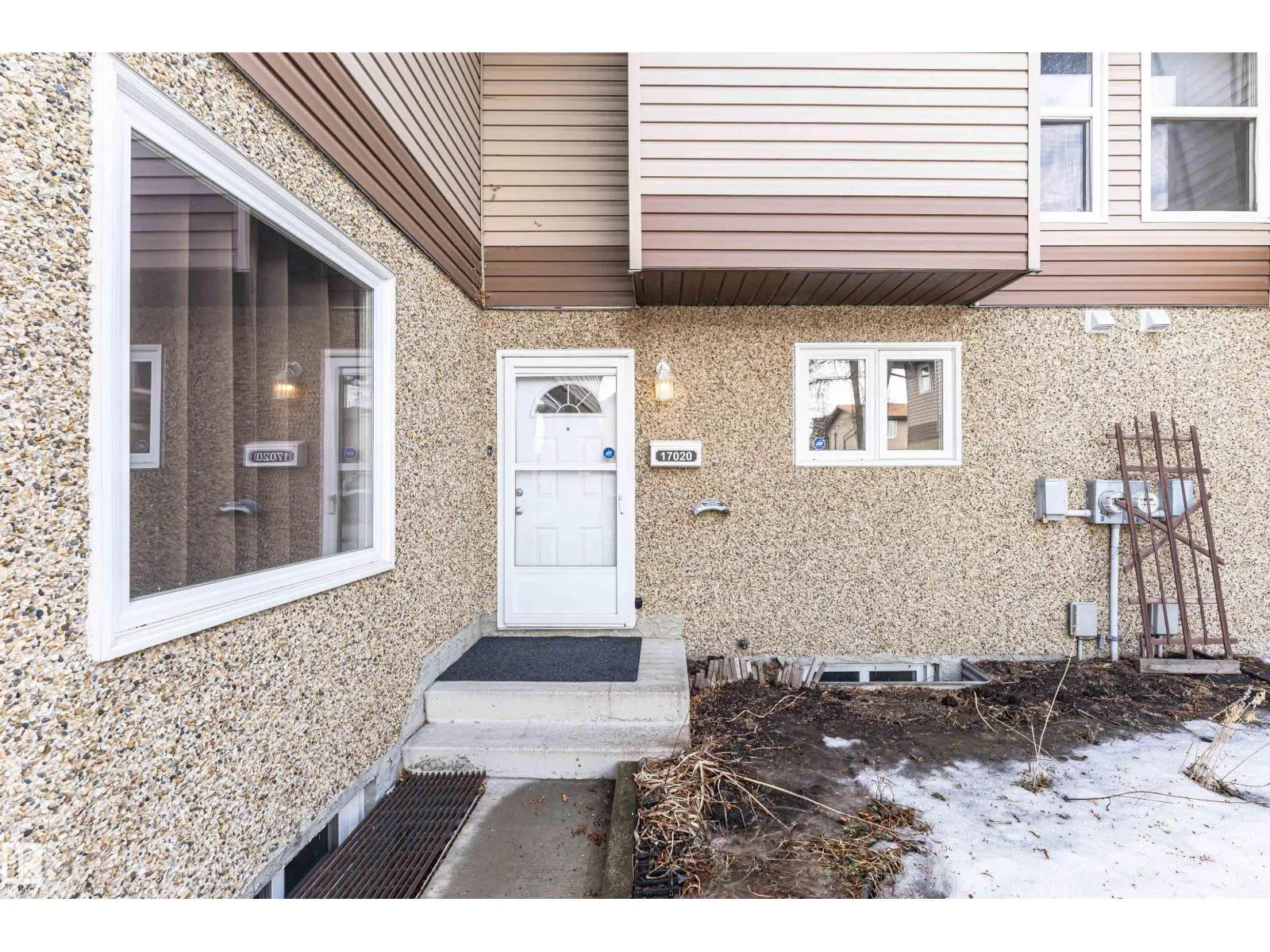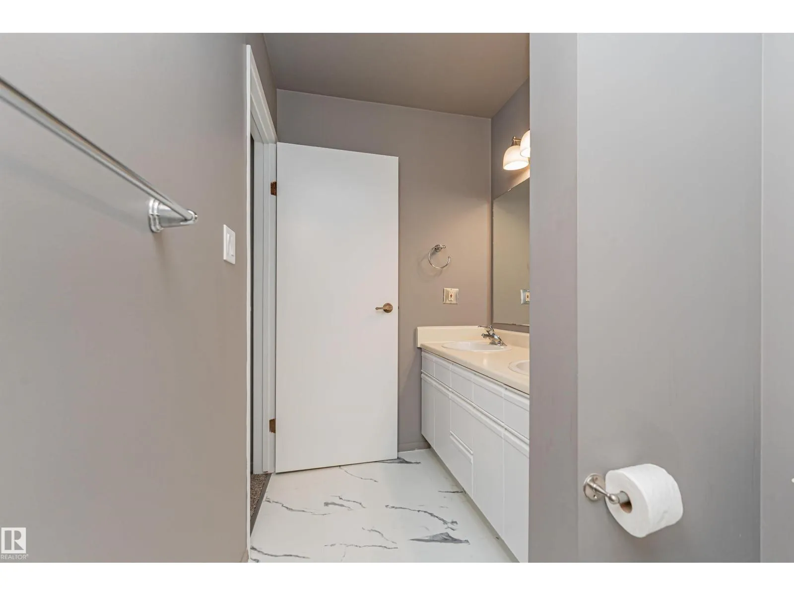 Stylishly updated corner unit townhouse in a well-managed complex. Fresh paint, modern lighting, new flooring, and an updated kitchen create a clean, move-in ready feel. The bright main floor offers great flow and a convenient powder room near the rear entry. Upstairs features three well-sized bedrooms and a spacious bathroom with double vanity. The partially finished basement adds extra living space with a rec area and a separate den, ideal for an office or flex room. Enjoy front and back entrances, a fenced front yard, and visitor parking nearby. The assigned parking stall is located just outside the back entrance, with option to rent another. The complex is well cared for with newer windows, attractive landscaping, and condo fees that support long-term value and maintenance. (id:27476)