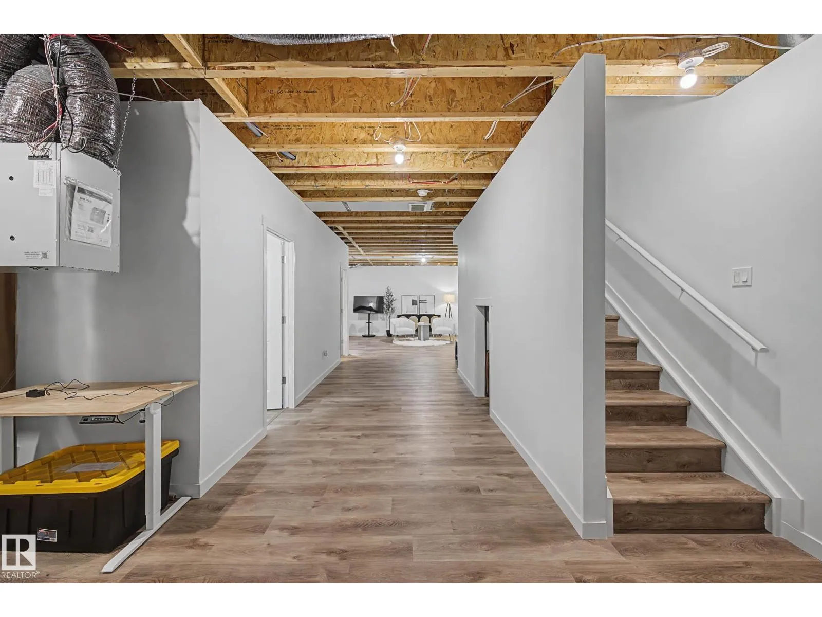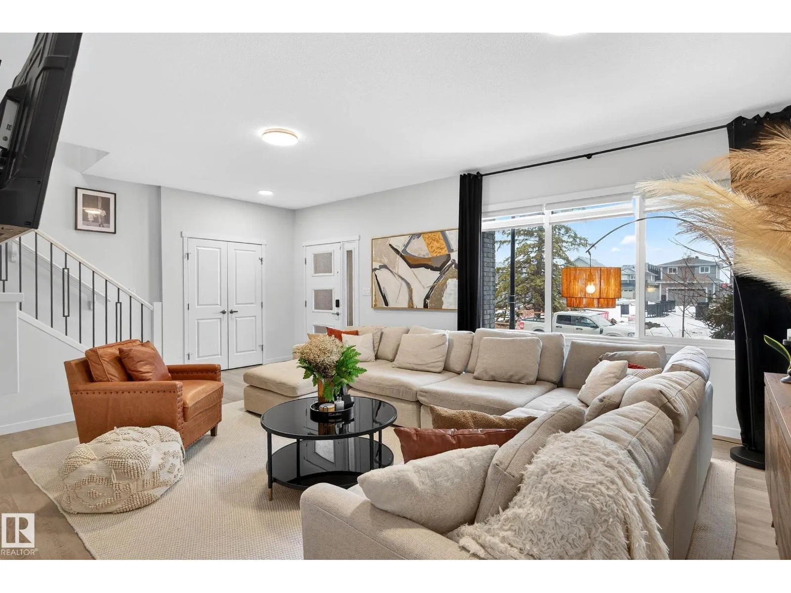 Welcome to this 2021 Coventry build in the award-winning community of Griesbach. This 2-storey home offers over 3,275 sq ft of total living space, 4 bedrooms, 3.5 bathrooms, a side entrance & upper bonus room. The partially finished basement is almost suite-ready with kitchen & laundry plumbing roughed in, plus a built-out bedroom, bathroom & living area, ideal as a mortgage helper or additional family space. The kitchen features a massive island with quartz countertops, plenty of cabinet space & SS appliances. The kitchen & living room are separated by a fireplace, providing an open-concept flow while adding privacy. Upstairs, the primary suite offers a 5pc ensuite & walk-in closet with direct access to the laundry room, plus 2 other bedrooms, a 4pc bath & bonus room. Additional features include a double detached garage, 9-ft basement walls, professional landscaping, composite deck & fully fenced south-facing backyard. Griesbach offers parks, trails, shopping, schools, transit & easy commute access. (id:27476)