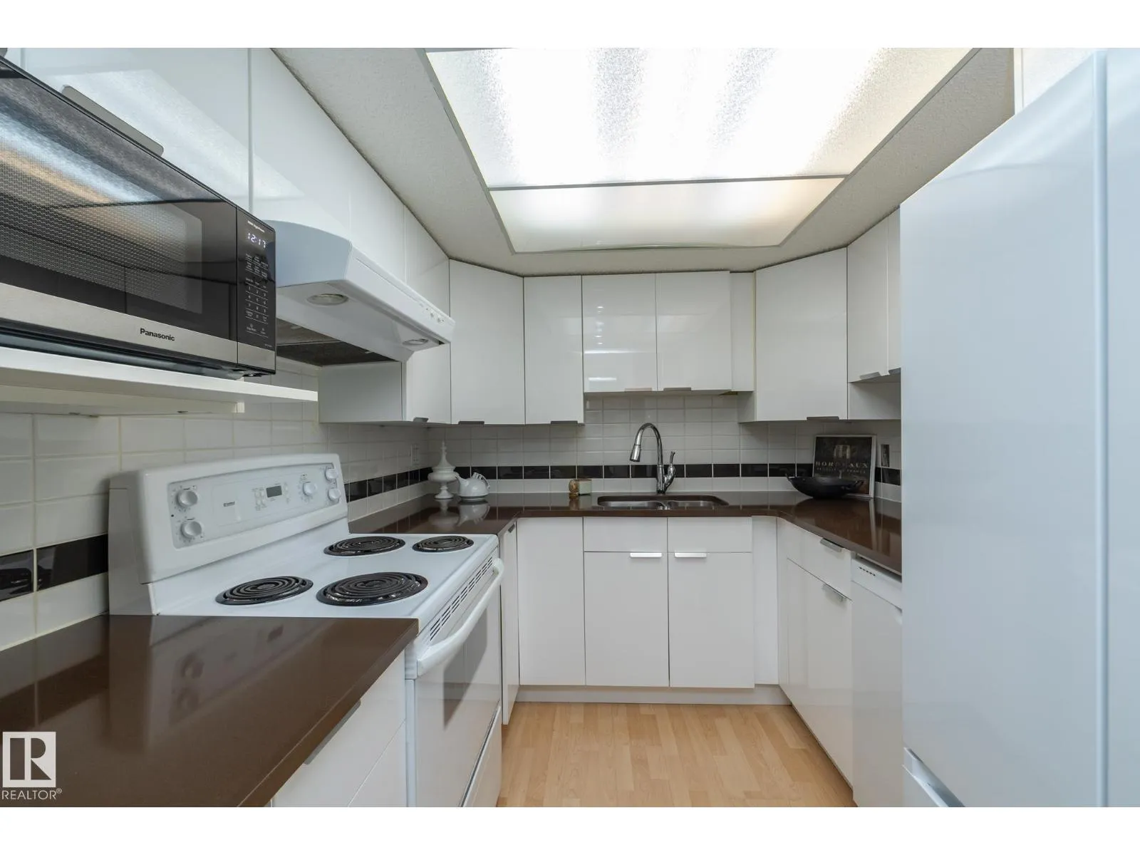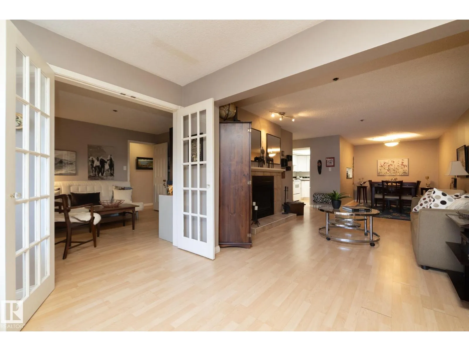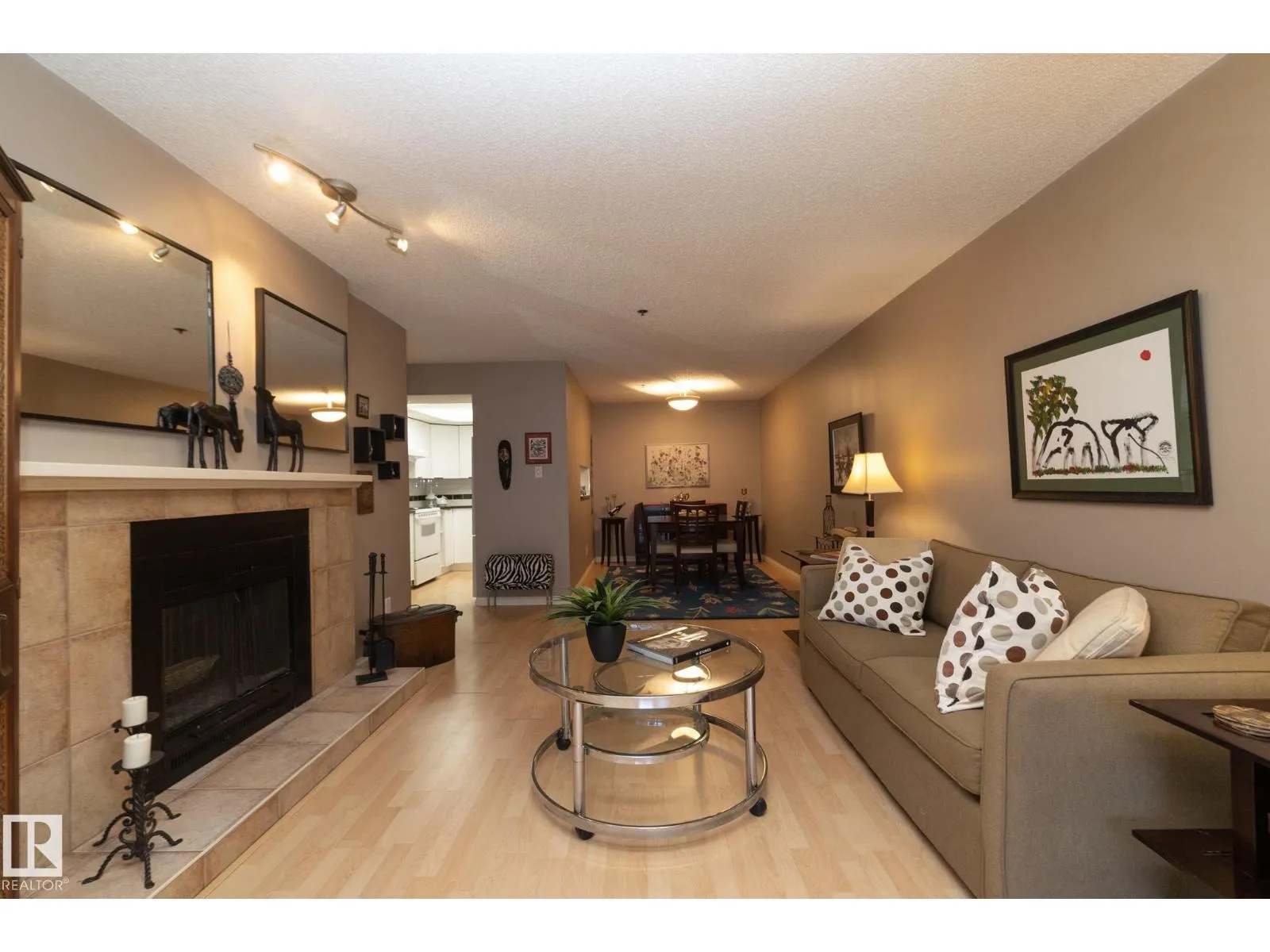 Upgraded and Attractive, 1,179 Sq Ft Two Bedroom, Two full bath condo on a quiet tree lined street just one block north of Earl's Restaurant at 119 Street & Jasper Ave. This ideal location is within walking distance to a wide range of amenities. Various educational institutions are also in the area and accessible by public transit. The floor plan is exceptional with great flow,no wasted space and all rooms generous in size. Some of the key upgrades include kitchen cabinets, counter tops, plank flooring and some newer appliances. Another nice feature not often seen in apartment style condos is the wood burning fireplace. A combination insuite laundry & storage room is well positioned just inside the front entry. Having the convenience of heated underground parking and closely situated to the elevator makes transporting goods to your suite a breeze. Show with confidence! (id:27476)