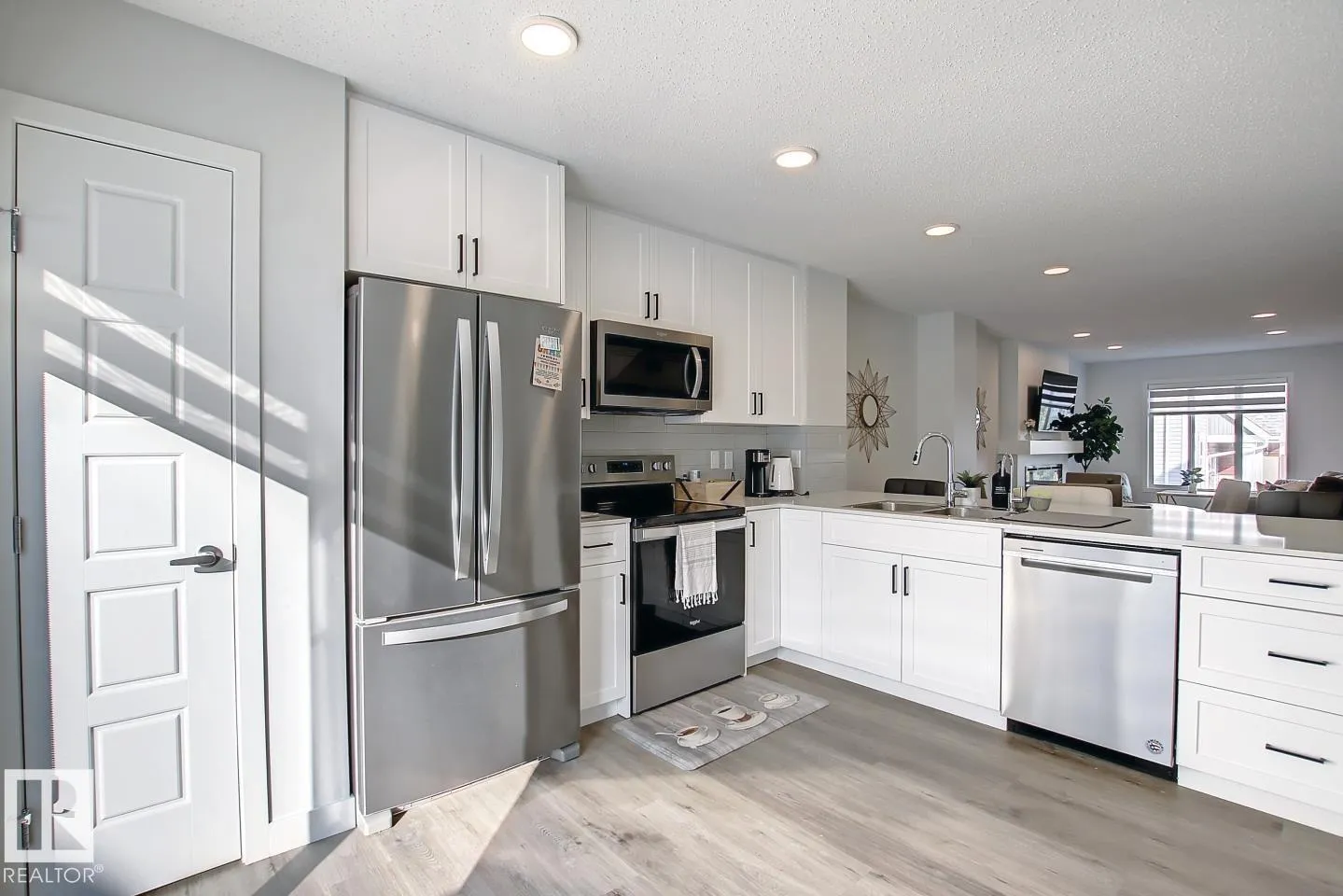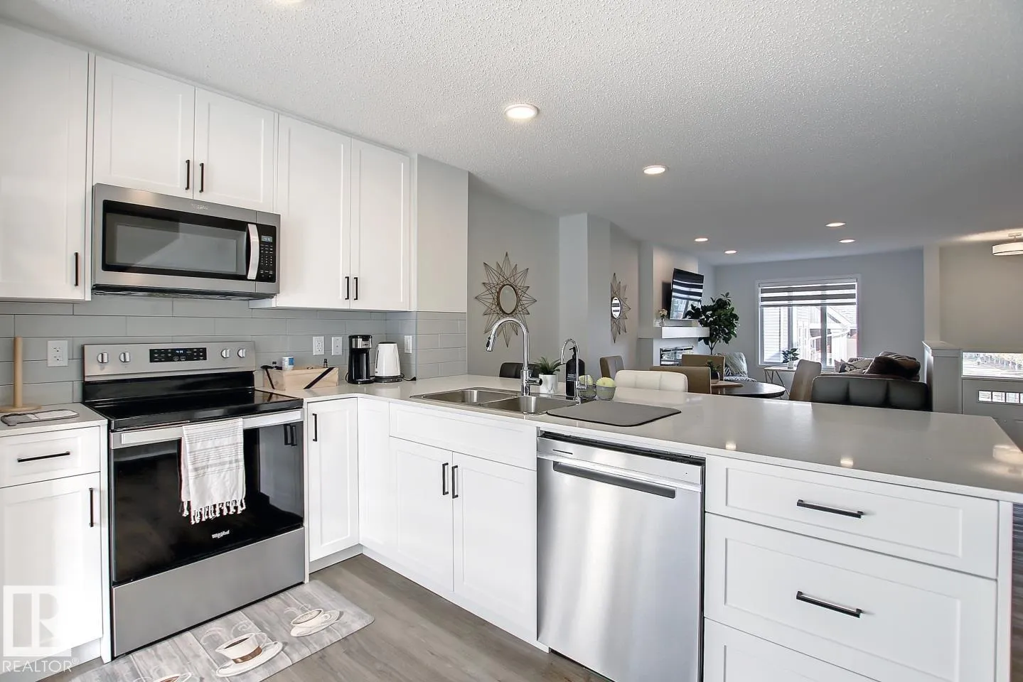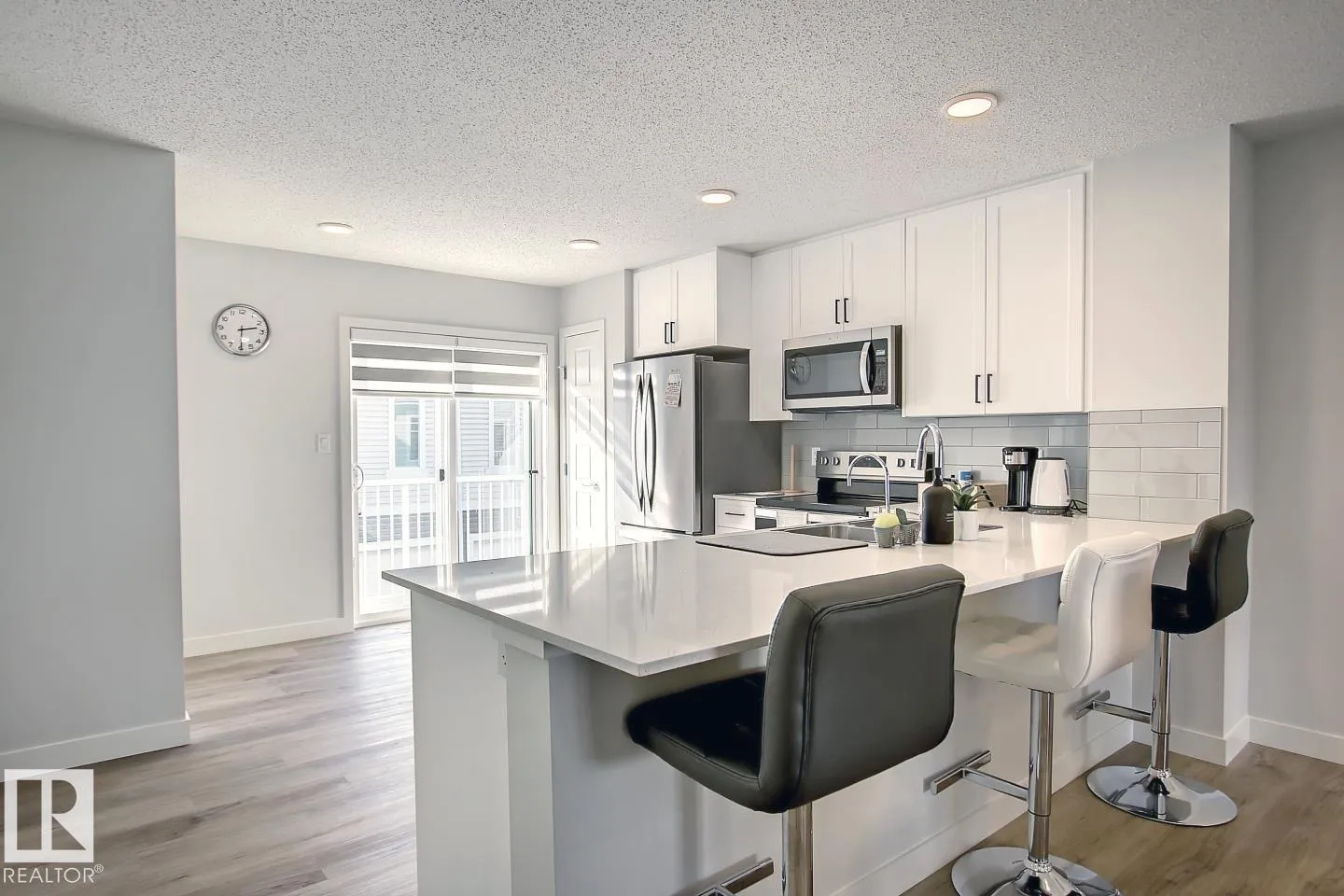 Experience elevated living in this stunning and spacious 2-bedroom, 2.5 bath residence with a double attached garage in Chappelle Gardens, thoughtfully designed with modern elegance and comfort in mind. Welcome to a sun-filled open-concept layout with rich flooring and a sophisticated living area anchored by a cozy fireplace, perfect for refined relaxation. The standout gourmet kitchen features sleek quartz countertops, premium stainless steel appliances, designer tile backsplash, and full-height cabinetry, seamlessly connecting to the dining space, and a private balcony for effortless entertaining, and ideal for quiet mornings or evening unwinding. Retreat upstairs to two generously sized bedrooms, each with its own private ensuite, offering a true sense of privacy and luxury. A stylish guest powder room completes the home. Perfectly positioned just minutes from premium shopping, dining, and major routes, this home delivers a seamless blend of luxury, location, and lifestyle. (id:27476)