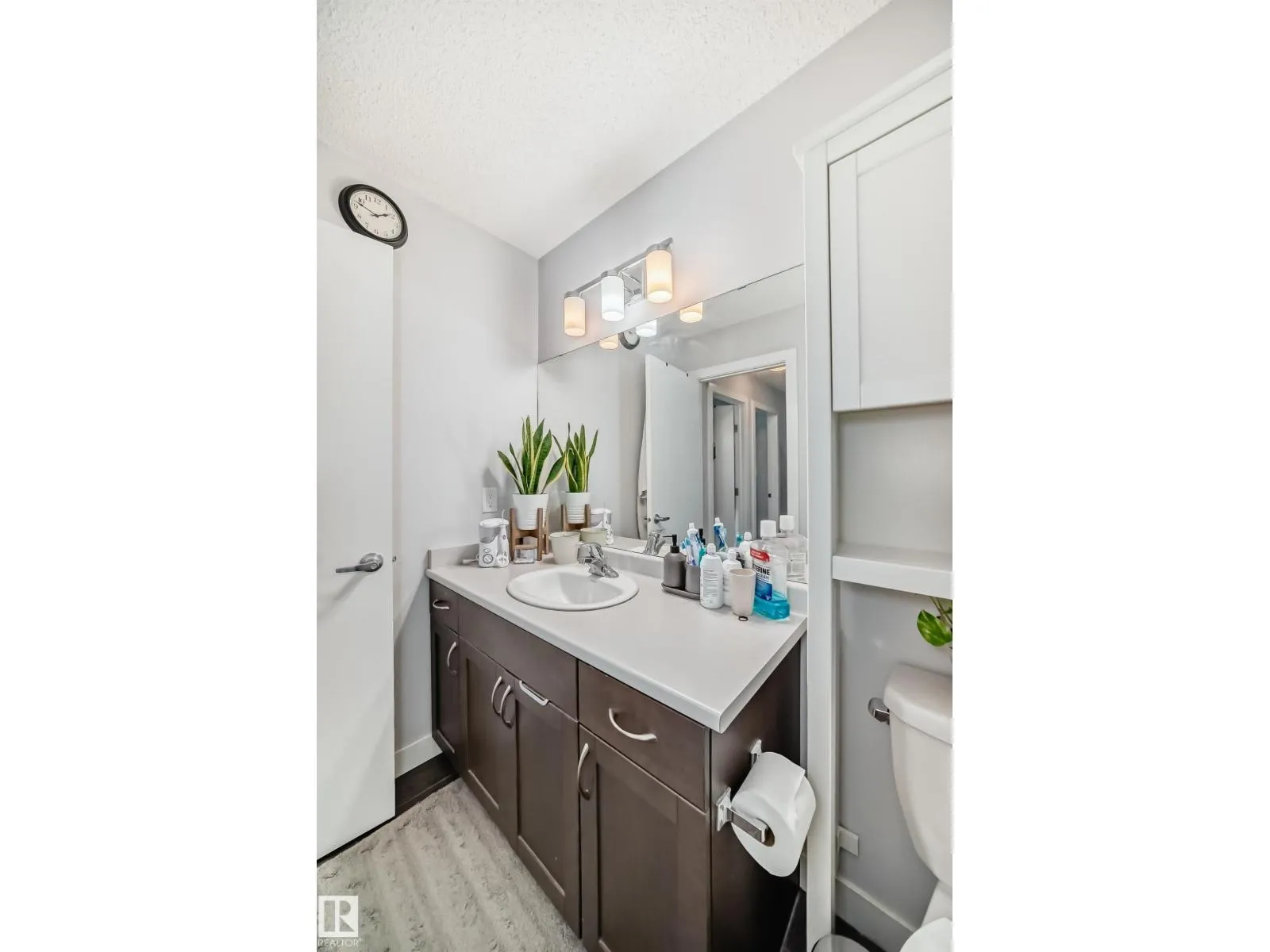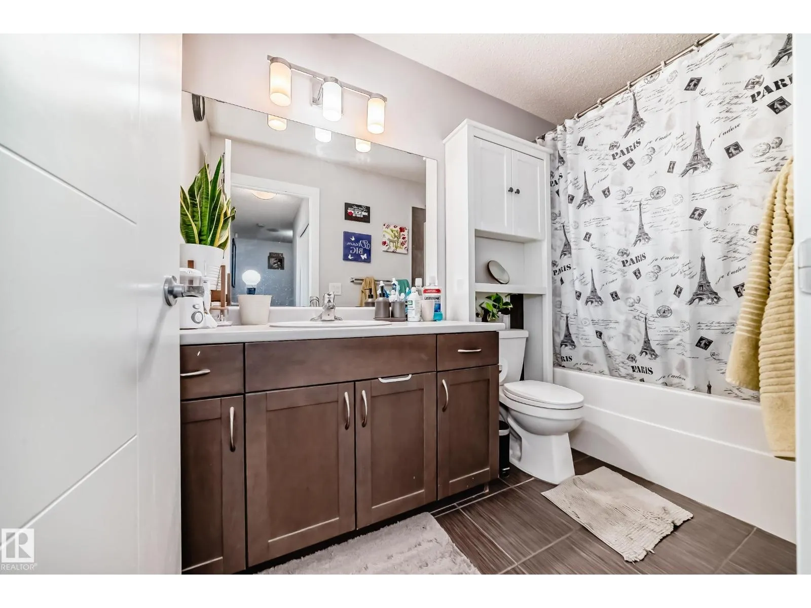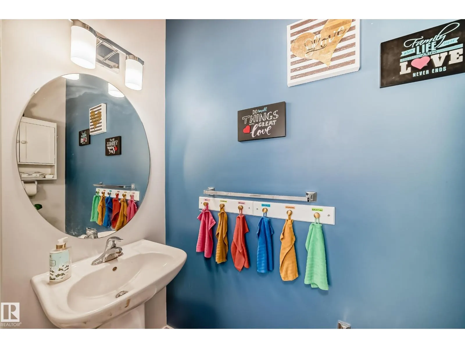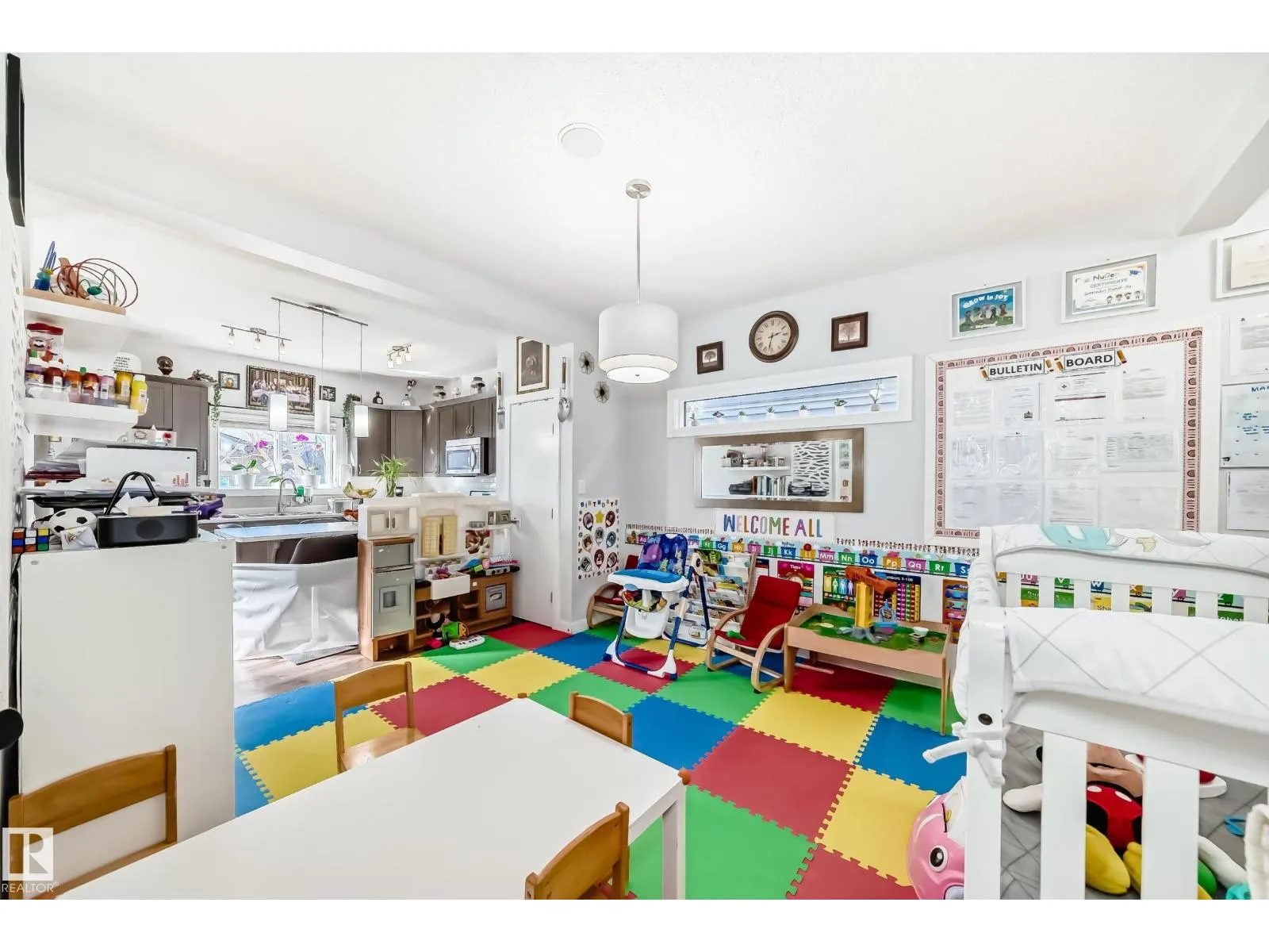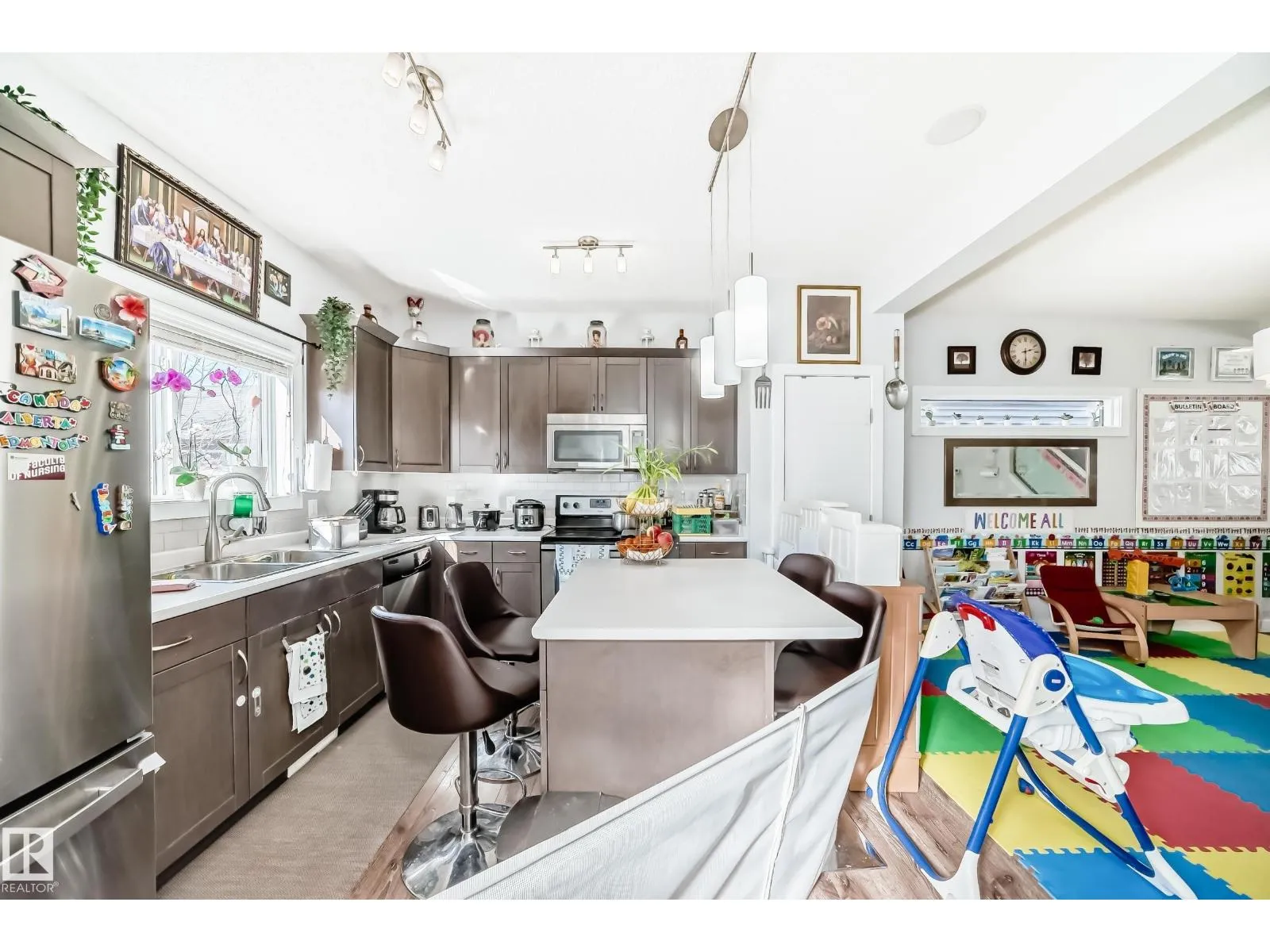 This beautifully maintained former show home offers over 1,600 sq ft of thoughtfully designed living space and is truly move-in ready. Unlike many homes in the community, this property is not a zero lot line, providing added privacy and more space between neighbouring homes. The main floor welcomes you with a bright and inviting living room featuring a cozy fireplace, perfect for relaxing evenings. The open-concept layout flows seamlessly into the dining area and kitchen, ideal for both everyday living and entertaining. A separate âtech spaceâ adds versatility and can be used as a home office, den, or playroomHighlights include 9 ft ceilings, quality laminate flooring, stainless steel appliances, built-in speakers, and central air conditioning for year-round comfort.Upstairs, you will find three well-proportioned bedrooms, including a spacious primary suite complete with a walk-in closet and private ensuite. The conveniently located upper-floor laundry room offers additional shelving for extra (id:27476)
