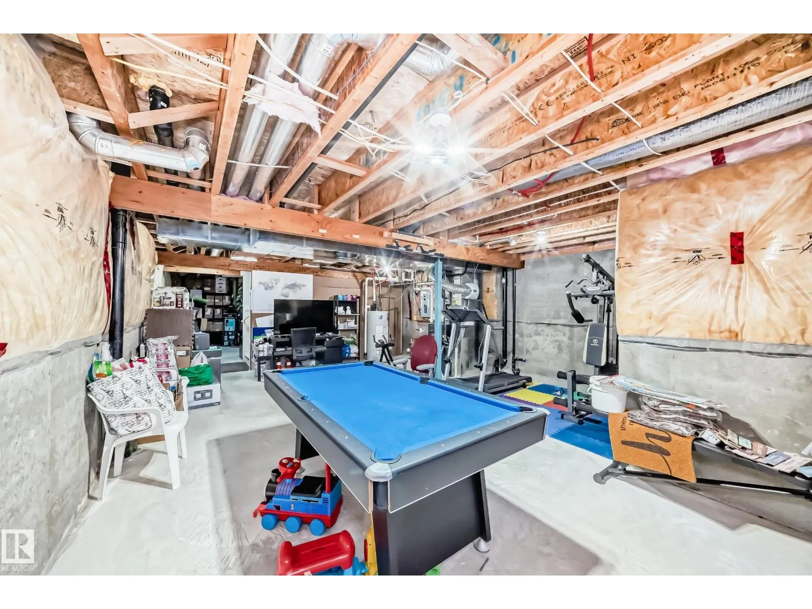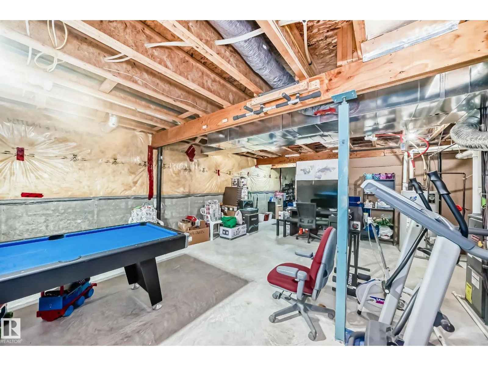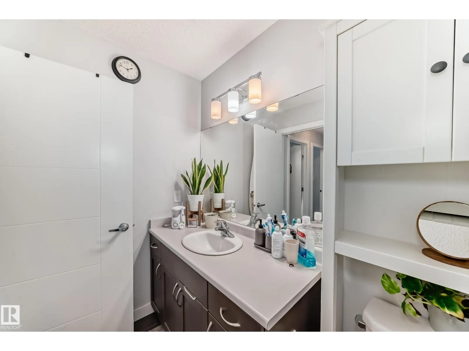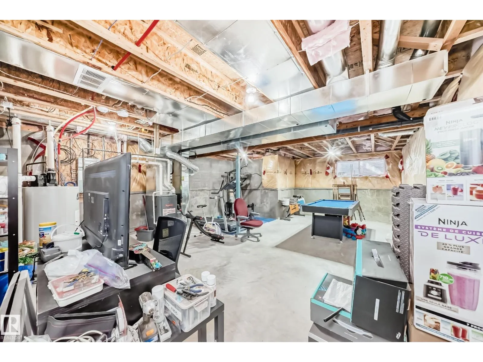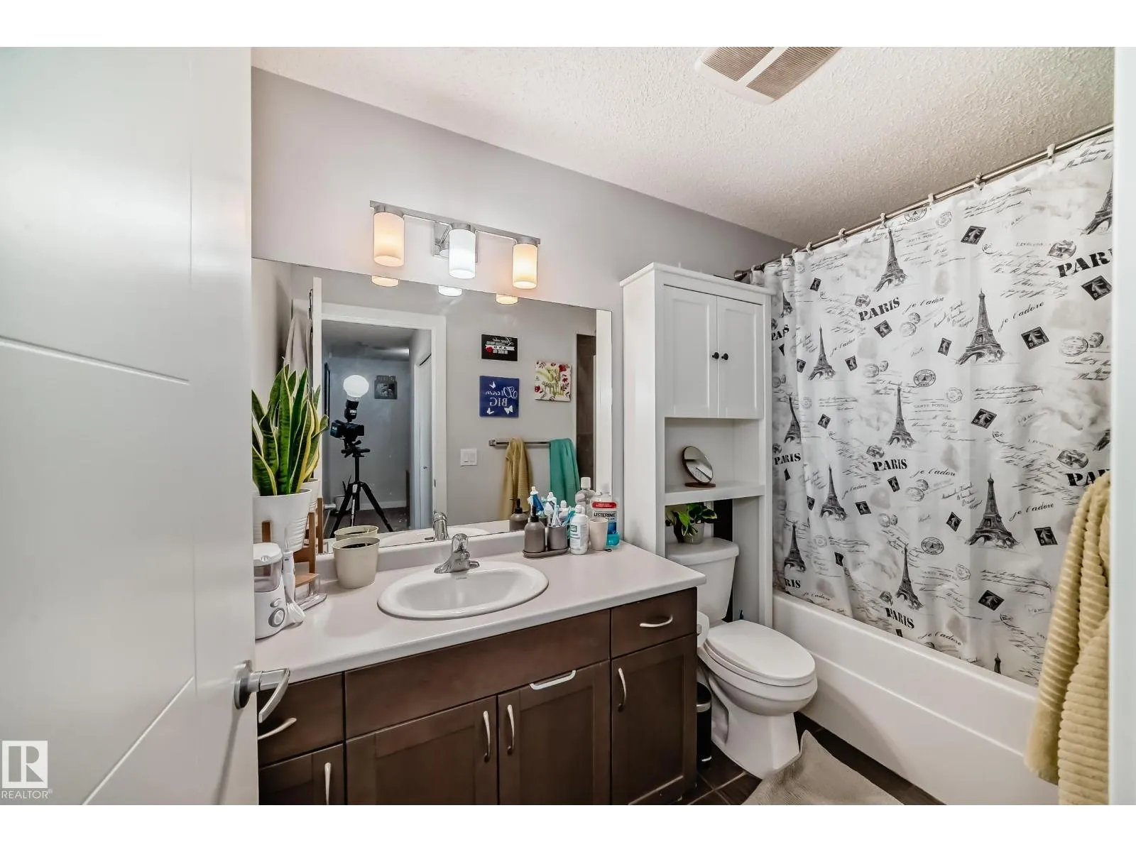 This beautifully maintained former show home offers over 1,600 sq ft of thoughtfully designed living space and is truly move-in ready. Unlike many homes in the community, this property is not a zero lot line, providing added privacy and more space between neighbouring homes. The main floor welcomes you with a bright and inviting living room featuring a cozy fireplace, perfect for relaxing evenings. The open-concept layout flows seamlessly into the dining area and kitchen, ideal for both everyday living and entertaining. A separate âtech spaceâ adds versatility and can be used as a home office, den, or playroomHighlights include 9 ft ceilings, quality laminate flooring, stainless steel appliances, built-in speakers, and central air conditioning for year-round comfort.Upstairs, you will find three well-proportioned bedrooms, including a spacious primary suite complete with a walk-in closet and private ensuite. The conveniently located upper-floor laundry room offers additional shelving for extra (id:27476)