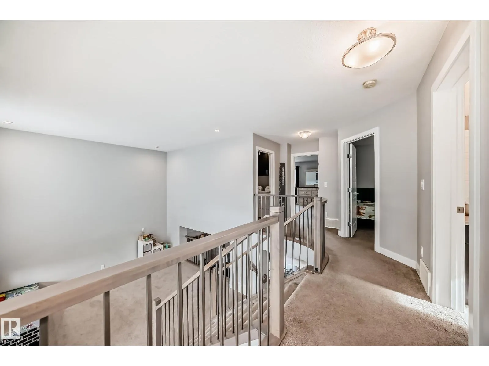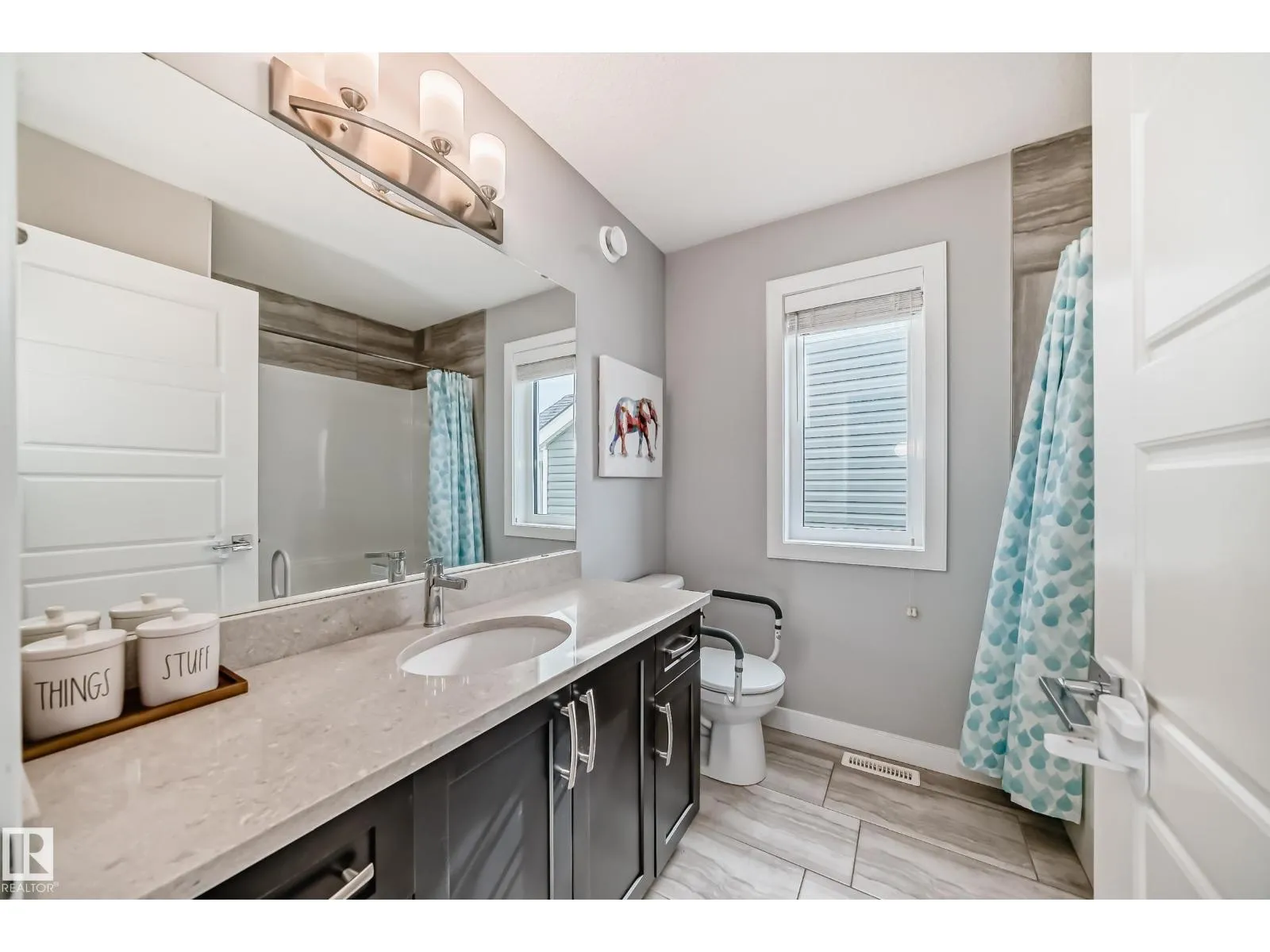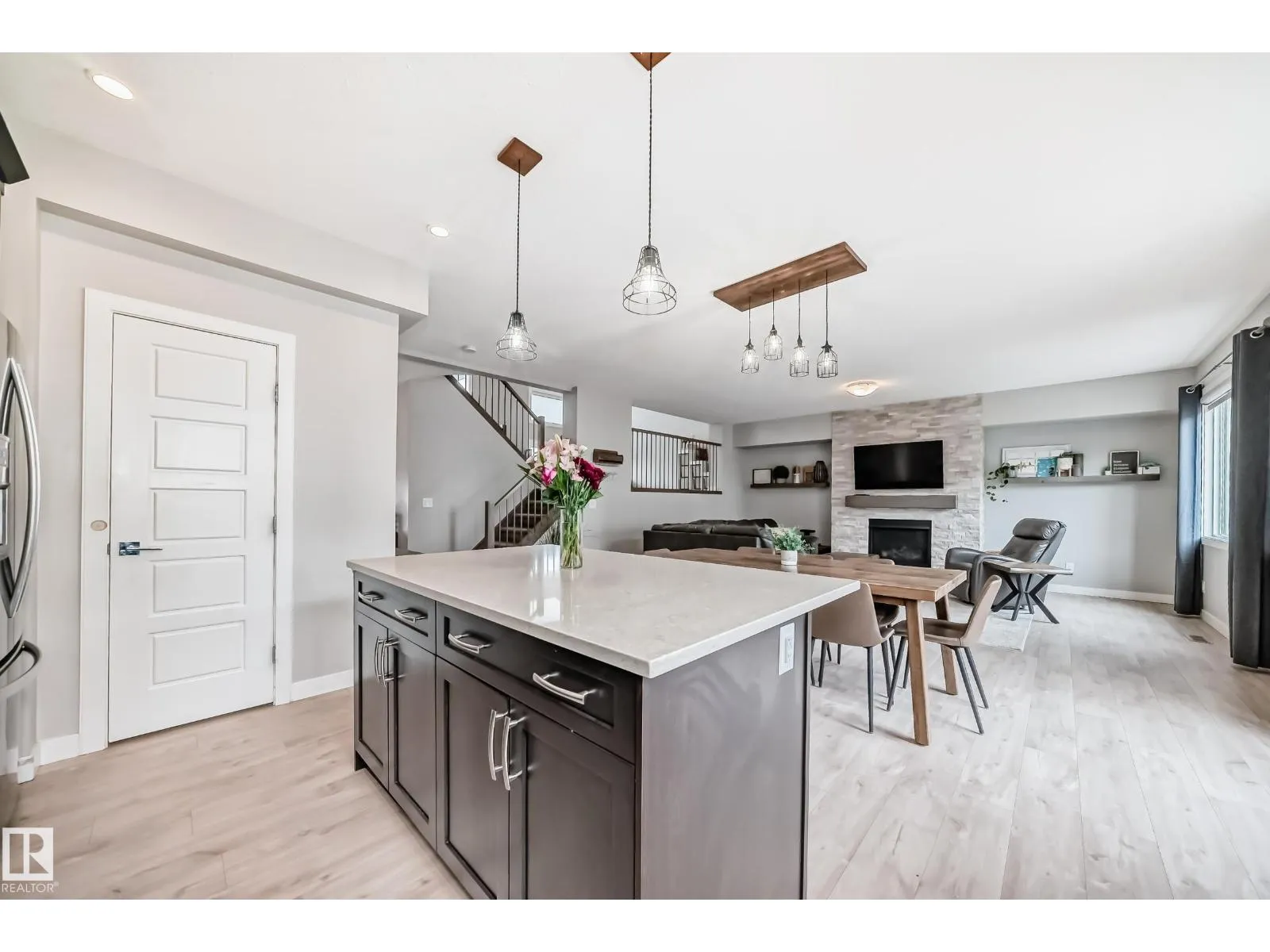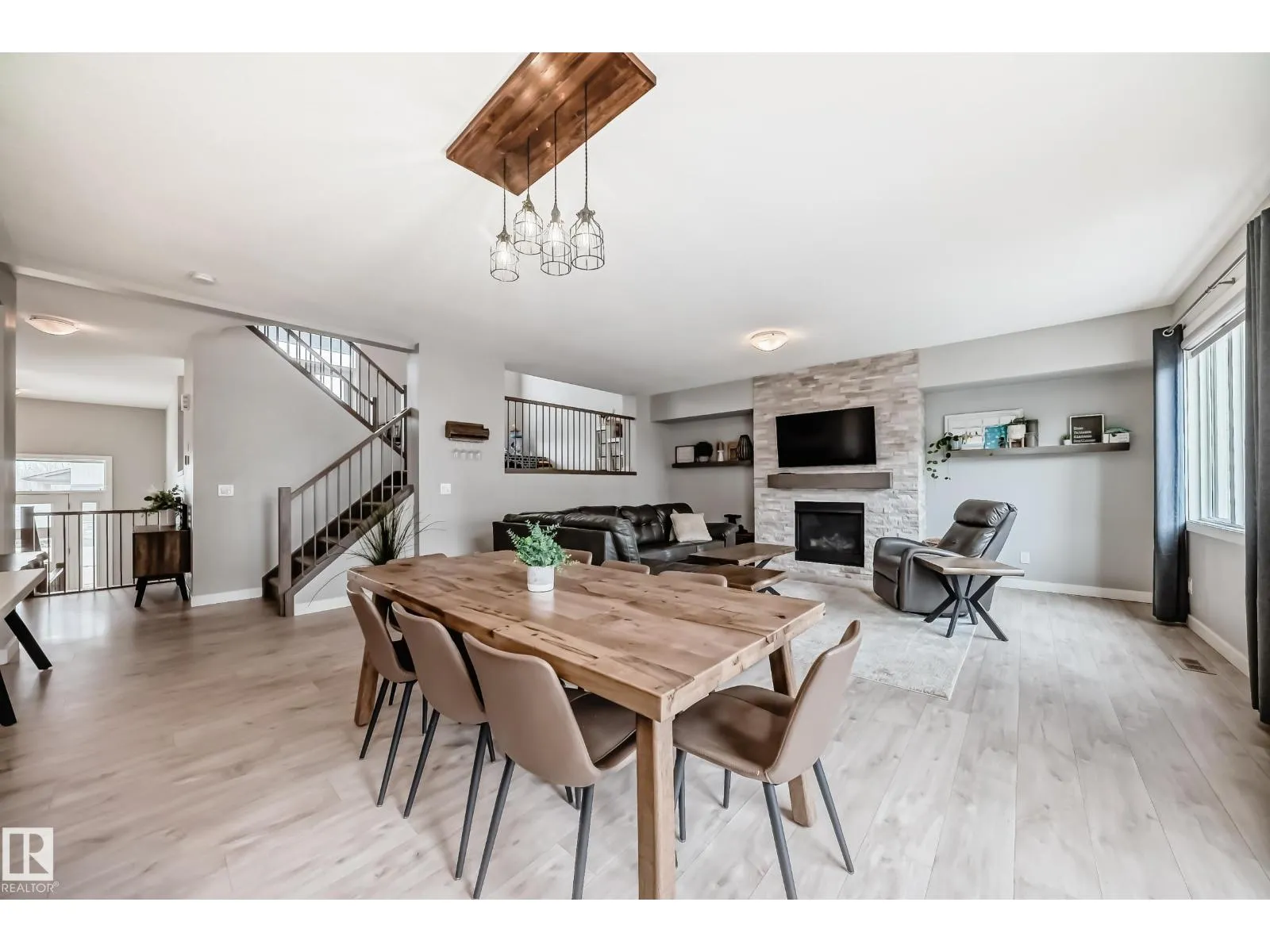 Welcome to the popular Banff model by Mattamy, located in the desirable quiet and relaxing community of Stillwater. This open-concept home offers luxury quality throughout and a functional layout perfect for families. The main floor features 9â ceilings, large windows for plenty of natural light, and a mix of carpet, ceramic tile, and vinyl plank flooring with flush-mount vents. The gourmet kitchen includes quartz countertops, stylish cabinetry, a large island with breakfast bar, and a spacious pantry. The living room is highlighted by a cozy gas fireplace located in a fantastic feature wall, while the dining area provides plenty of space for gatherings. Upstairs features a vaulted bonus room with access to a covered veranda, plus two generous bedrooms and a spacious primary suite with walk-in closet and ensuite. Conveniently located near shopping, amenities, West Edmonton Mall, and Anthony Henday Drive, this home offers comfort, space, and a unique design. Time to move in! (id:27476)
