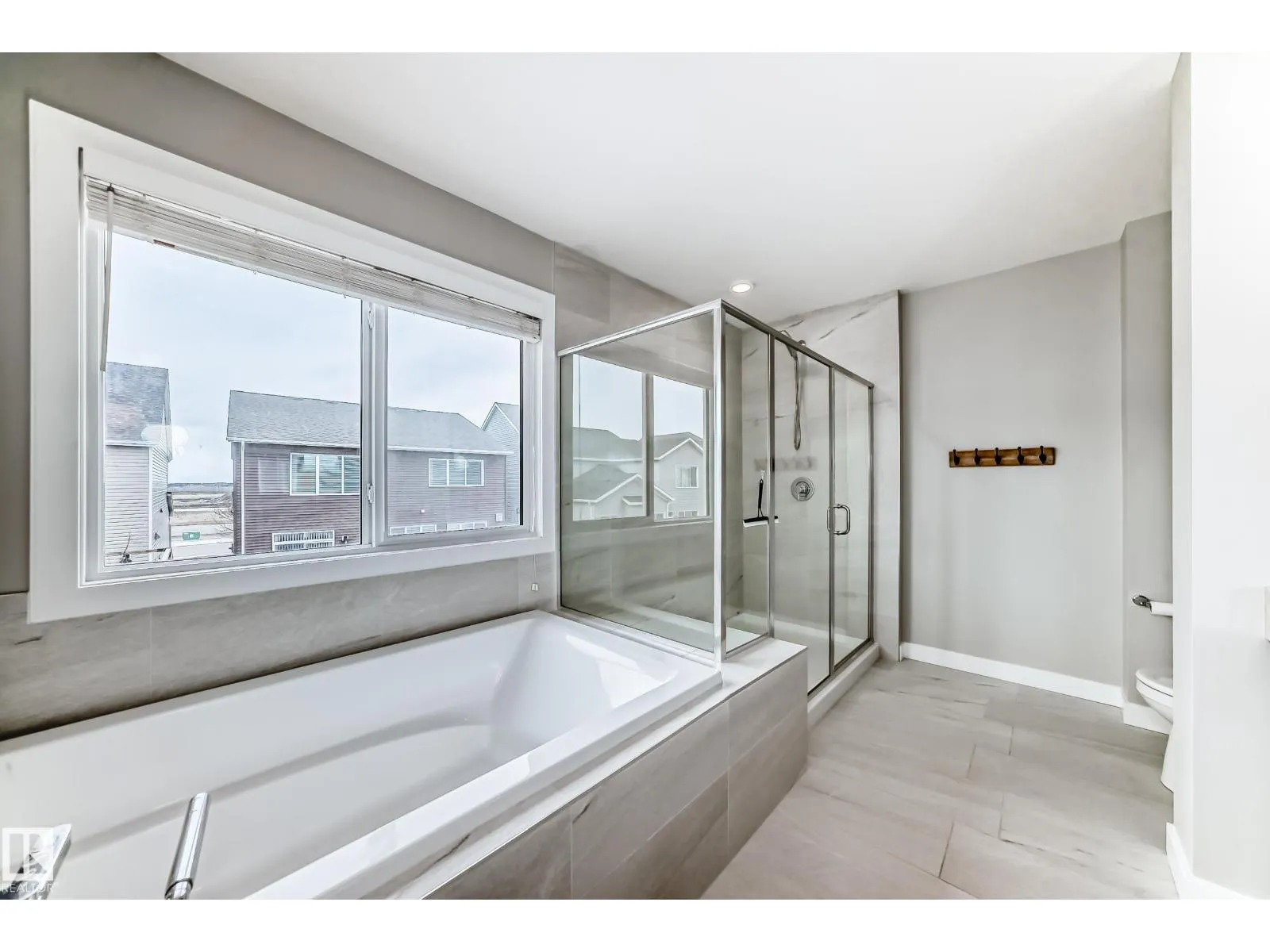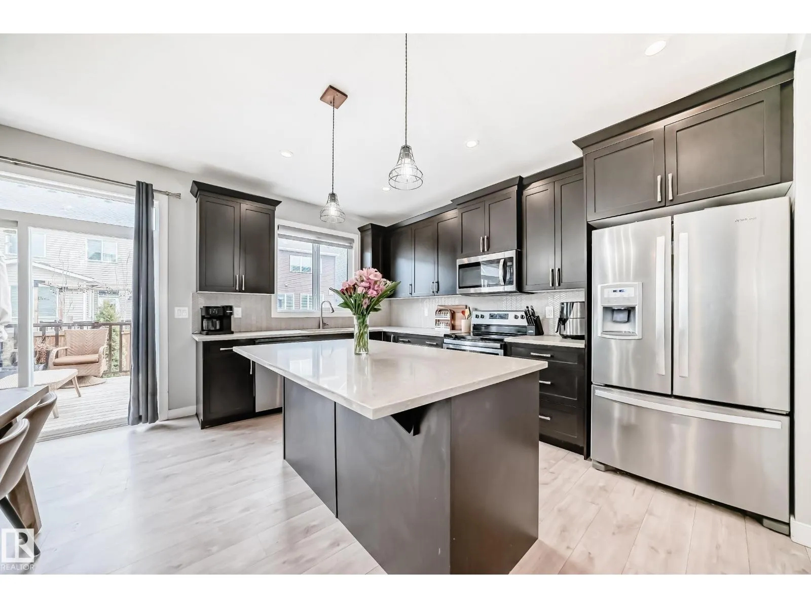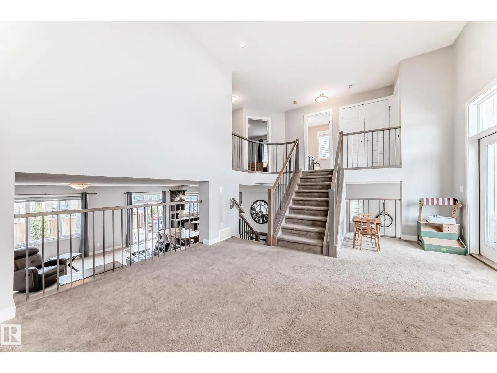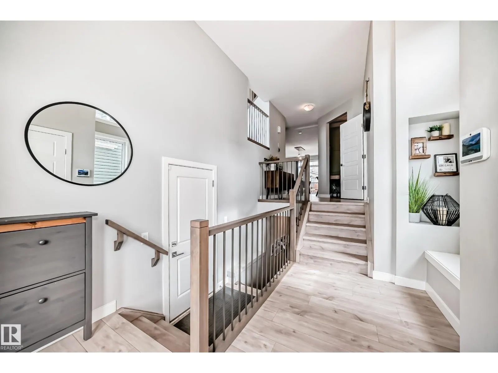 Welcome to the popular Banff model by Mattamy, located in the desirable quiet and relaxing community of Stillwater. This open-concept home offers luxury quality throughout and a functional layout perfect for families. The main floor features 9â ceilings, large windows for plenty of natural light, and a mix of carpet, ceramic tile, and vinyl plank flooring with flush-mount vents. The gourmet kitchen includes quartz countertops, stylish cabinetry, a large island with breakfast bar, and a spacious pantry. The living room is highlighted by a cozy gas fireplace located in a fantastic feature wall, while the dining area provides plenty of space for gatherings. Upstairs features a vaulted bonus room with access to a covered veranda, plus two generous bedrooms and a spacious primary suite with walk-in closet and ensuite. Conveniently located near shopping, amenities, West Edmonton Mall, and Anthony Henday Drive, this home offers comfort, space, and a unique design. Time to move in! (id:27476)