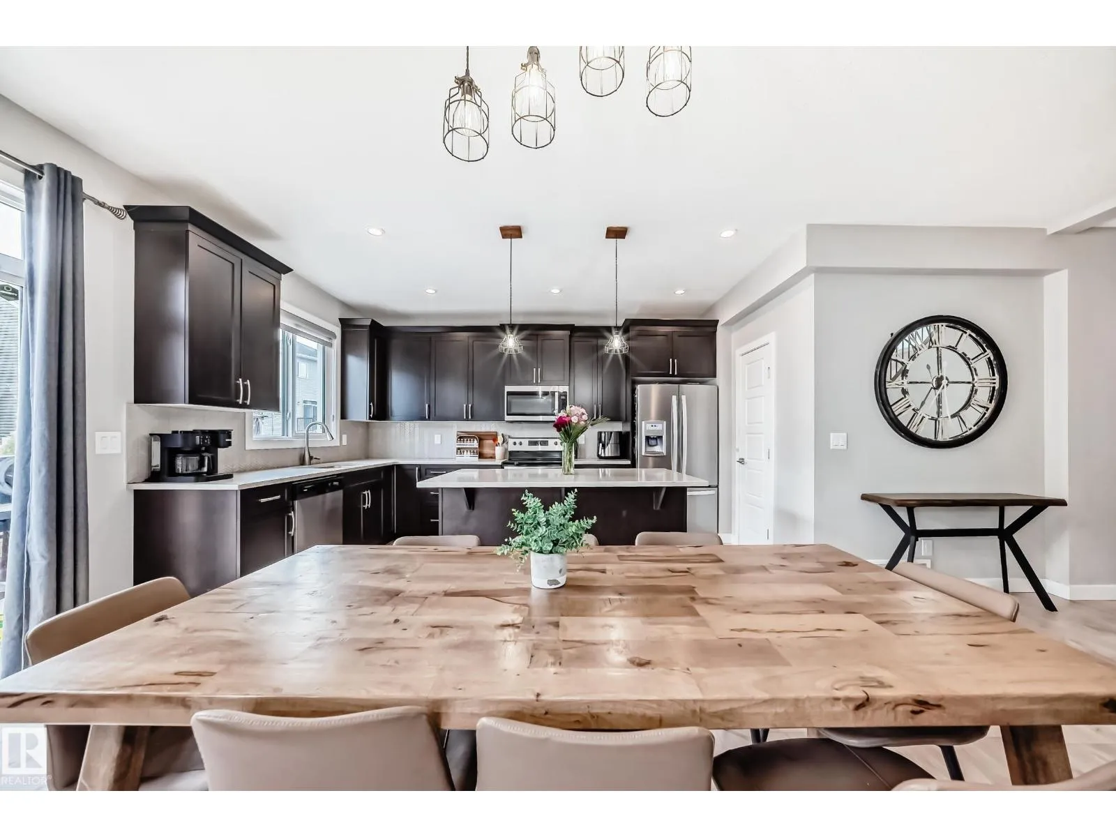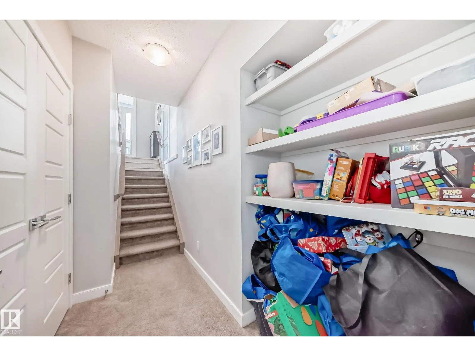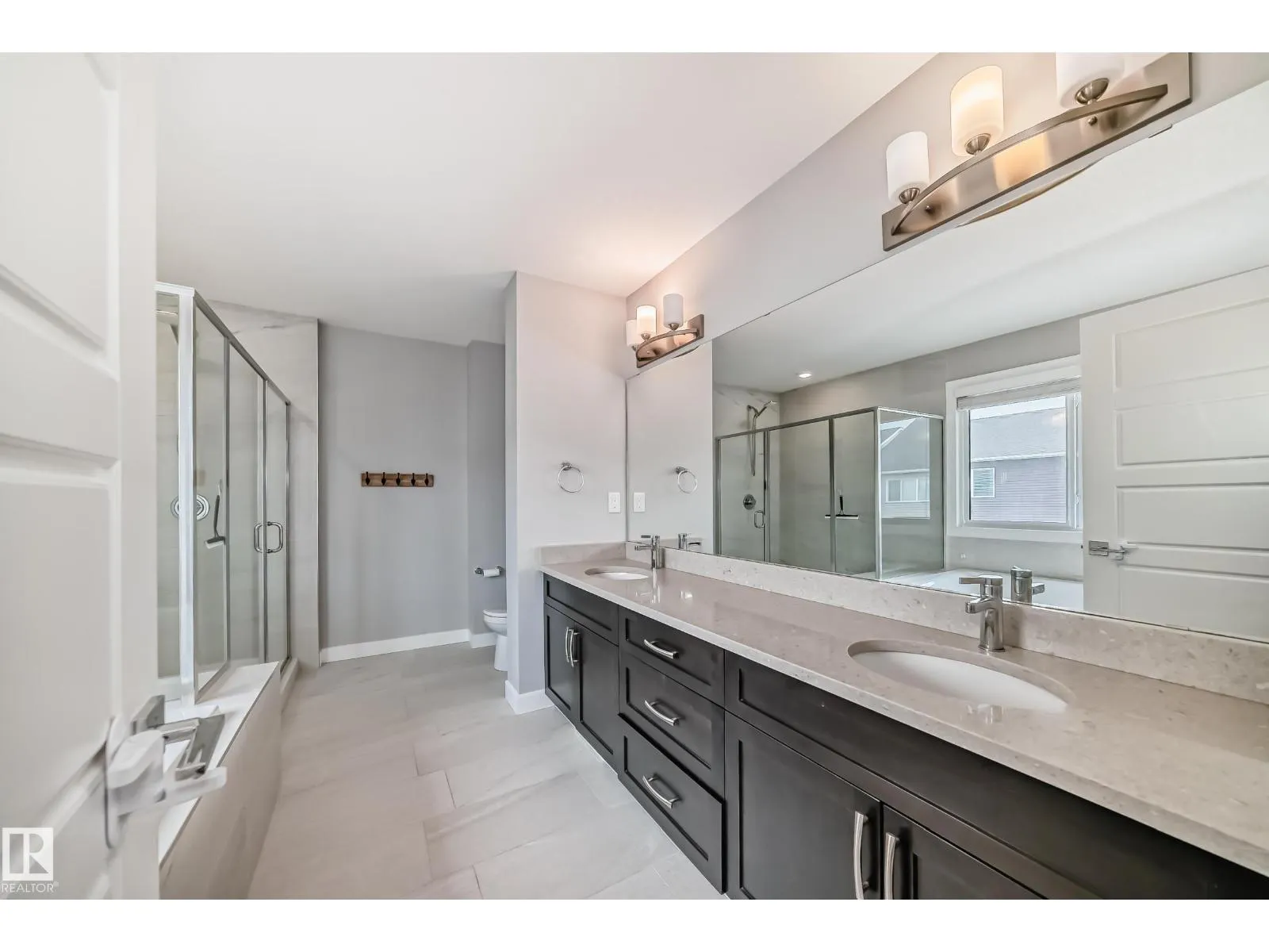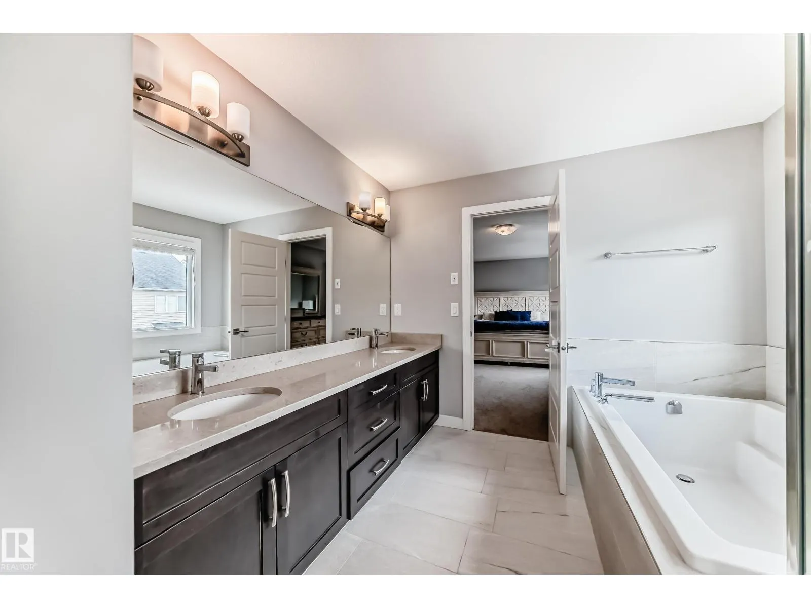 Welcome to the popular Banff model by Mattamy, located in the desirable quiet and relaxing community of Stillwater. This open-concept home offers luxury quality throughout and a functional layout perfect for families. The main floor features 9â ceilings, large windows for plenty of natural light, and a mix of carpet, ceramic tile, and vinyl plank flooring with flush-mount vents. The gourmet kitchen includes quartz countertops, stylish cabinetry, a large island with breakfast bar, and a spacious pantry. The living room is highlighted by a cozy gas fireplace located in a fantastic feature wall, while the dining area provides plenty of space for gatherings. Upstairs features a vaulted bonus room with access to a covered veranda, plus two generous bedrooms and a spacious primary suite with walk-in closet and ensuite. Conveniently located near shopping, amenities, West Edmonton Mall, and Anthony Henday Drive, this home offers comfort, space, and a unique design. Time to move in! (id:27476)