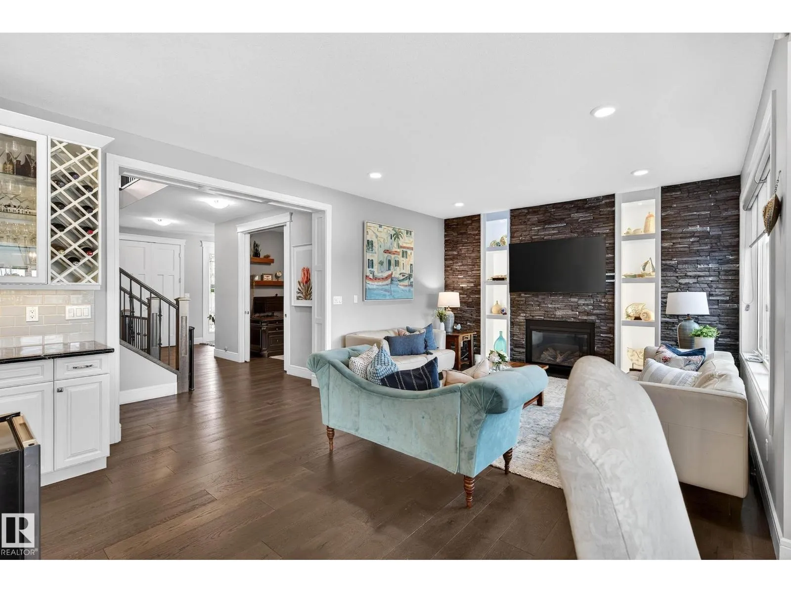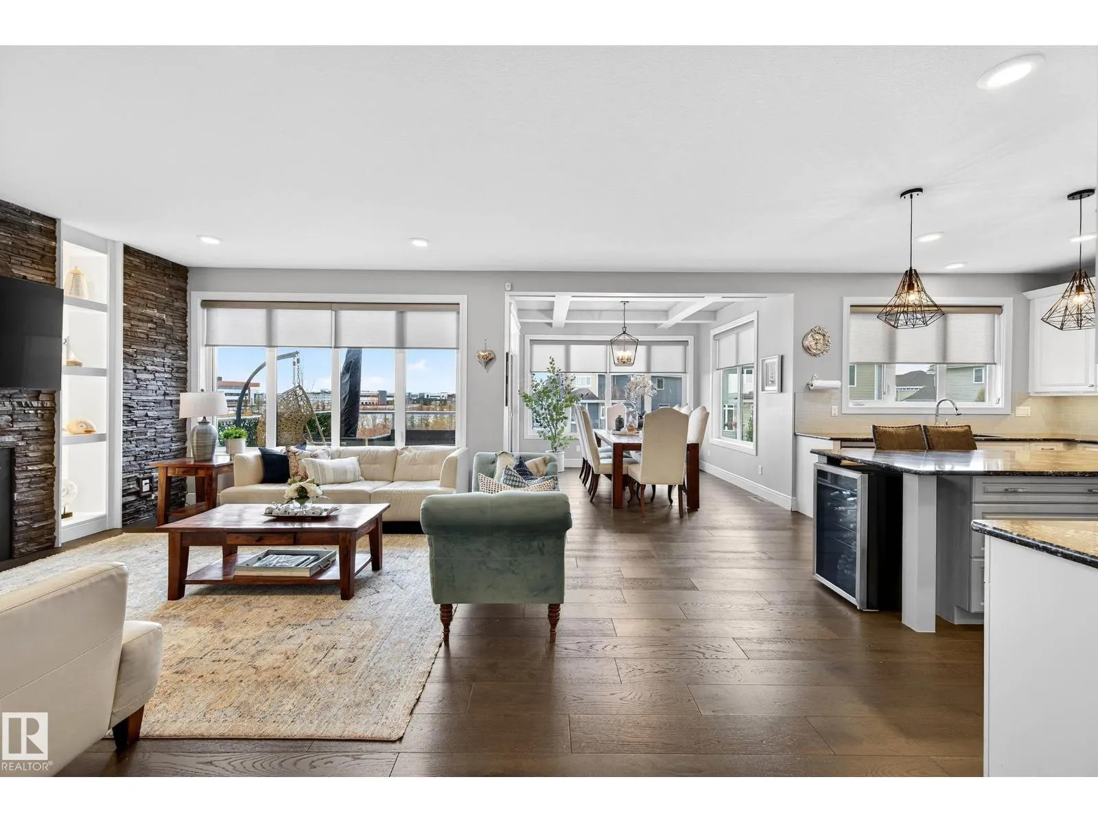 Welcome to this exceptional 6 bedroom walkout in Summerside w/ exclusive lake access, offering refined living & serene views. A striking open-to-above staircase makes an immediate impression, leading into a bright, open-concept main floor designed for everyday living & entertaining. The chef-inspired kitchen features a large island, SS appliances incl. gas range, premium finishes & a dining nook overlooking the lake, all anchored by a living room w/ stone gas fireplace. The main floor also offers a private office, half bath, mudroom w/ direct access to the tandem triple attached garage. Upstairs, youâll find a spacious primary retreat w/ 5pc spa-like ensuite & walk-in closet, plus a bonus room w/ vaulted ceilings, 3 bedrooms, 4pc bath & laundry. The fully finished walkout basement offers a rec area, 4pc bath & 2 additional bedrooms. Enjoy the fully landscaped yard w/ stone patio & hot tub. A rare opportunity to own a beautifully finished home in one of Edmontonâs most sought-after lake communities. (id:27476)