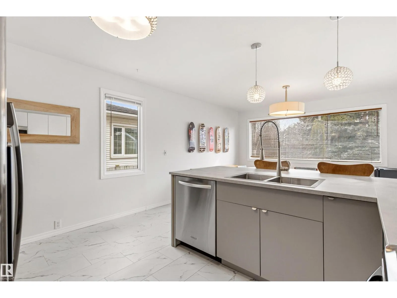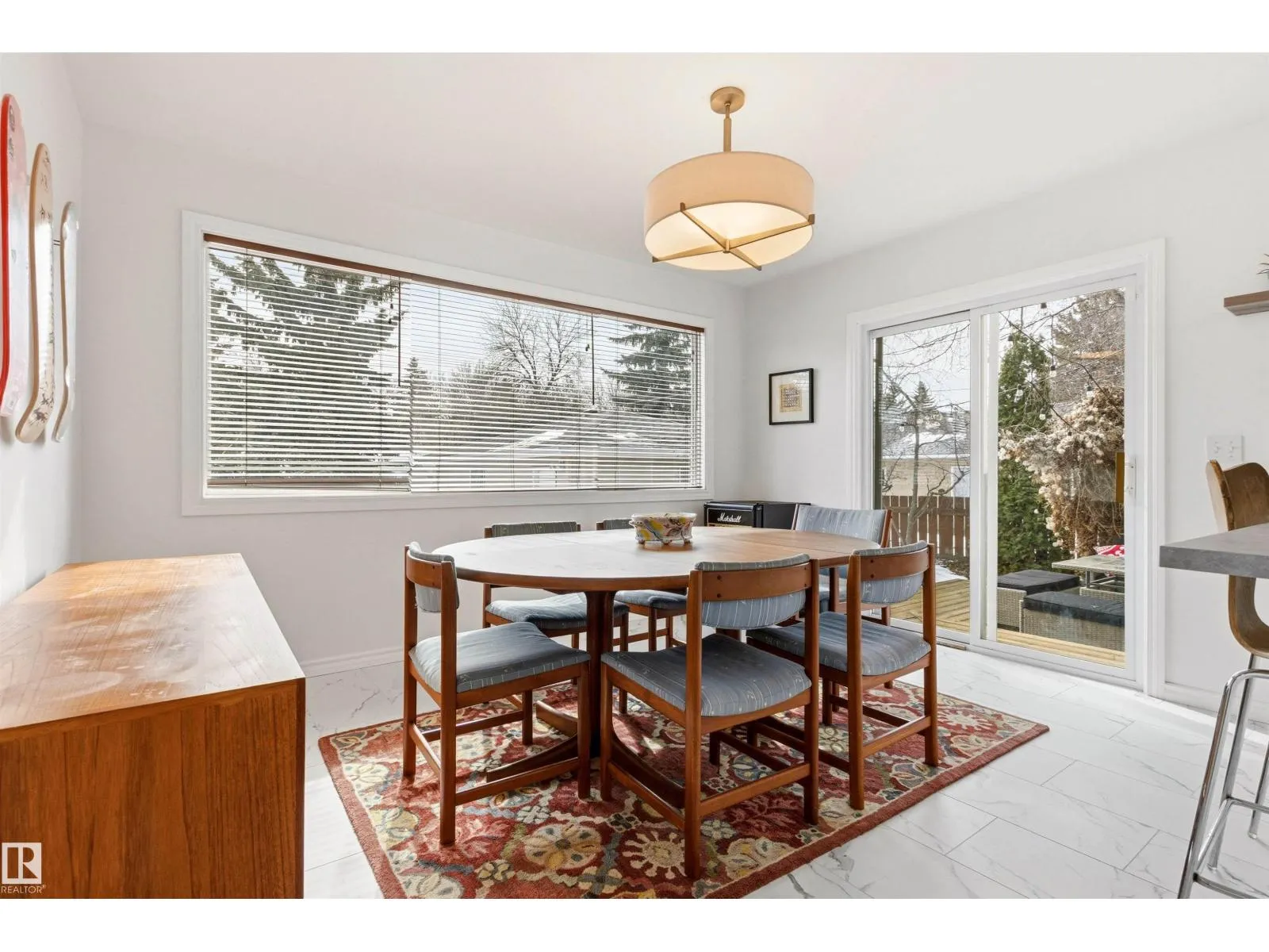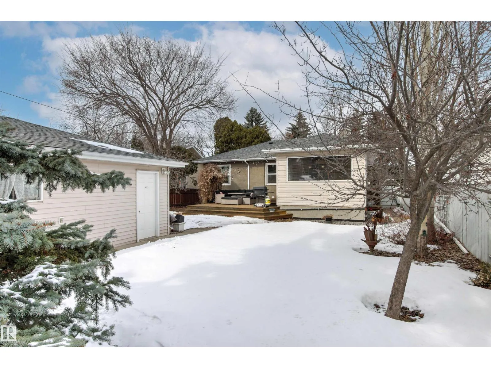 Modern meets historic in desirable North Glenora! Nestled on a large lot in a quiet crescent, this well-maintained 1,100 sq ft bungalow offers 4 bedrooms and 2 full bathrooms. Featuring newer windows and roof, the home boasts a renovated kitchen with a bright, attached dining areaâperfect for everyday living and entertaining. Both bathrooms have been tastefully updated. The fully finished basement includes a spacious family room, additional bedroom, 3-piece bath, laundry, and ample storage. Enjoy a private, south-facing backyard and a double detached garage. Additional upgrades include a new sewer line (2022). Ideally located close to parks, schools, shopping, and all amenities. Perfect for your family to Move Right In!! (id:27476)