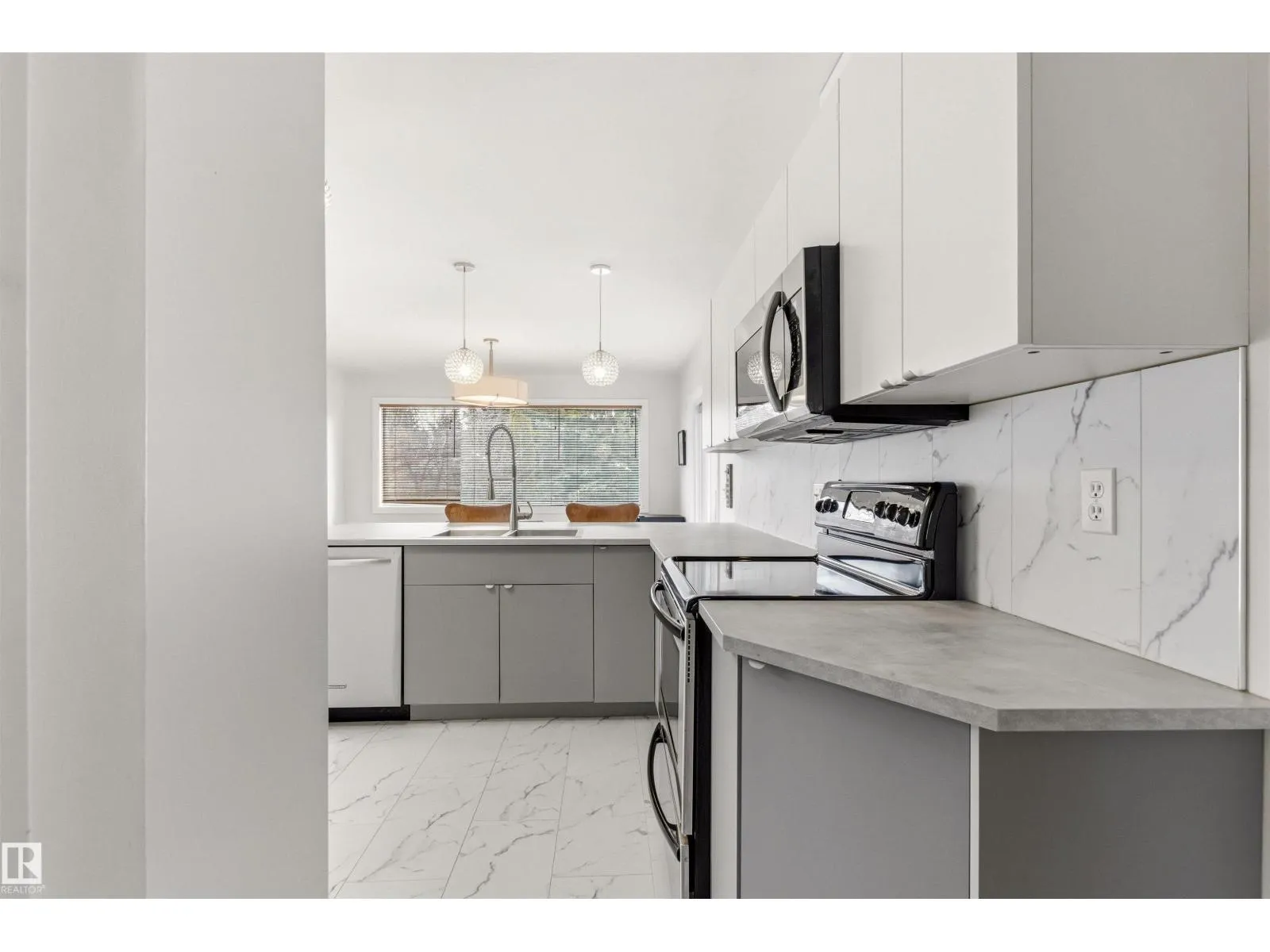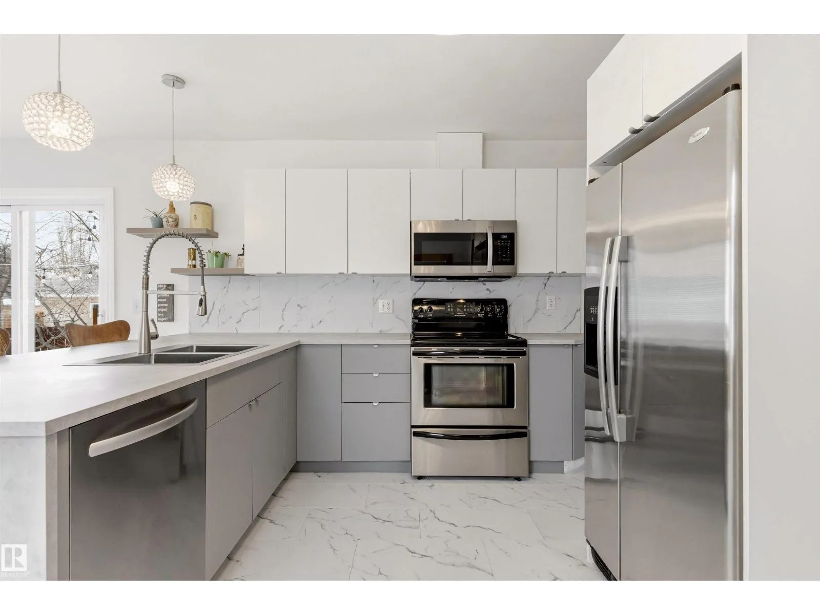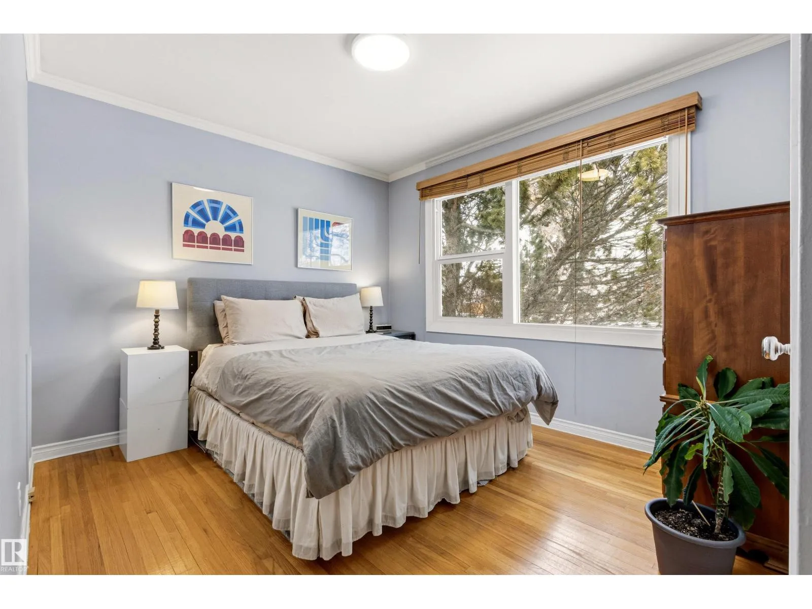 Modern meets historic in desirable North Glenora! Nestled on a large lot in a quiet crescent, this well-maintained 1,100 sq ft bungalow offers 4 bedrooms and 2 full bathrooms. Featuring newer windows and roof, the home boasts a renovated kitchen with a bright, attached dining areaâperfect for everyday living and entertaining. Both bathrooms have been tastefully updated. The fully finished basement includes a spacious family room, additional bedroom, 3-piece bath, laundry, and ample storage. Enjoy a private, south-facing backyard and a double detached garage. Additional upgrades include a new sewer line (2022). Ideally located close to parks, schools, shopping, and all amenities. Perfect for your family to Move Right In!! (id:27476)