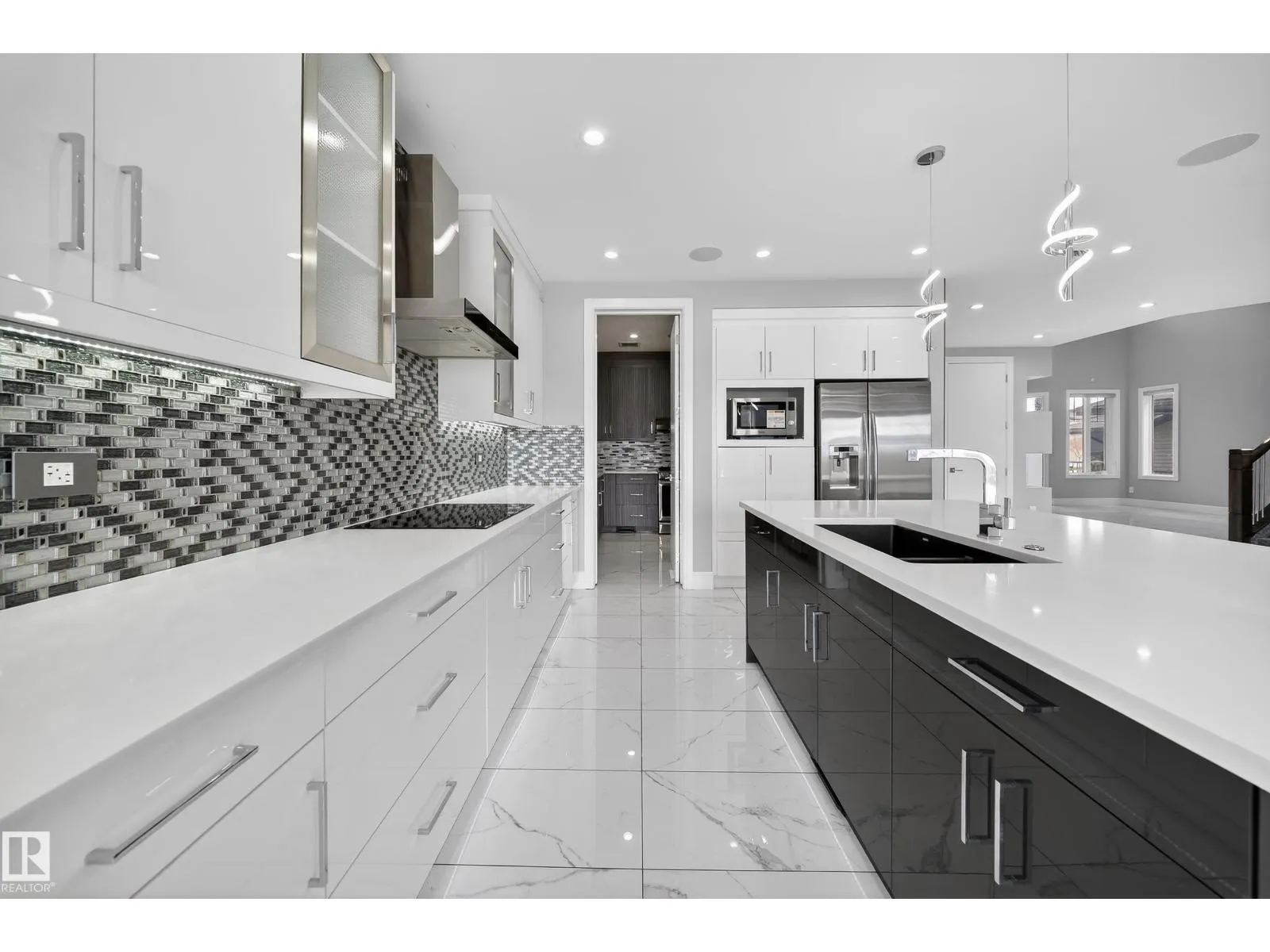 Some mornings start with coffee in the heated 3-season sunroom, watching the trails below while everything is still quiet. Other days are louder, fuller, and exactly what this home was built for. Backing onto a permanent environmental reserve in Maple, this custom home offers 3,720 SF above grade plus a fully finished walkout, with 6 bedrooms, a main floor office, and 6 bathrooms. Upstairs, each bedroom has its own ensuite and walk-in closet. A full spice kitchen, walk-through pantry, in-floor heating, built-in speakers, A/C, and custom storage make daily life feel effortless. Add a triple oversized heated garage with epoxy floors, 3 pond-facing balconies, and a walkout basement built for entertaining, and this becomes the kind of home people stop looking for once they find it. Set in one of Southeast Edmontonâs most connected family communities, Maple offers quick access to schools, parks, shopping, and everyday essentials. (id:27476)