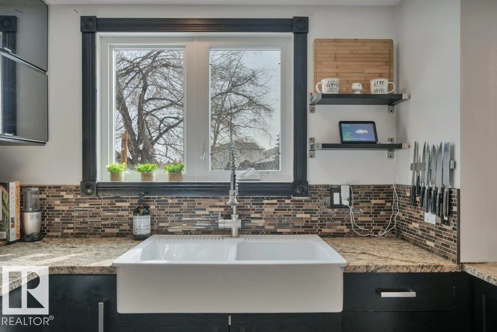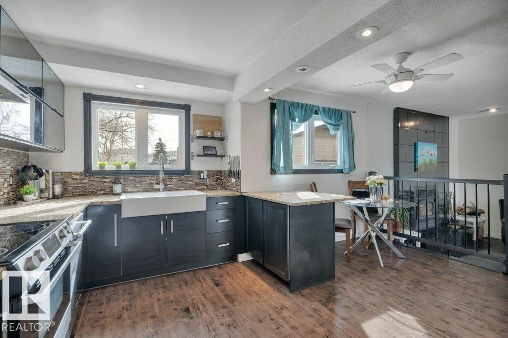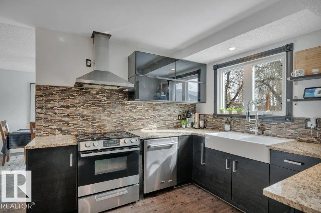 This is the ONE! Updated and immaculately kept BUNGALOW in a QUIET CUL-DE-SAC with over 1,300 SF above grade and a HUGE 7,500+ SF lot. Main floor features 3 BEDROOMS, including a primary with 3-PIECE ENSUITE, plus an updated full 4-piece bath. RUSTIC REFINISHED HARDWOOD + UPDATED MODERN KITCHEN w/SS APPLIANCES, rich GRANITE countertops, beautiful tile backsplash, FARMHOUSE SINK, dining nook AND a SEPARATE DINING AREA that leads to the GORGEOUS BACKYARD PATIO. Additional SIDE ENTRANCE, too! Spacious sunken living room with WOOD-BURNING fireplace adds charm and character. FULLY FINISHED BASEMENT includes LARGE REC ROOM, WET BAR, 3-piece bathroom, LARGE OFFICE SPACE + room for a play area. Wait for it... there's also a BEAUTIFULLY MAINTAINED BACKYARD with raised garden beds, playhouse structure, woodshed + DOUBLE DETACHED GARAGE w/covered carport for EXTRA PARKING. GREAT LOCATION near schools + parks, shopping, transit/LRT, and major routes. MOVE-IN READY with fresh paint throughout! A truly RARE find. (id:27476)