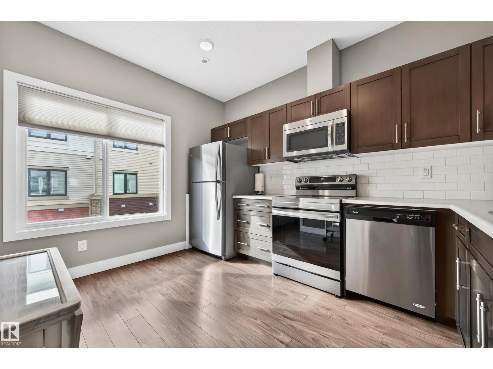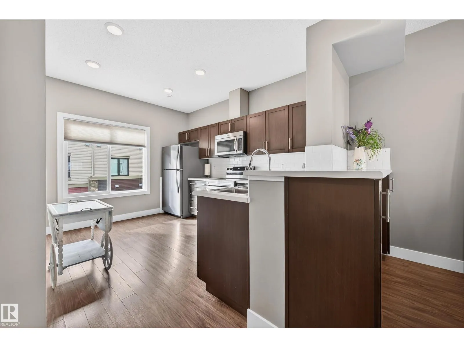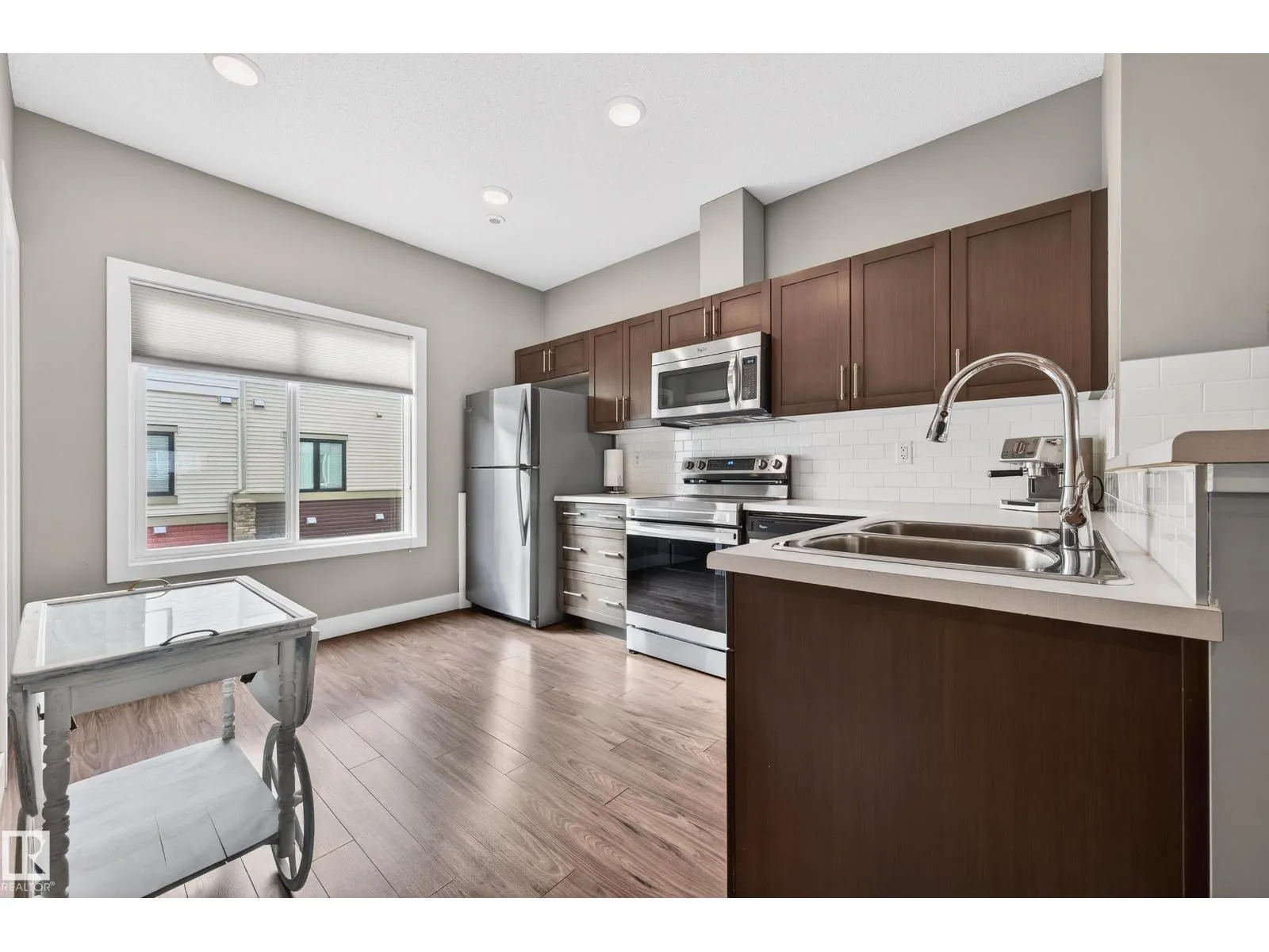 This thoughtfully designed 2-bed, 2.5 bath townhome in Village at Walker Lakes has been well maintained by the original owners. The main level features 9' ceilings and a bright, open layout with a modern kitchen, large pantry, and living and dining areas that lead out to your private balcony. Upstairs, you'll find two spacious bedrooms, each with walk-in closets, including a primary with a 3-piece ensuite, along with a second full bath and convenient upper laundry. The lower level includes a flex space ideal for a home office or workout area, plus access to the attached garage and front patio, perfect for enjoying some summer sun. Built by Landmark Homes, this home features energy-efficient mechanical systems including on-demand hot water, a high-efficiency furnace, HRV and triple-pane windows. Ideally located close to walking trails, ponds, shopping, and everyday amenities, with quick access to the Henday and South Edmonton Common. A great option for low-maintenance living without sacrificing space. (id:27476)