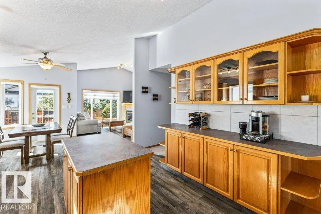 Immaculate ORIGINAL OWNER bi-level in a quiet cul-de-sacâperfect for families! Lovingly maintained with newer roof, furnace & HWT. Bright & spacious with soaring vaulted ceilings, large windows, and quality flooring throughout. Youâll love the open-concept main floor with a welcoming entry, elegant living room, and a dream kitchen featuring s/s appliances, island, pantry & rich oak cabinetry. The dining area opens to a sunny south-facing 2-tier deckâideal for BBQs & family gatheringsâand connects to a cozy family room with gas fireplace. 3 large bedrooms on the main, including a primary with ensuite & ample closet space. The professionally finished basement boasts high ceilings, big windows, 2 more bedrooms, full bath, laundry & a huge rec room with fireplace & pool tableâperfect for movie nights or family hangouts! Stunning curb appeal, fenced yard, mature fruit trees & double garage. Close to top schools, parks, rec centre & shopping. A true forever home! (id:27476)