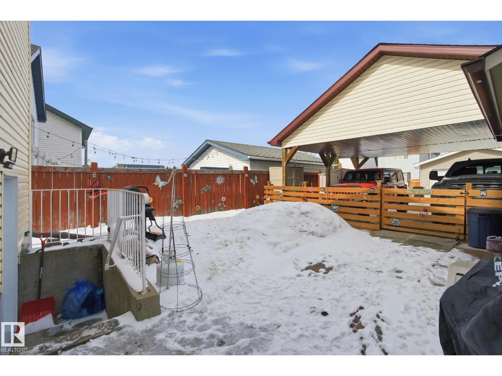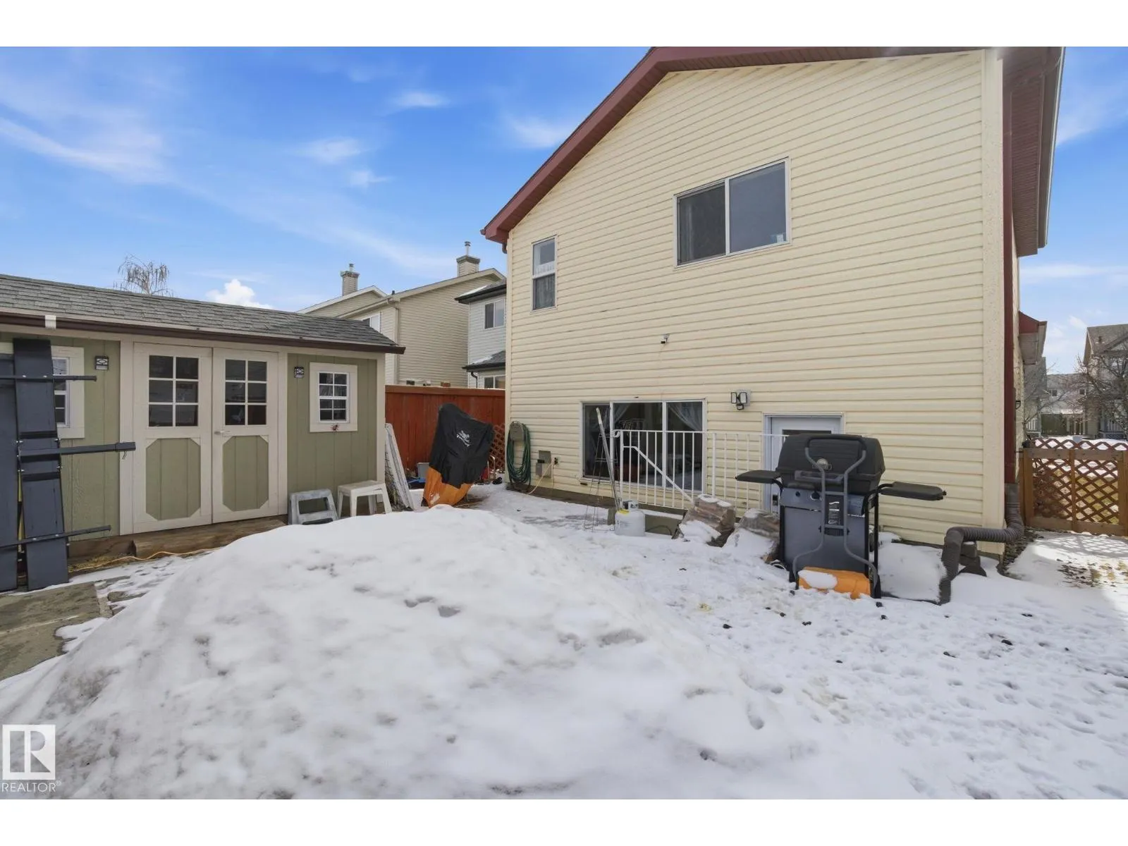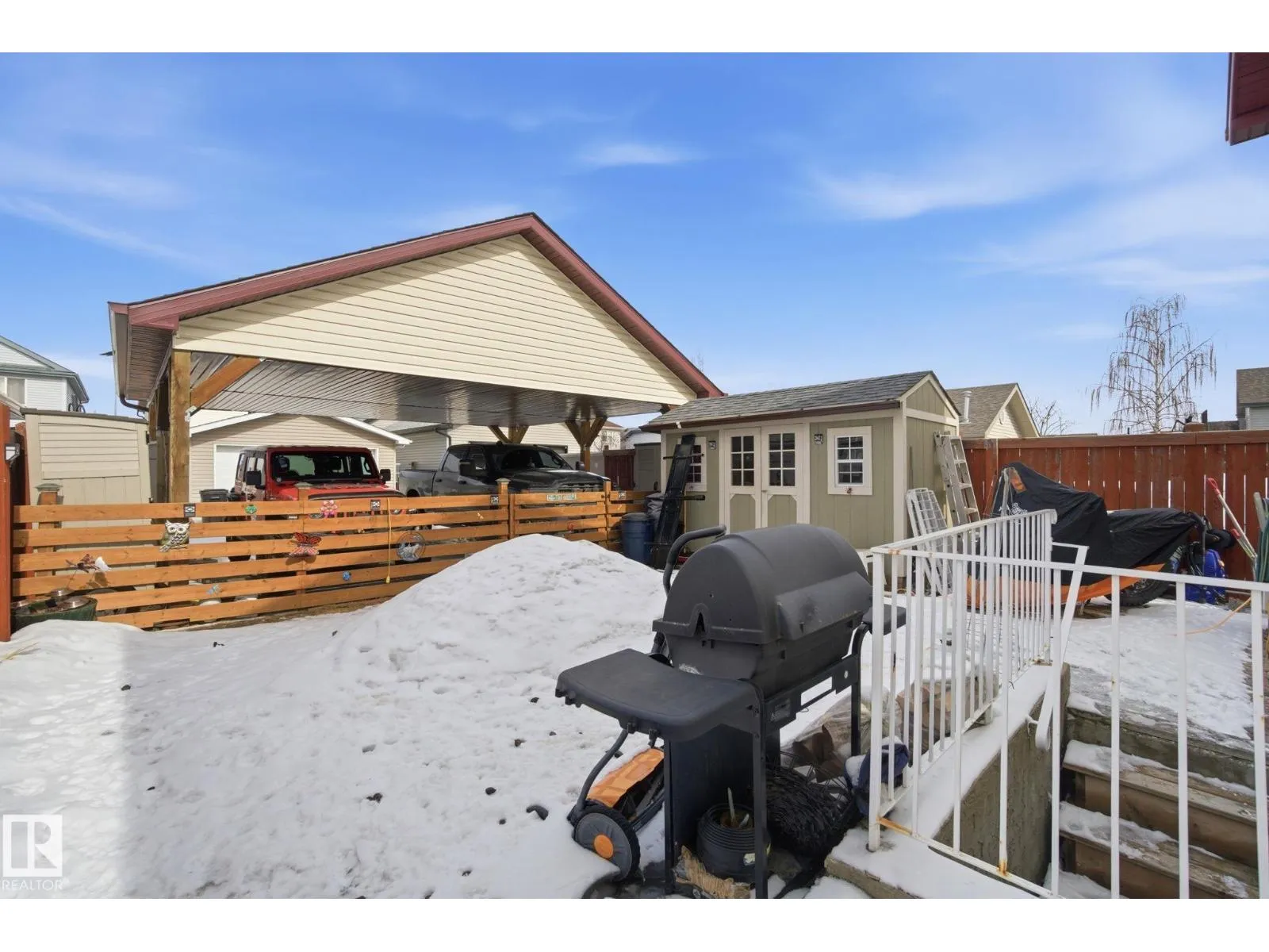 Quaint and full of potential, this charming 4-level split in desirable Cumberland is perfect for first-time buyers or investors! Step onto the front verandah and into a bright, open-concept main floor with soaring vaulted ceilings and large windows that fill the space with natural light. The kitchen features an island and ample cabinetry, adjoining dining & welcoming front living room. Upstairs offers a spacious primary suite with 4-piece ensuite and walk-in closet, plus a second bedroom and full bath. The third level includes a cozy family room with corner gas fireplace, a third bathroom, and a versatile flex/office space or 3rd bdrm. Walkout access to the fully fenced, landscaped yard. The fourth level provides a LG open space with potential for another living room & 4th bedroom, along with a massive crawl space for storage. Outside, enjoy four sheds and a professionally built carport that could be enclosed. Shingles professionally done in 2021. Quick access to the Henday and just minutes to St.Albert. (id:27476)
