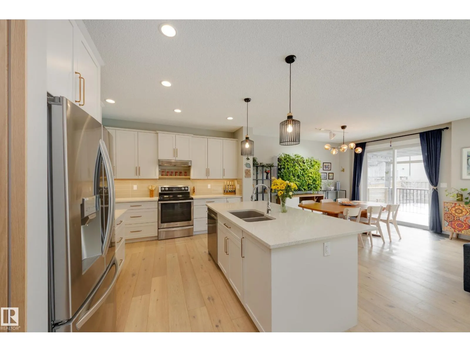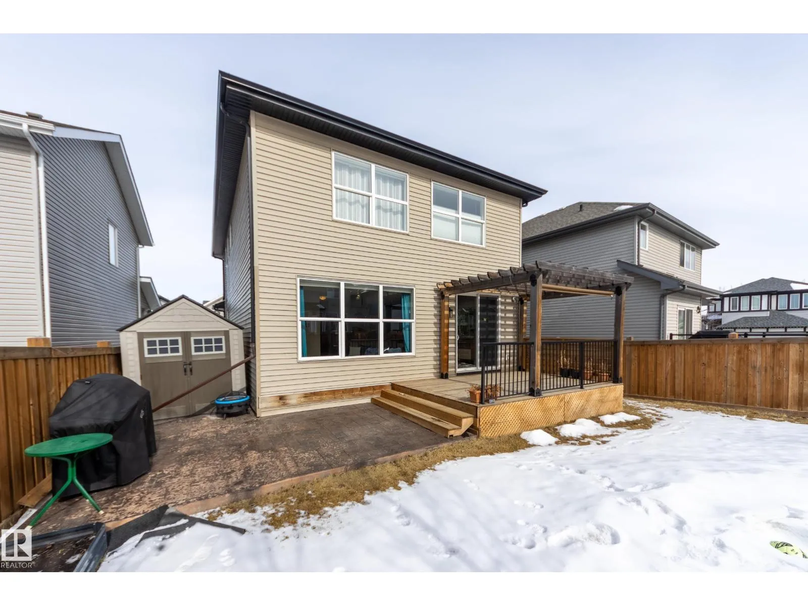MOVE IN READY!!! This STUNNING, fully finished 2-storey home boasts over 3,200 sqft of total living space. Main floor features engineered hardwood throughout: Open concept living rm, dining & KITCHEN: large island w/ over hang for bar stools, backsplash, upgraded s/s appliances & large walk-in pantry. Powder room & spacious mud room (w/ built-in shelving unit) completes this floor. Upper level w/ King size Primary suite: 5-piece ensuite â dual vanities, soaker tub, tiled shower, separate water closet & walk-in closet. BONUS ROOM, additional 2 spacious bedrooms, a 4-piece bath & LAUNDRY. Hunter Douglas blinds throughout. Basement w/ second living room w/ wall built-ins, 4th bedroom & spa like 3-piece bath. HEATED garage. Fully fenced SOUTH facing backyard. ALL UPGRADES: garburator/hood-fan (2025) & water softener/kitchen drawers (2024). Enjoy lower utility costs w/ your SOLAR PANELS (42 panels). Quick access to Anthony Henday, Manning Drive (HWY 15) & 15 min drive to Canadian Forces Base (CFB). (id:27476)