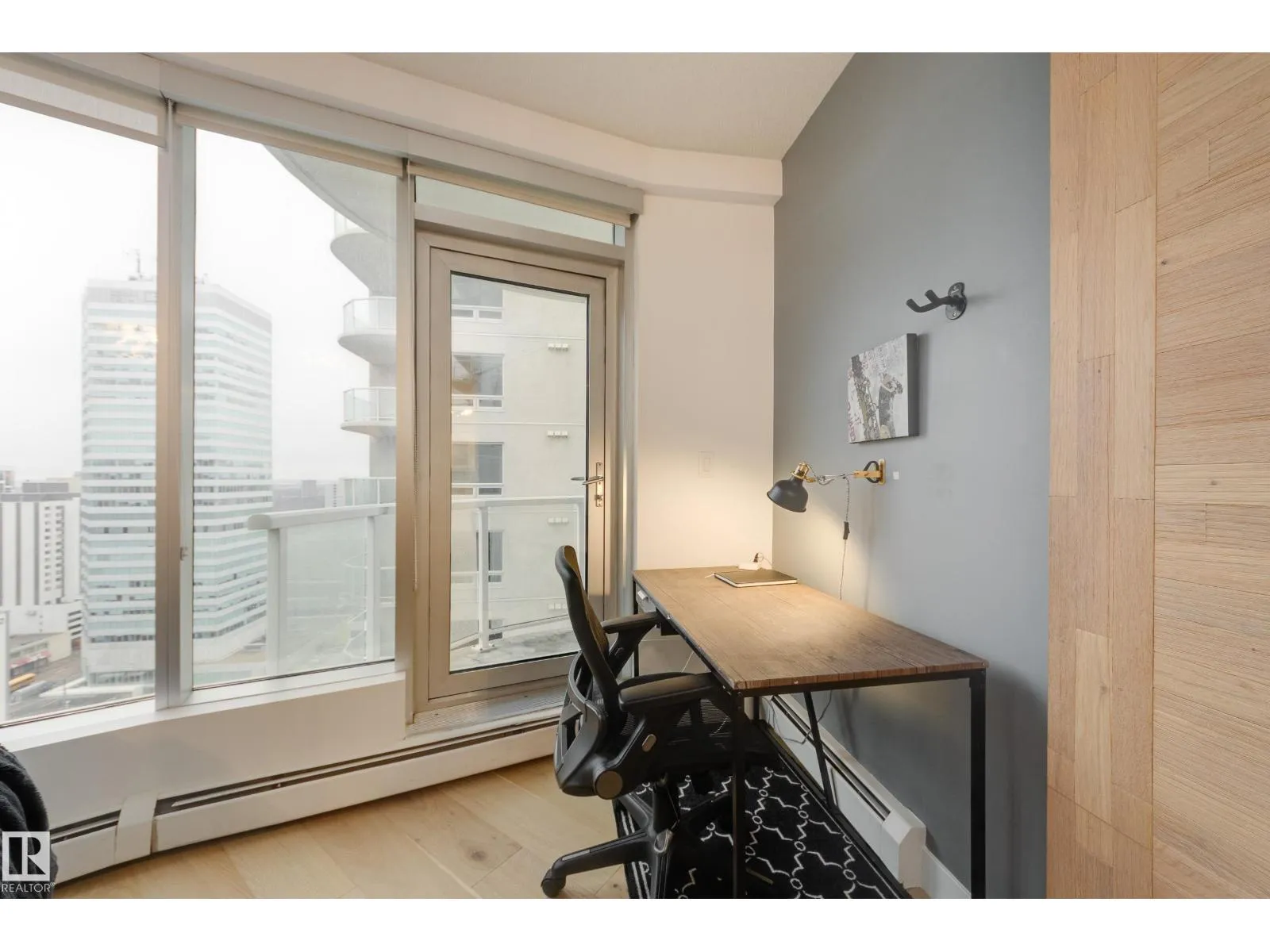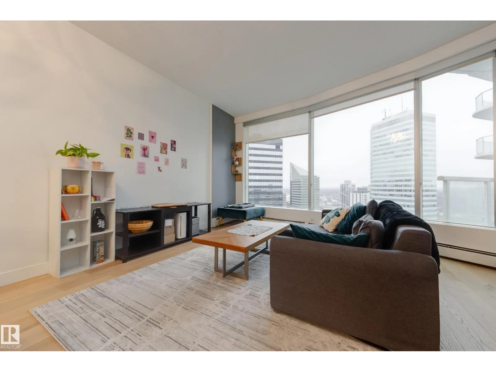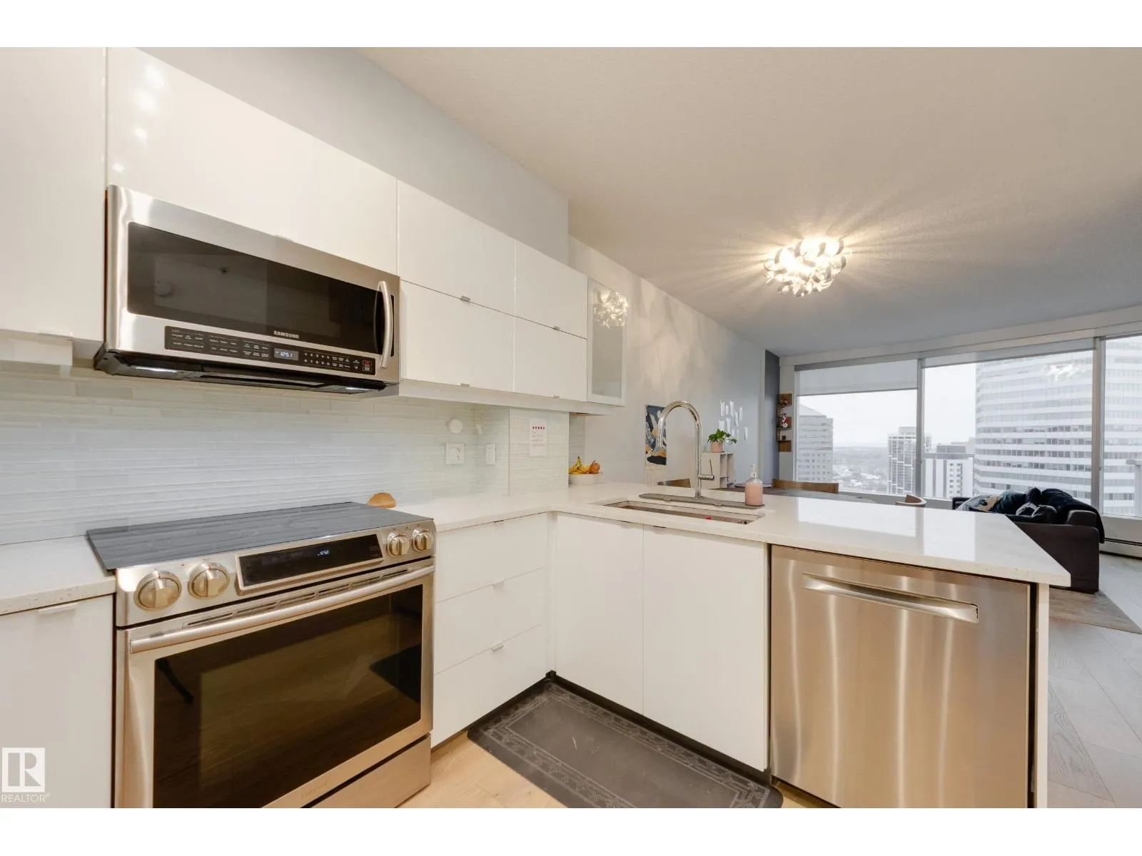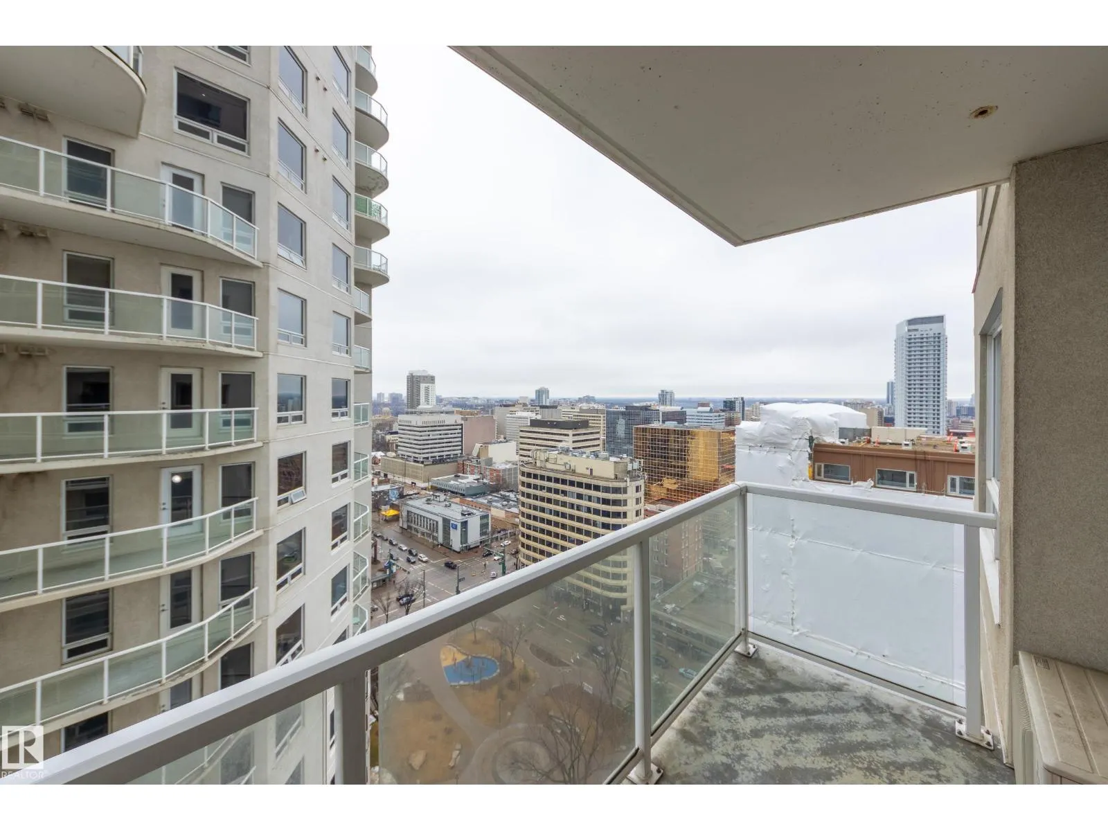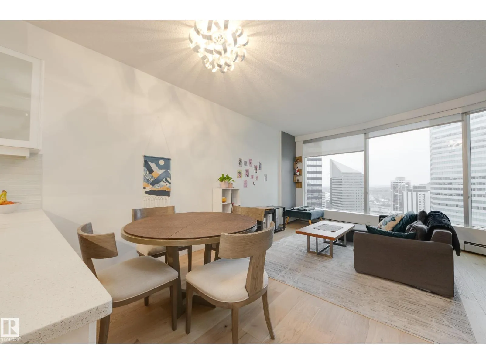 Finallyâa renovated 104th Street condo! Tired of looking at listing after listing of dated, contractor-grade kitchens and flooring? Youâre in luck. This south-facing 20th-floor unit has been fully renovated and features over 850 square feet of high-end finishes. Beautiful wide-plank oak hardwood runs throughout the 2-bed, 2-bath layout. The large kitchen showcases new cabinets for extra storage, white quartz countertops, and stainless steel appliances. The dining area is spacious enough for a table plus bar seating, and the living room is complete with a million-dollar panoramic view of the city. The primary bedroom features a 4-piece ensuite with modern tile and a walk-in closet. A generous second bedroom offers the flexibility for either a roommate or a home office. An additional 3-piece bathroom, in-suite laundry, air conditioning, and heated secure parking complete the package. Located on downtownâs most historic street, youâre just steps away from food, coffee, and events. Come see it for yourself! (id:27476)