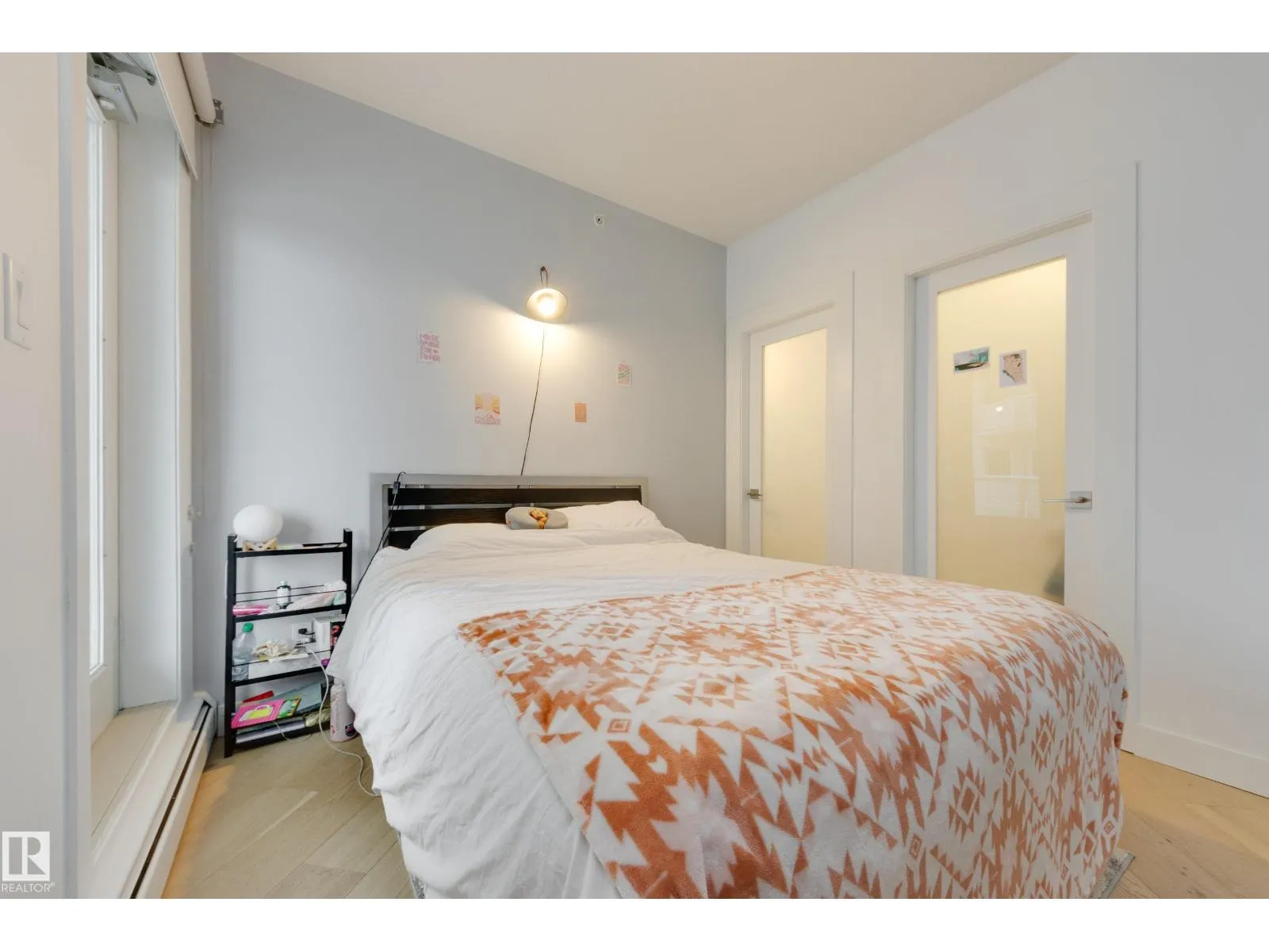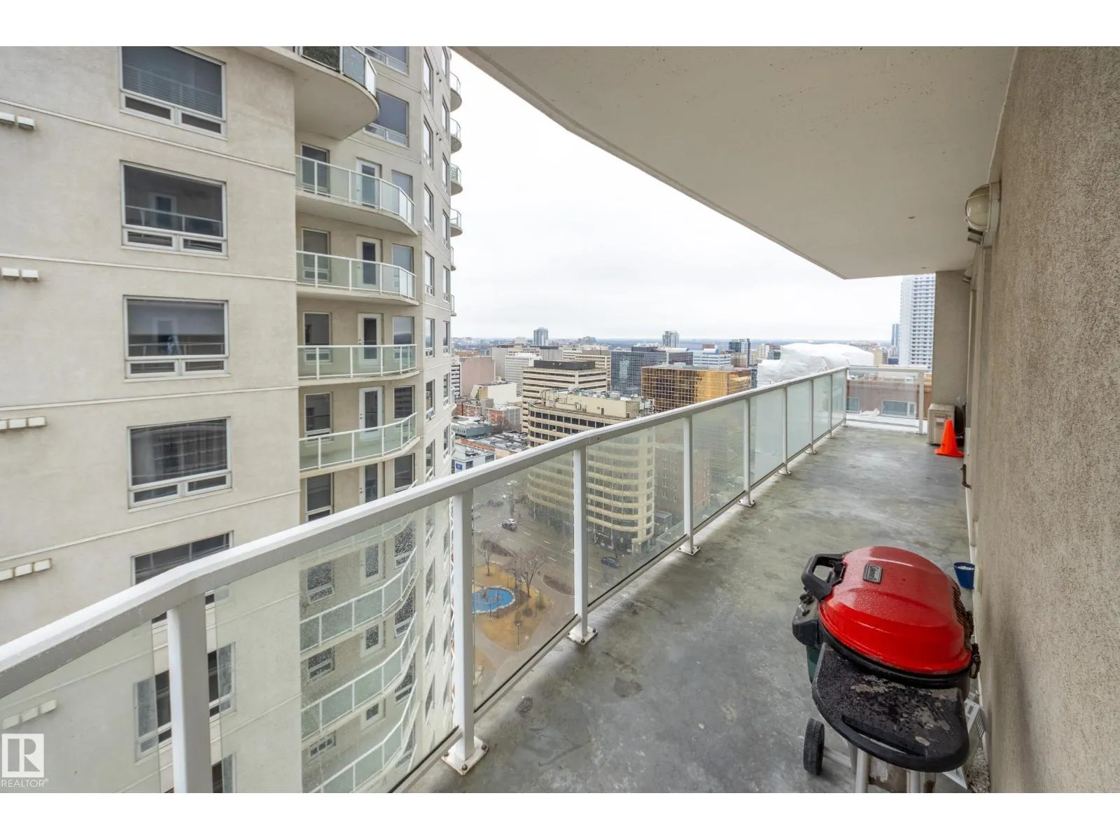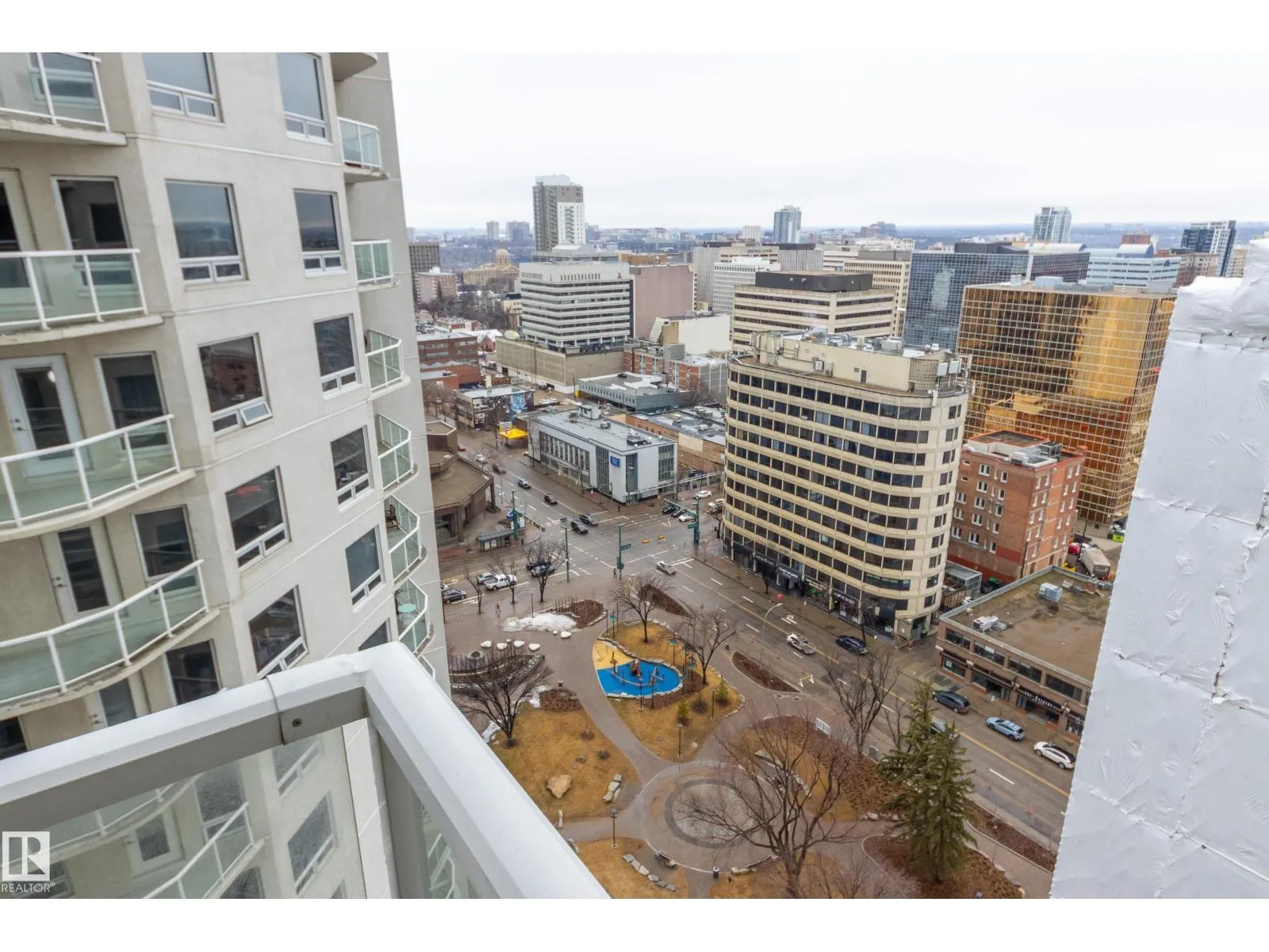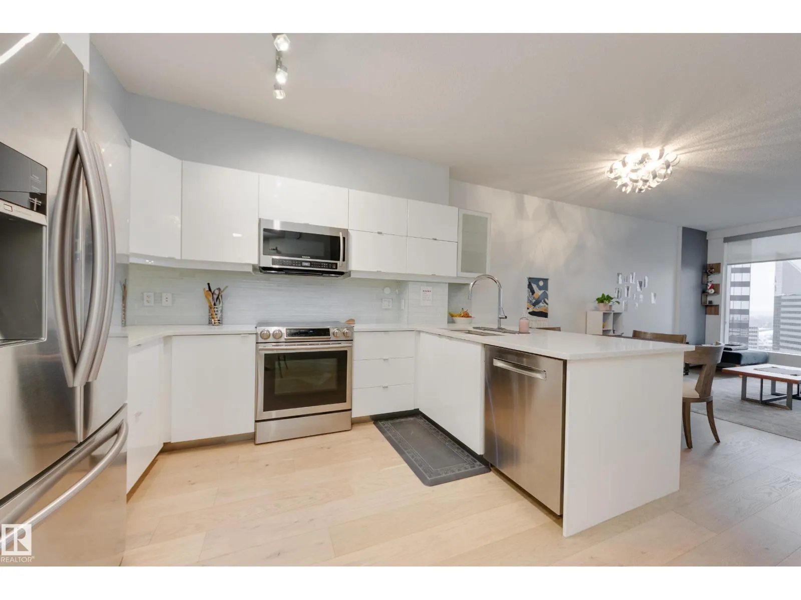 Finallyâa renovated 104th Street condo! Tired of looking at listing after listing of dated, contractor-grade kitchens and flooring? Youâre in luck. This south-facing 20th-floor unit has been fully renovated and features over 850 square feet of high-end finishes. Beautiful wide-plank oak hardwood runs throughout the 2-bed, 2-bath layout. The large kitchen showcases new cabinets for extra storage, white quartz countertops, and stainless steel appliances. The dining area is spacious enough for a table plus bar seating, and the living room is complete with a million-dollar panoramic view of the city. The primary bedroom features a 4-piece ensuite with modern tile and a walk-in closet. A generous second bedroom offers the flexibility for either a roommate or a home office. An additional 3-piece bathroom, in-suite laundry, air conditioning, and heated secure parking complete the package. Located on downtownâs most historic street, youâre just steps away from food, coffee, and events. Come see it for yourself! (id:27476)