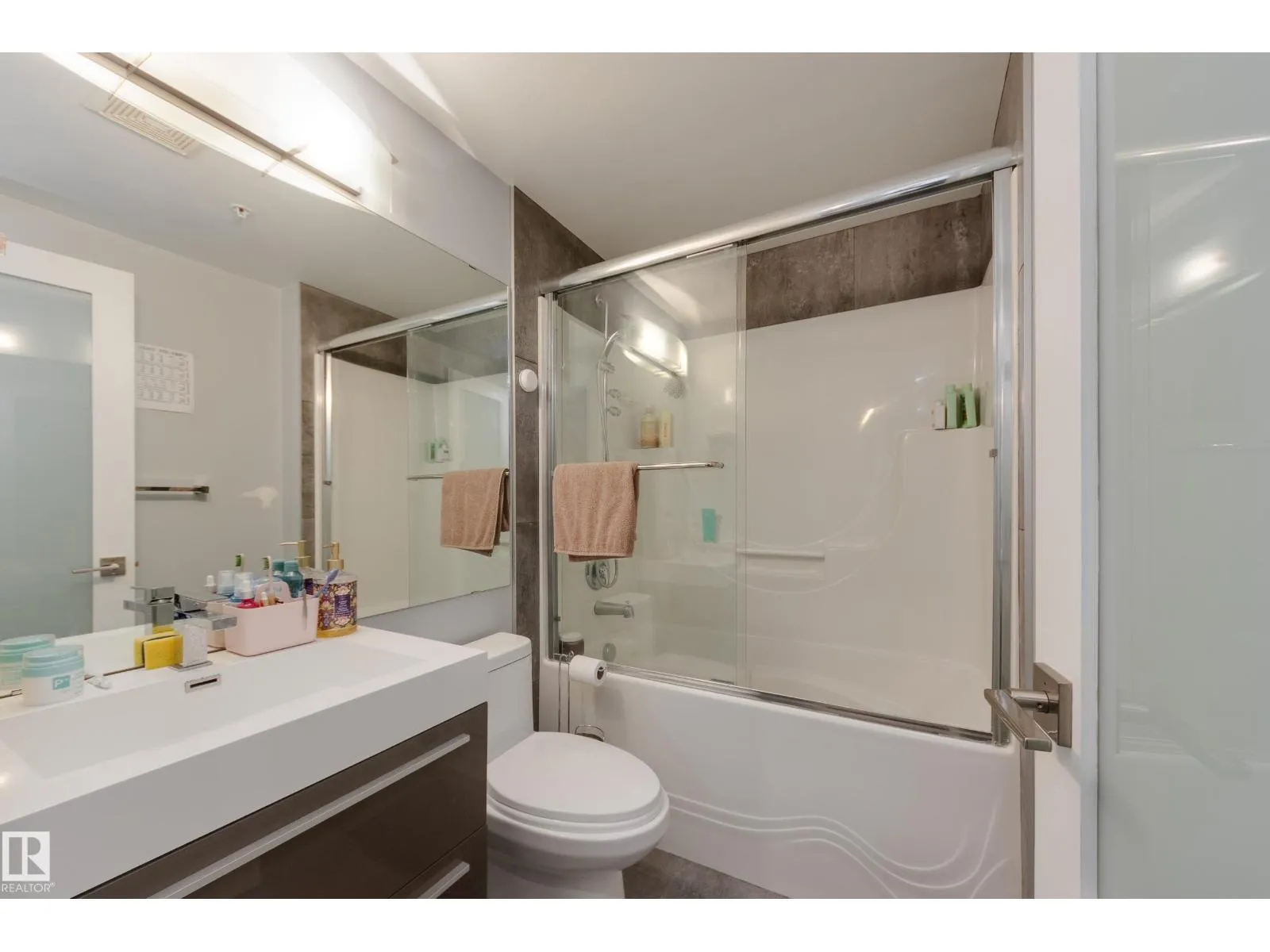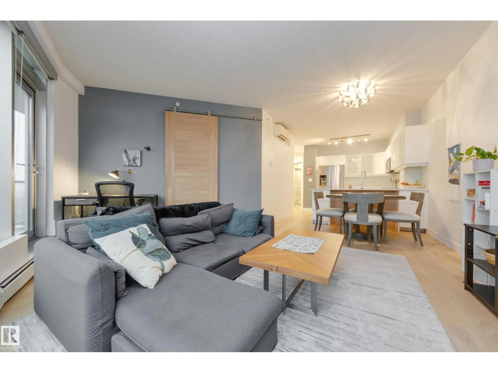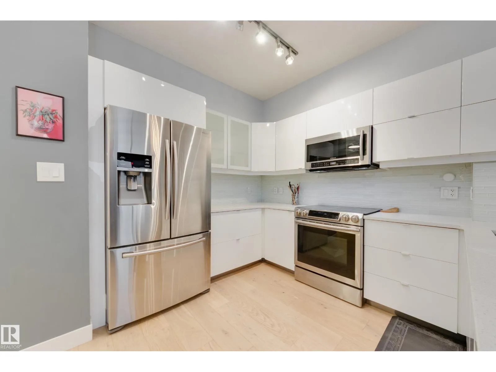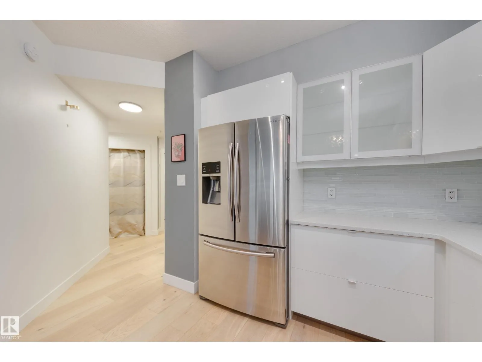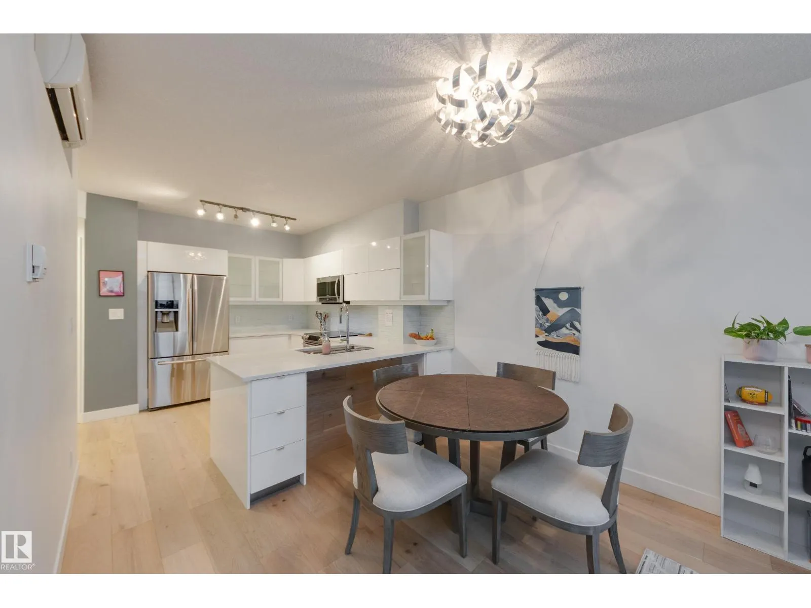 Finallyâa renovated 104th Street condo! Tired of looking at listing after listing of dated, contractor-grade kitchens and flooring? Youâre in luck. This south-facing 20th-floor unit has been fully renovated and features over 850 square feet of high-end finishes. Beautiful wide-plank oak hardwood runs throughout the 2-bed, 2-bath layout. The large kitchen showcases new cabinets for extra storage, white quartz countertops, and stainless steel appliances. The dining area is spacious enough for a table plus bar seating, and the living room is complete with a million-dollar panoramic view of the city. The primary bedroom features a 4-piece ensuite with modern tile and a walk-in closet. A generous second bedroom offers the flexibility for either a roommate or a home office. An additional 3-piece bathroom, in-suite laundry, air conditioning, and heated secure parking complete the package. Located on downtownâs most historic street, youâre just steps away from food, coffee, and events. Come see it for yourself! (id:27476)