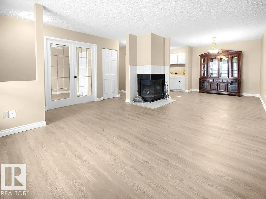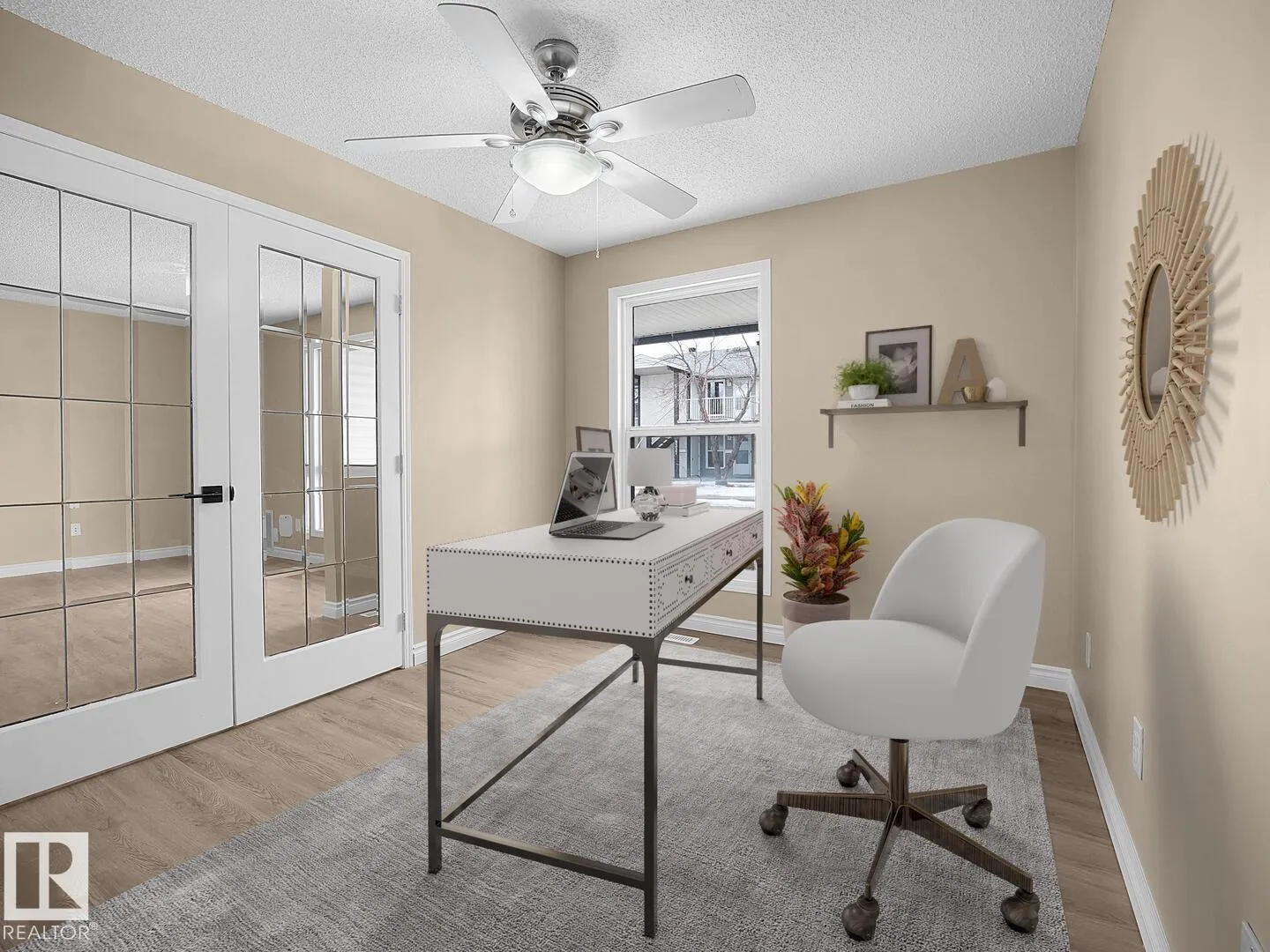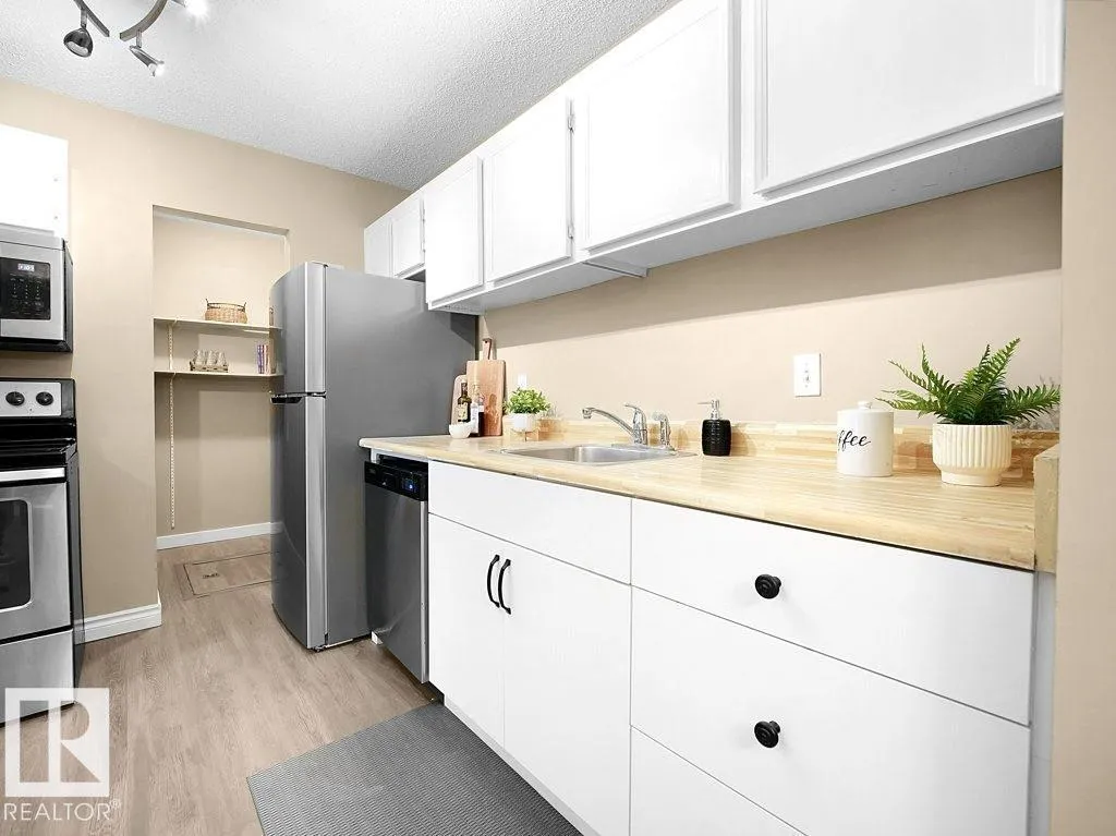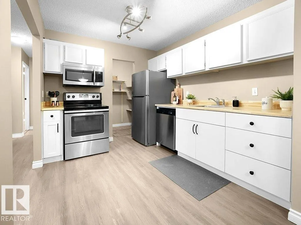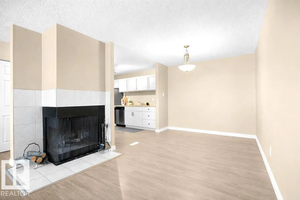 Bright Main Floor 2 Bedroom Condo. Prime West End Location - South-facing with Loads of Natural Light. *Primary Bedroom with Walk Through Closet, Leads to Completely Reno'd/Updated Bathroom with Ceramic Tile Surround & Chic Vanity. Second Bedroom with French Door Opening to Living Room - also Works as Den/Office. Stainless Steel Appliances, Large Walk-in Pantry & Dining Room. *Warm Neutral Tones, with Newer Paint & Vinyl Plank Flooring Throughout. Wood Burning Fireplace in Living Room. *Large Personal Storage Room & Visitor Parking Only Steps Away. Walking Distance to West Edmonton Mall, Shopping, Transit & Park. Enjoy. (id:27476)