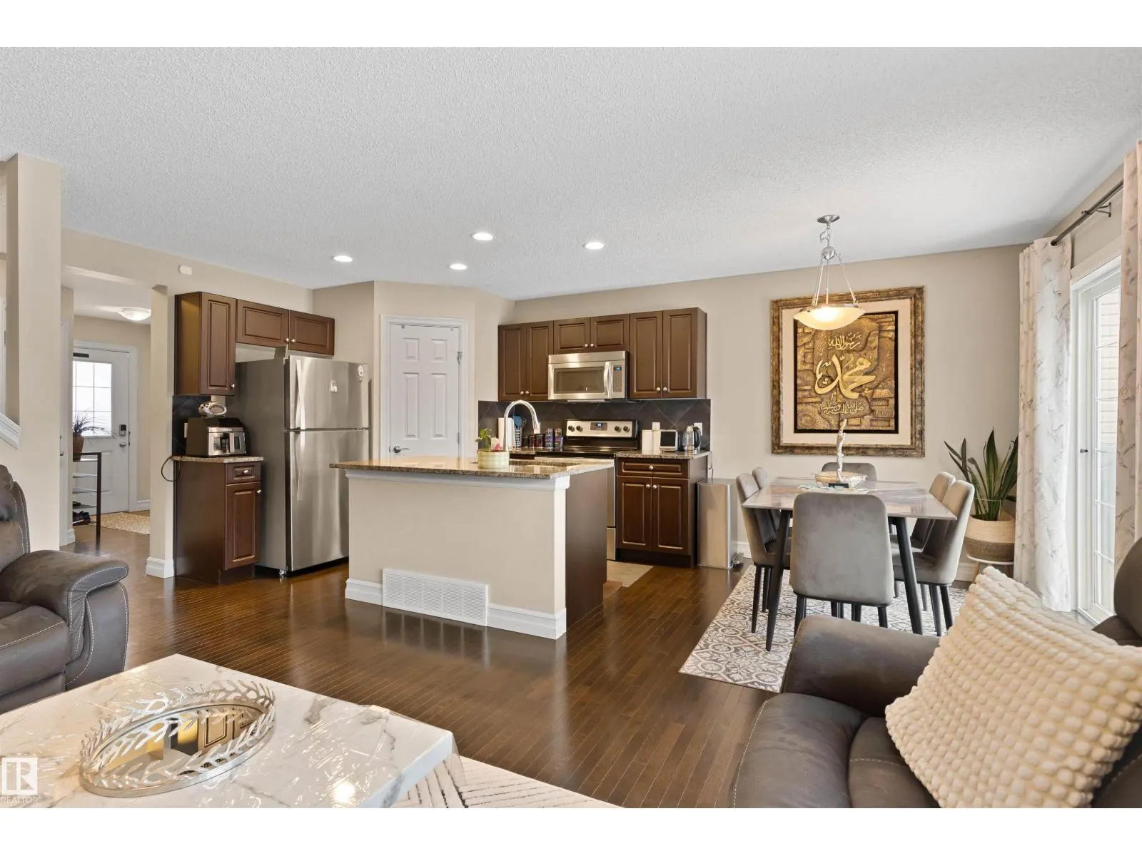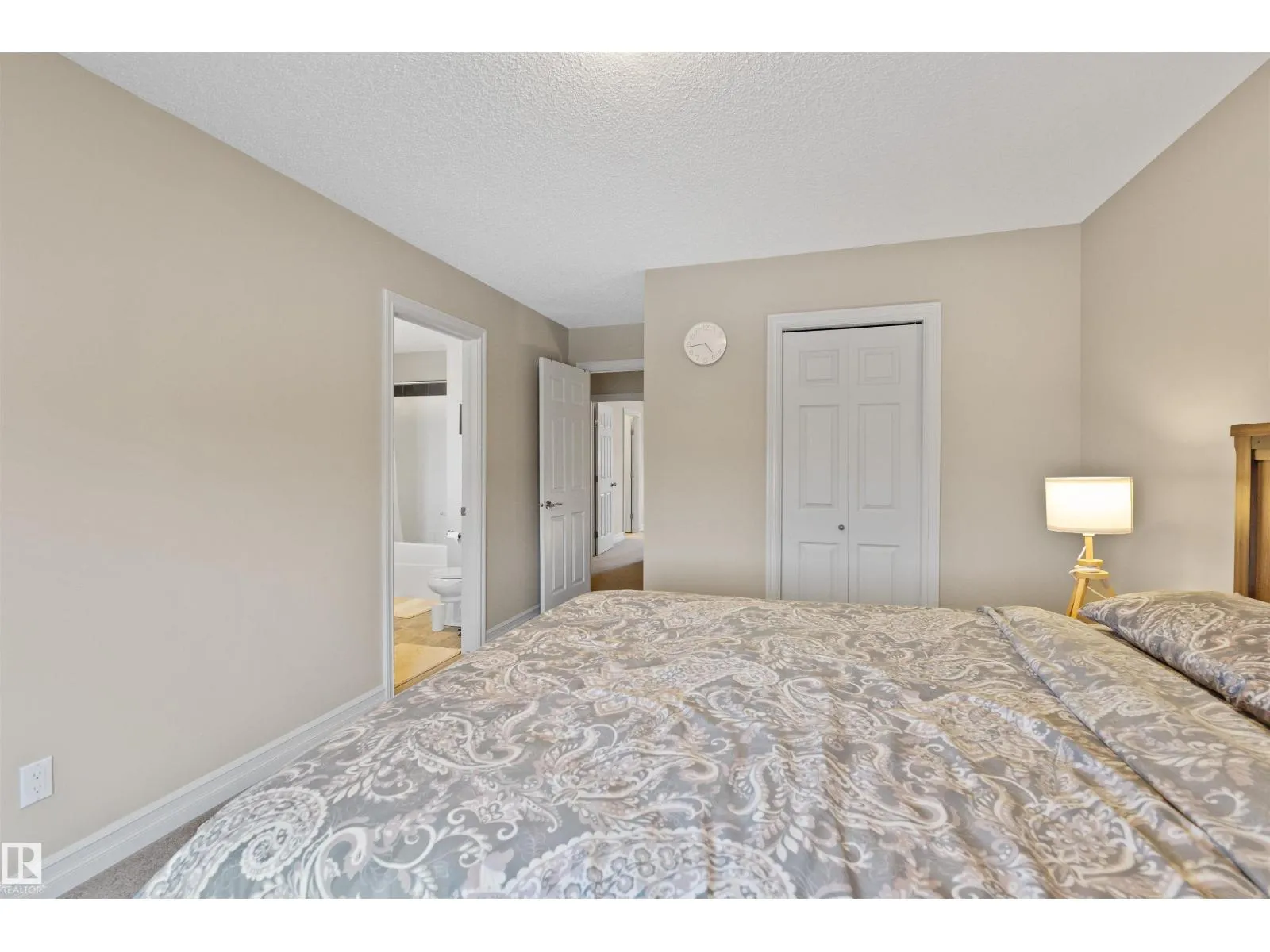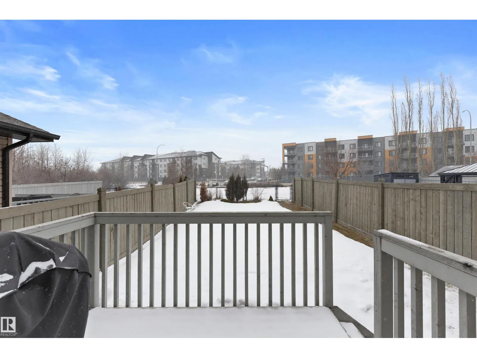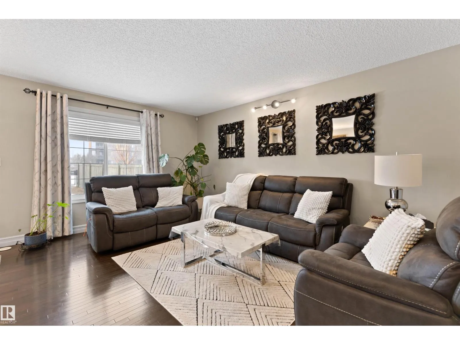 Discover this stylish Half Duplex in a prime location in Albany, northwest Edmonton! This beautifully maintained 2-bedroom half duplex is ideal for small families, professionals, or anyone looking for comfort and convenience. The main floor is an open floor concept- perfect for entertaining. The kitchen features dark cabinetry with GRANITE countertops, stainless steel appliances, corner pantry and a great view of the large backyard. HARDWOOD floors and a two piece bathroom complete the main floor. The second floor features two spacious bedrooms both with their own four piece ensuite and walk in closets! The laundry room is conventiently located on the upper level for comfort and ease. The basement is FULLY FINISHED with VINYL PLANK. A single attached garage (11'3 x 21'7) and high-velocity mini-duct system furnace complete this fantasic home. Close to shopping centres and easy access to the Anthony Henday! (id:27476)