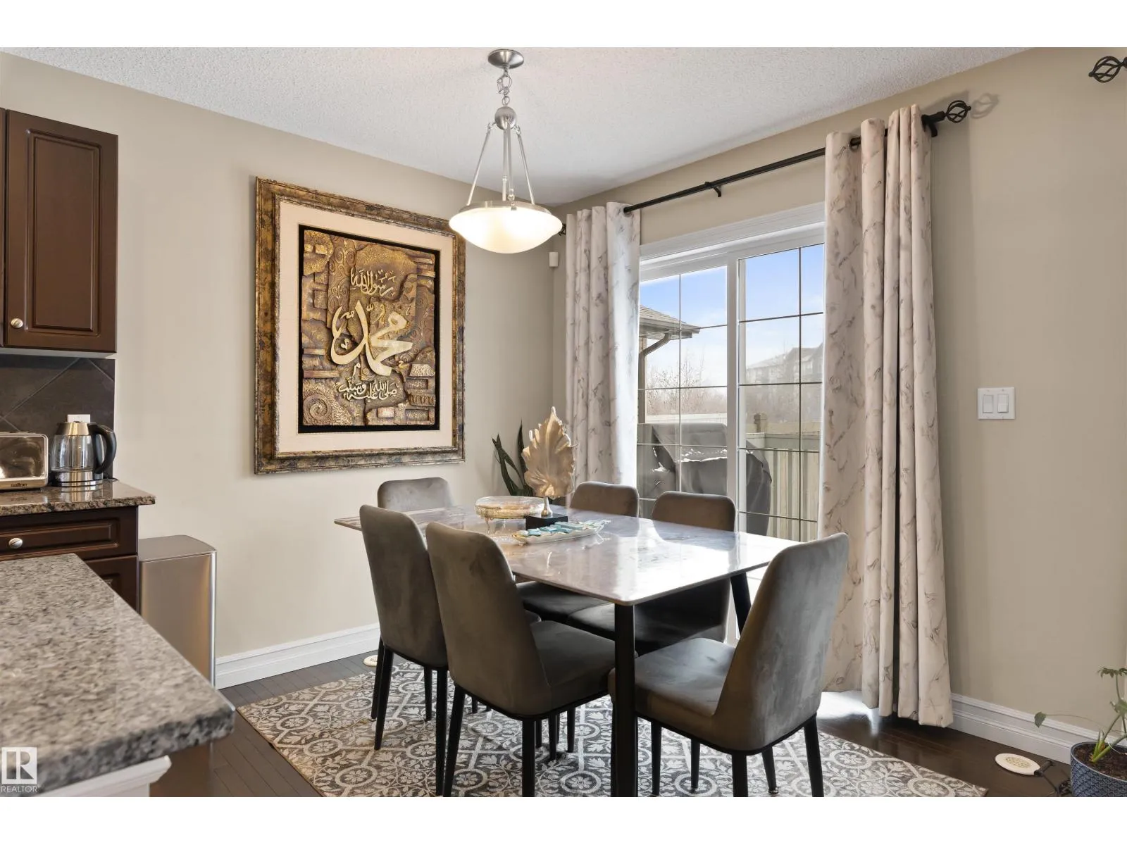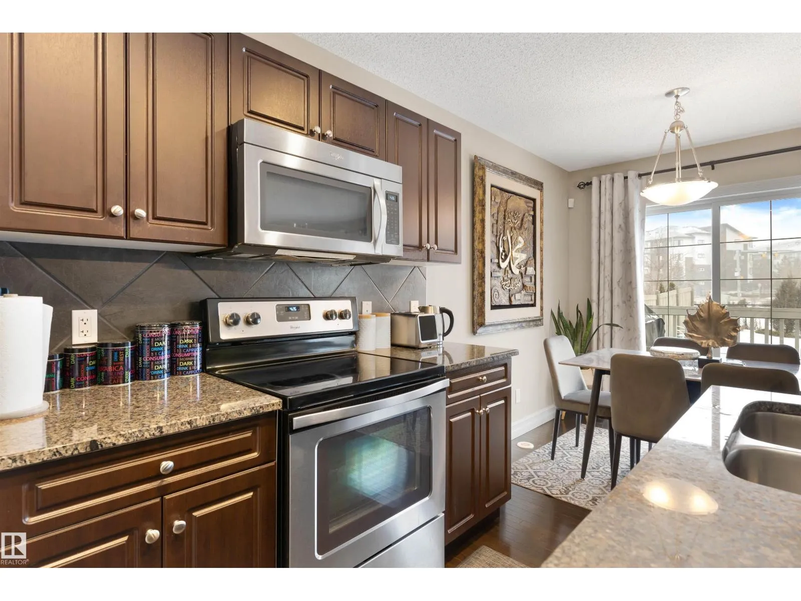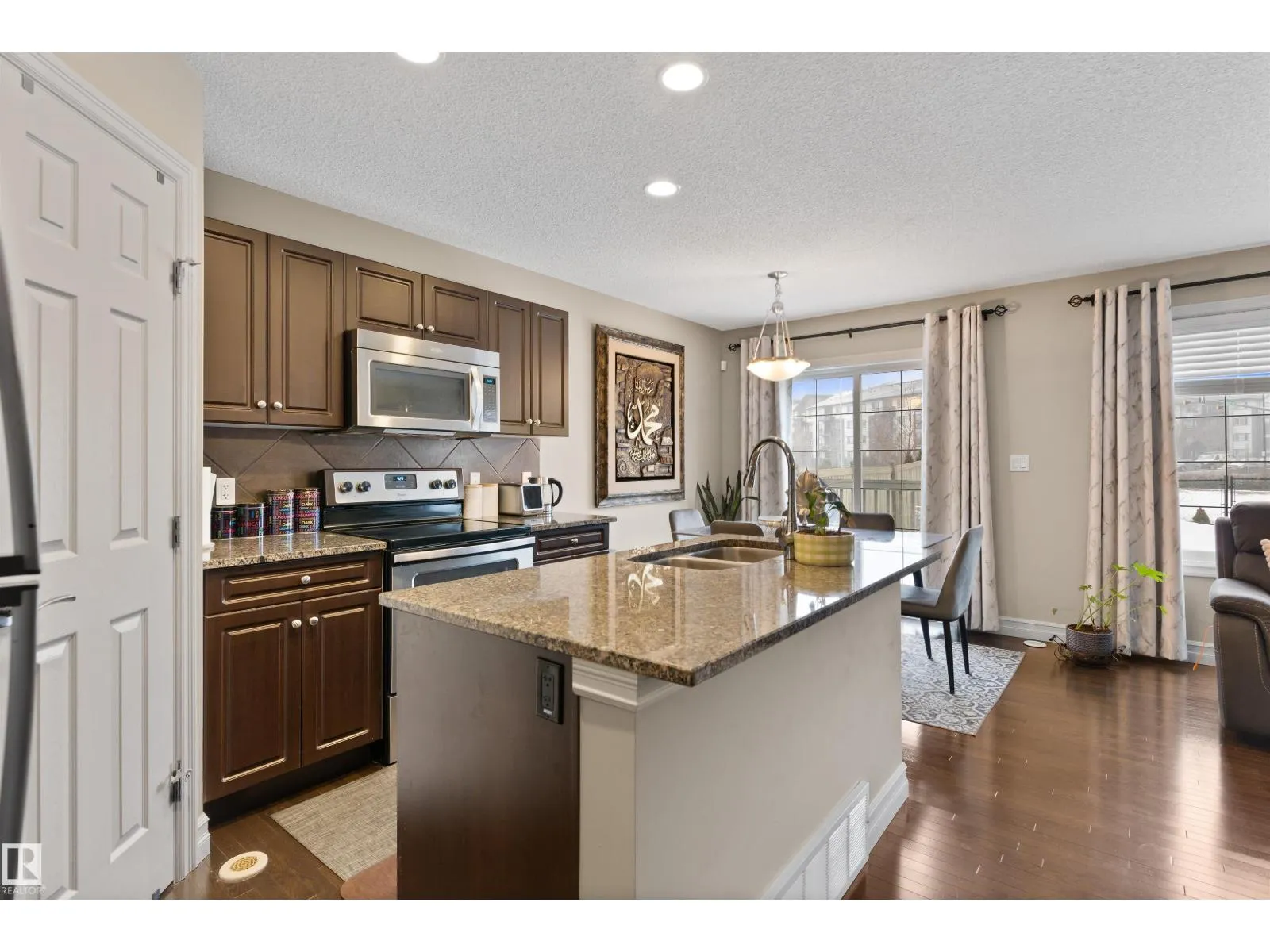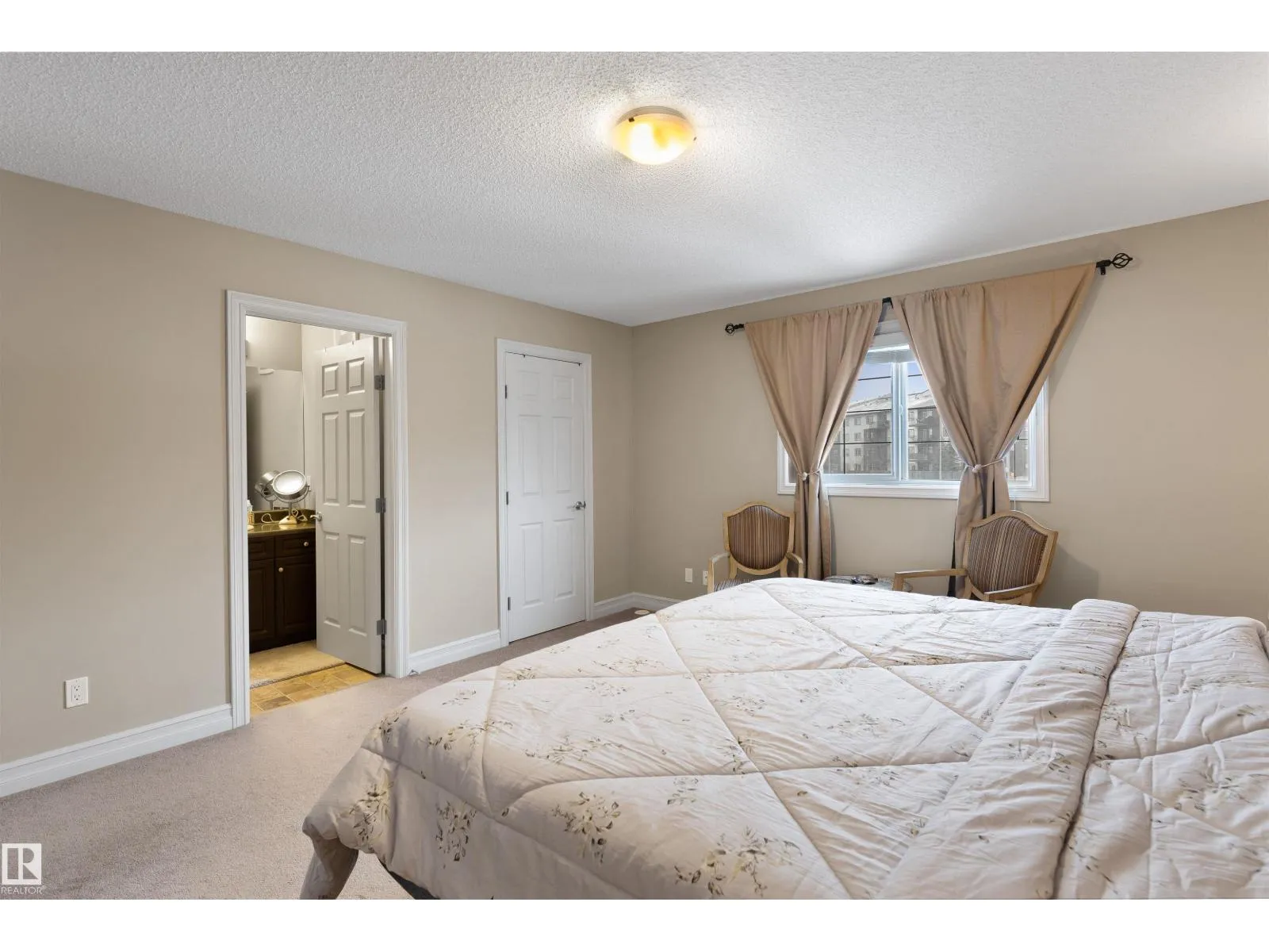 Discover this stylish Half Duplex in a prime location in Albany, northwest Edmonton! This beautifully maintained 2-bedroom half duplex is ideal for small families, professionals, or anyone looking for comfort and convenience. The main floor is an open floor concept- perfect for entertaining. The kitchen features dark cabinetry with GRANITE countertops, stainless steel appliances, corner pantry and a great view of the large backyard. HARDWOOD floors and a two piece bathroom complete the main floor. The second floor features two spacious bedrooms both with their own four piece ensuite and walk in closets! The laundry room is conventiently located on the upper level for comfort and ease. The basement is FULLY FINISHED with VINYL PLANK. A single attached garage (11'3 x 21'7) and high-velocity mini-duct system furnace complete this fantasic home. Close to shopping centres and easy access to the Anthony Henday! (id:27476)