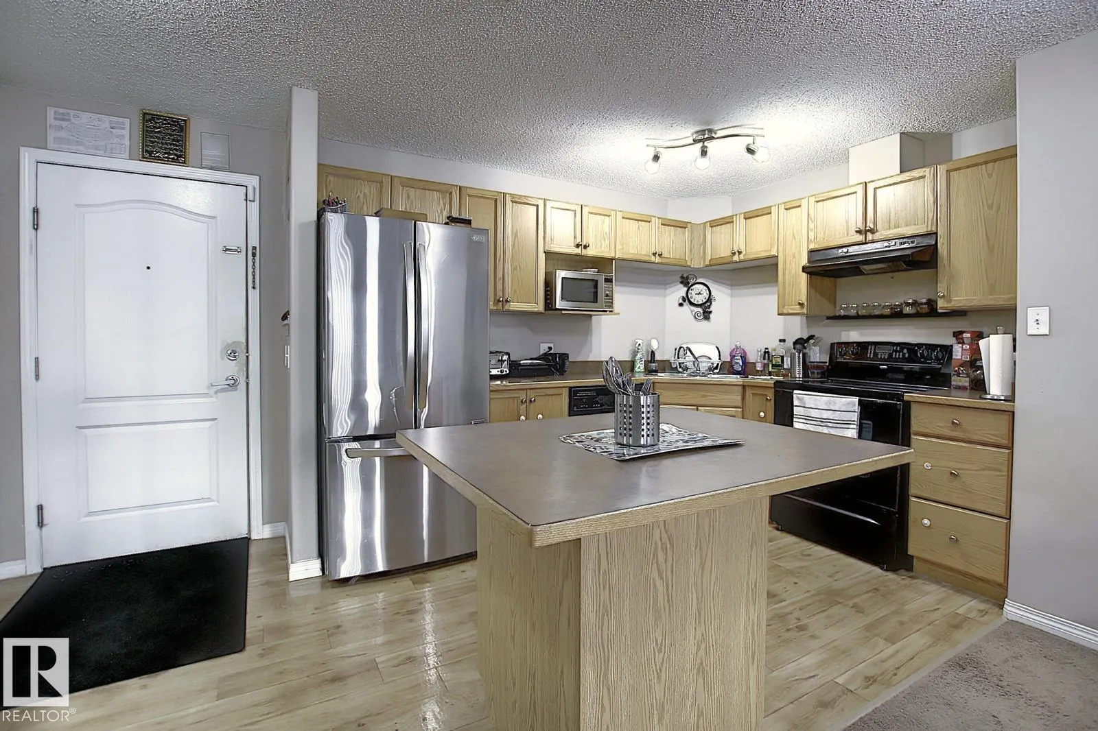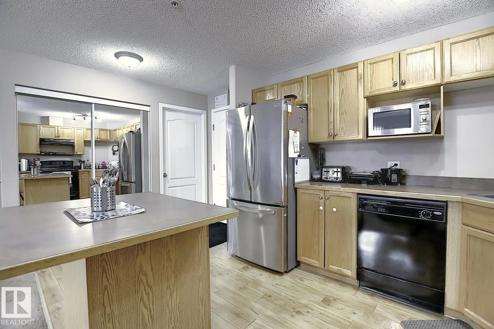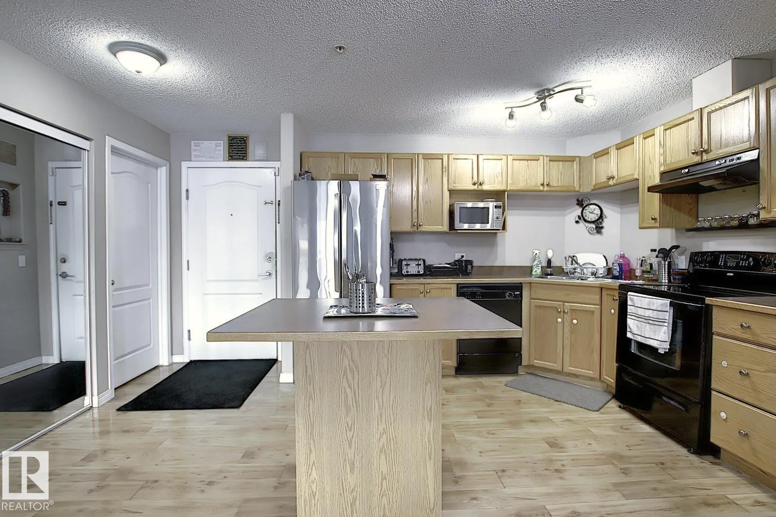 Welcome to Park Place Hampton. This well-kept 2 bedroom, 2 bathroom condo offers a functional layout with comfortable living space. The kitchen features upgraded oak cabinets, plenty of counter space, black appliances, and a large island thatâs great for everyday use or casual dining. The primary bedroom includes a walk-in closet and a full ensuite, while the second bedroom is set on the opposite side, making it ideal for guests or a home office. Youâll also find in-suite laundry, extra storage, and a titled above-ground parking stall. Conveniently located within walking distance to schools and just minutes from Anthony Henday, Whitemud Drive, and West Edmonton Mall, with easy access to all amenities. (id:27476)