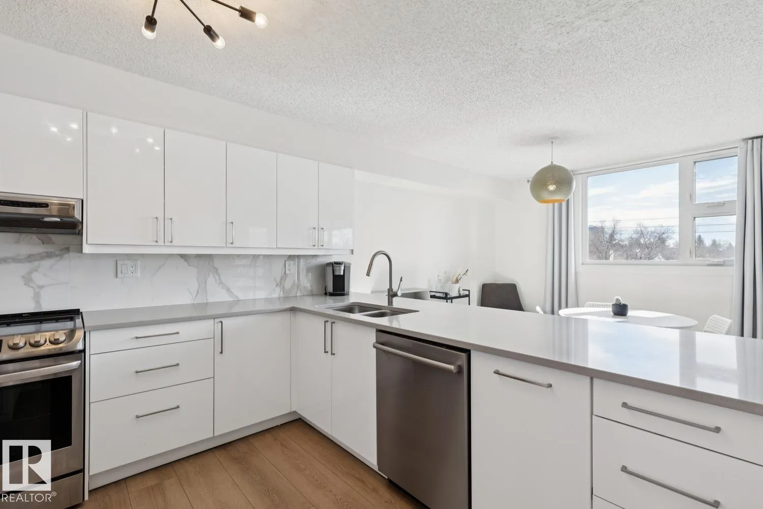EXTENSIVELY RENOVATED AND MAGNIFICIENT LOCATION STEPS FROM EDMONTON'S RIVER VALLEY! This 1100+ sqft, 2 bed/2 bath, adult (18+) unit is available in the sought after Waterford House on desirable Saskatchewan Drive! Very open and functional floor plan features gorgeous kitchen w/quartz counters, premium cabinetry, and s.s. appliances. Bright and spacious living/dining areas, primary suite complete w/walkthrough closet and 4-pc ensuite, ample 2nd bedroom, additional 4-pc bathroom, laundry/storage room, and HUGE wrap around patio! Recent upgrades include: kitchen, flooring, paint, fixtures, and more. Heated underground parking, exercise/games room, and healthy reserve fund make this a true turnkey property. Located minutes from the U of A, Whyte Ave, Downtown, and River Valley....great unit in a great location! (id:27476)