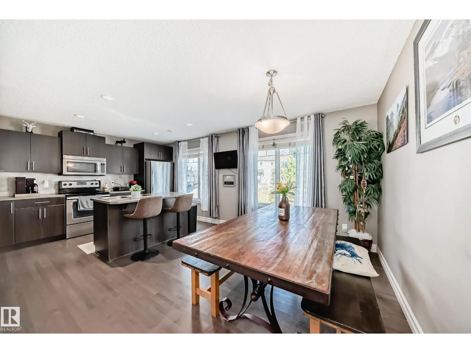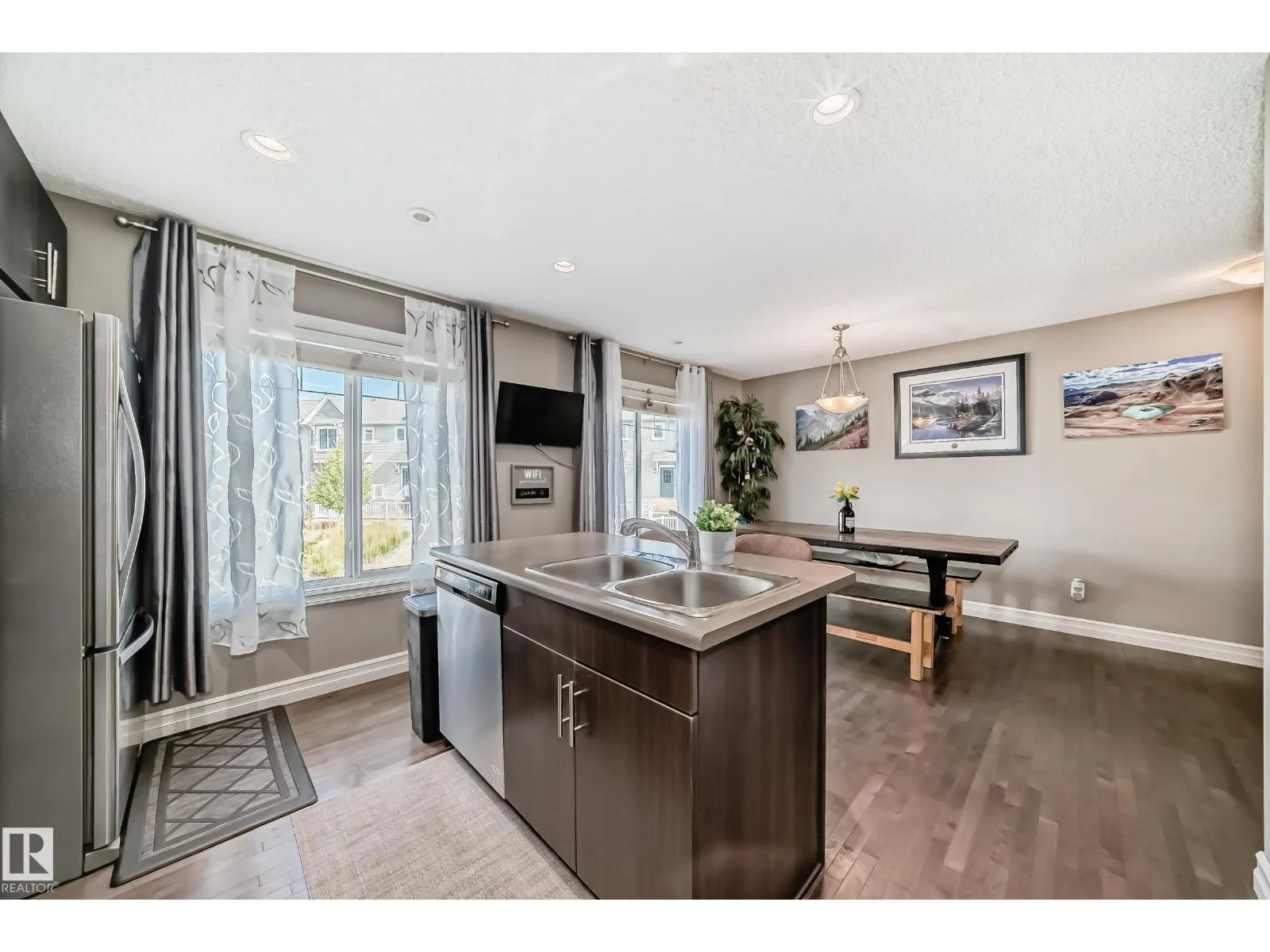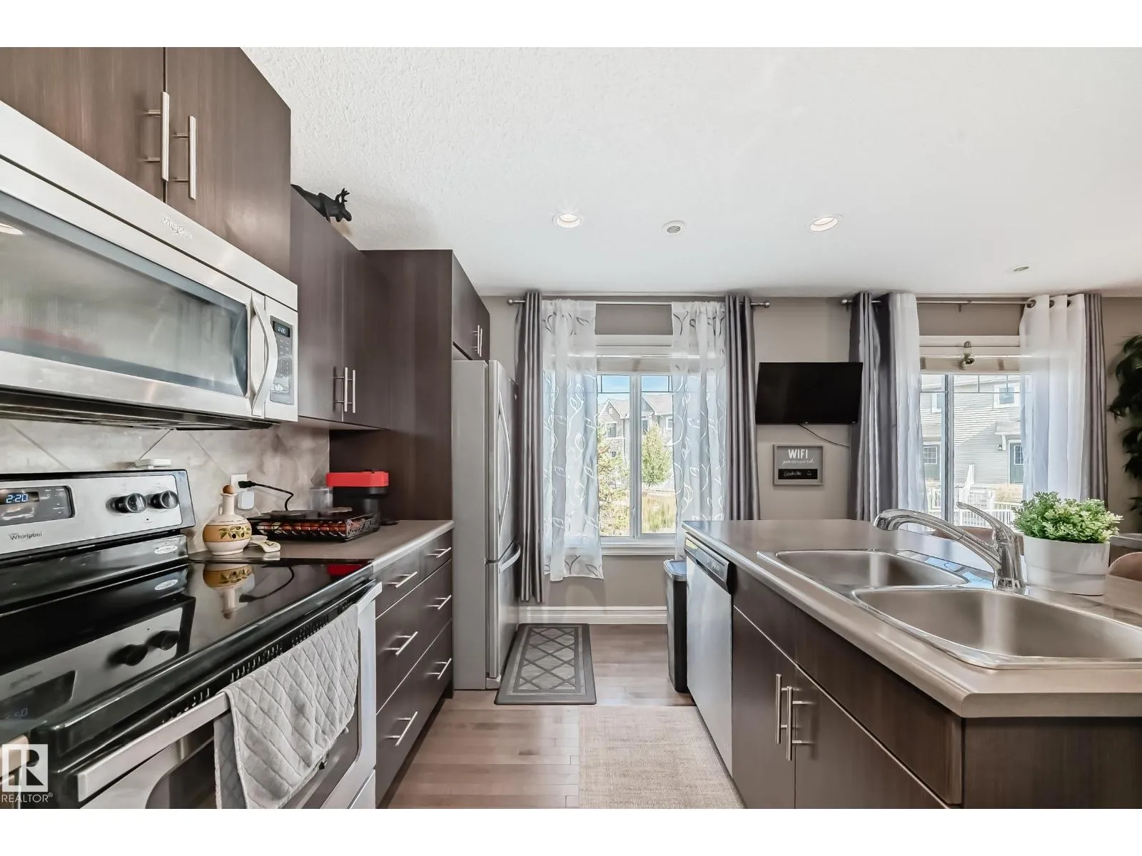 Welcome to this beautifully located 2-storey townhouse in Clareview, one of the few units facing a wide open greenspace with direct access to parks and walking trails. This bright and inviting home offers 3 spacious bedrooms and 2.5 bathrooms. The main floor features a modern kitchen with sleek countertops and stainless steel appliances, flowing seamlessly into the dining and living areasâperfect for entertaining or relaxing. Large windows fill the space with natural light, enhanced by the comfort of central A/C and a smart thermostat. A convenient 2-piece bath and stacked washer/dryer complete the main level. The lower level includes an attached double garage and utility room with a tankless hot water system. Enjoy your own fenced front yard, ideal for BBQs and outdoor lounging, with no immediate neighbors behind. Located minutes from Manning Town Centre, Anthony Henday, and within walking distance to the LRT, Clareview Rec Centre, Cineplex, and a fully fenced dog park. (id:27476)