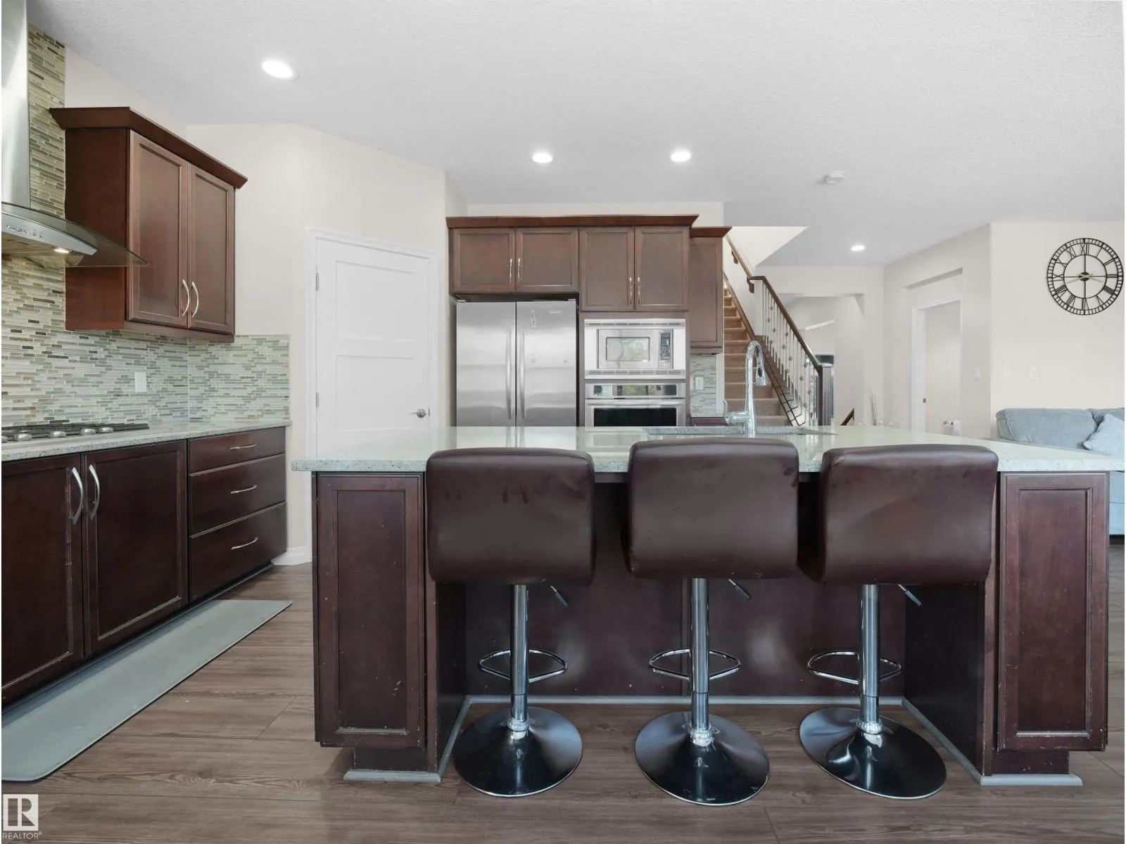 Welcome to this stunning 2-storey home offering 2,081 sq ft in the sought-after Orchards community of SW Edmonton. With 9 functional spaces (4 bedrooms, 2 dens/offices, 2 family rooms, and a living room), plus 3 full baths and 2 half baths, this home is perfect for growing families. The main floor features a bright open-concept layout with a large island, rich cabinetry, stainless steel appliances, and a dining area that opens to a spacious deck and fully fenced yard. Upstairs offers a primary suite with walk-in closet and ensuite, 2 bedrooms, a full bath, laundry, and a bonus room. The fully finished basement adds extra space, a full bath, and future suite potential. A standout feature is the oversized double garage with a saloon/executive room and its own washroomâideal for a home office or private retreat. Close to the Orchards Club House and all amenities! (id:27476)