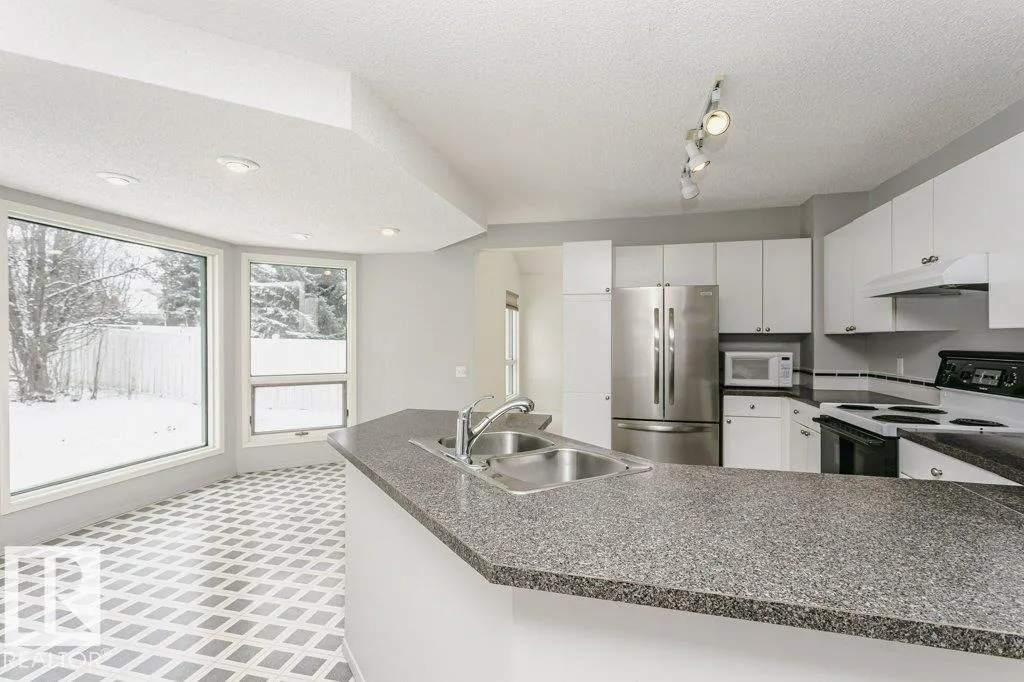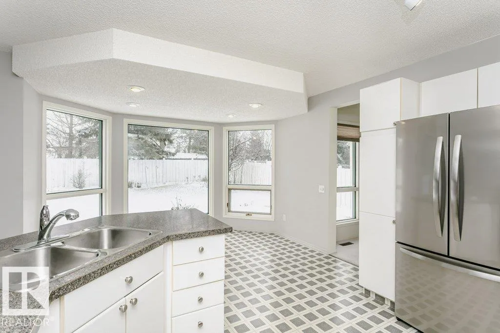 Welcome to Falconer Heights, a highly regarded, family-friendly community in Riverbend, southwest Edmonton. Situated on a quiet street with a generous backyard, this home is close to excellent schools, the river valley, walking trails, public transit, shopping, and the Terwillegar Recreation Centre. Move-in ready with outstanding potential, it offers the opportunity to update and make it your own. The main level features vaulted ceilings, bright living and dining areas, a family room, half bath, spacious mudroom with laundry, and a sun-filled kitchen. Upstairs includes a large primary bedroom with five-piece ensuite, jetted tub, tiled shower, and walk-in closet, plus two additional bedrooms and a full bathroom. The developed basement offers a versatile recreation space ideal for entertaining or play, as well as ample storage. Recent updates include a new furnace and hot water tank (Jan 2026) and newer fridge, washer, and dryer (Jan 2025). A rare opportunity in Falconer Heights. (id:27476)