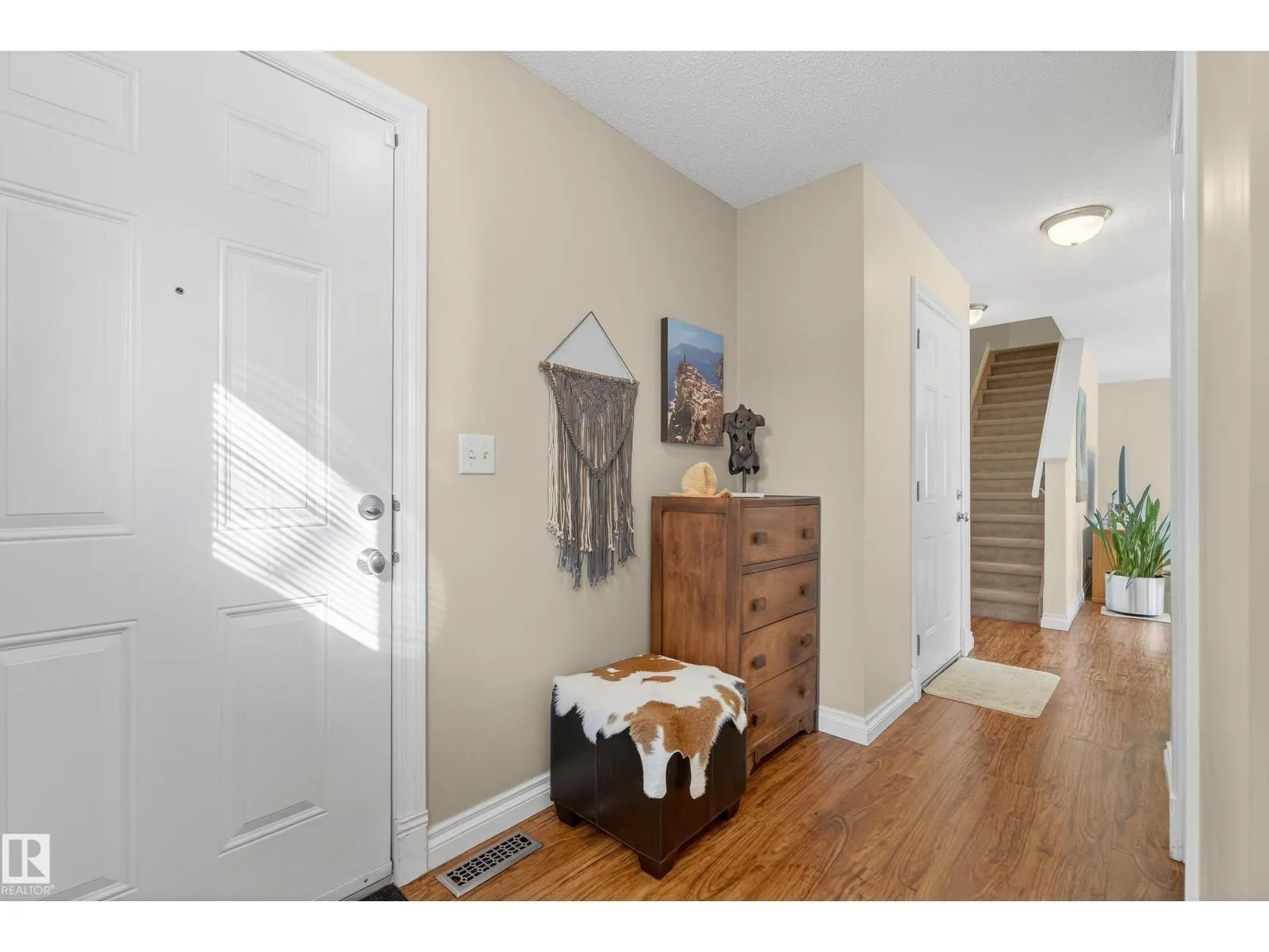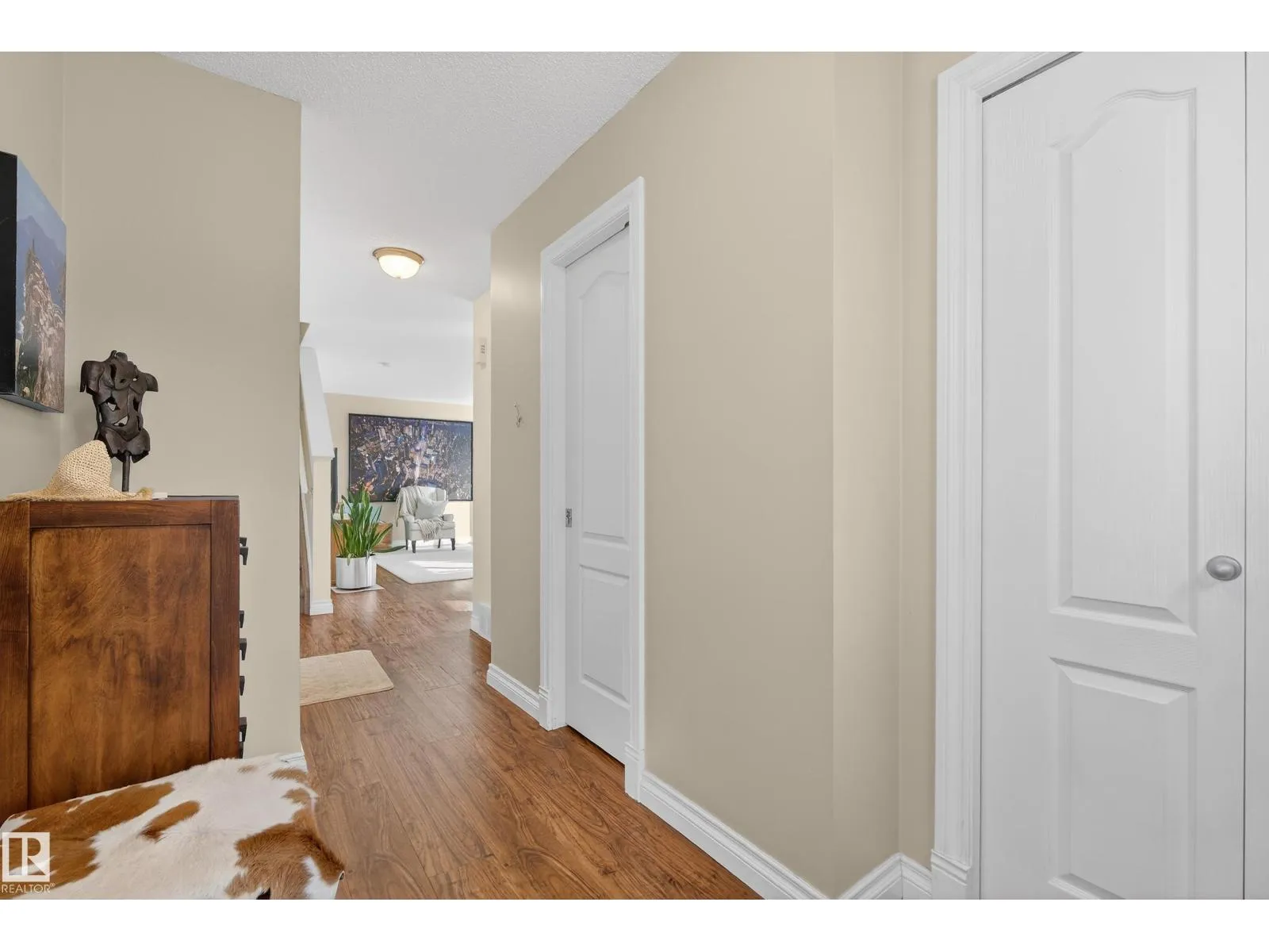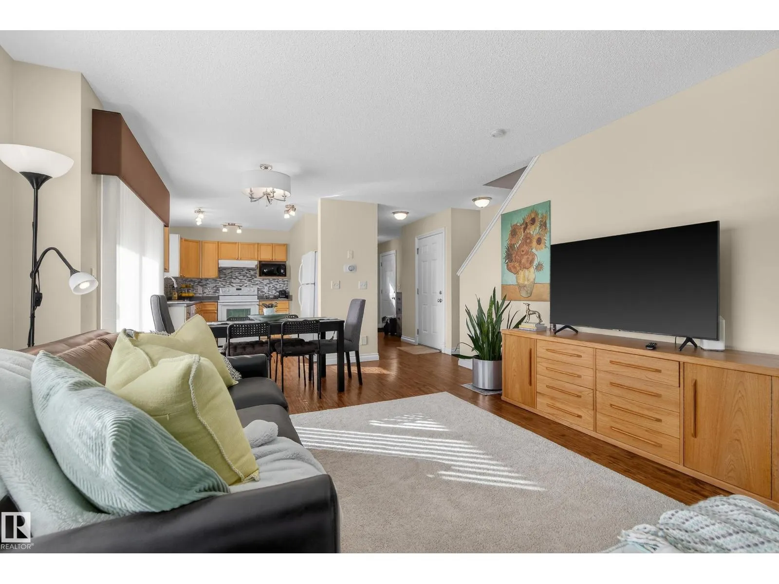 SERENE END-UNIT WITH UNBEATABLE VIEWS. Experience one of the best locations in Rutherford! This charming end-unit townhouse offers the rare luxury of backing directly onto a lush green space and scenic walking trails. The main floor features an inviting open-concept layout with durable vinyl flooring and large windows that bathe the home in natural light. Step through the sliding patio doors to your private outdoor space, the perfect spot for morning coffee overlooking the green backyard space. The functional kitchen and dining area provide a cozy heart to the home, while the upper level houses a spacious primary suite with a walk-in closet, a well-sized second bedroom, and convenient laundry. A true standout feature is the unfinished basement: featuring a large window and an open layout, it is a hidden gem ready to be finished into an additional bedroom or a bright family room. Complete with a garage and parking pad. Close to schools, shopping, and the Henday. Welcome home! (id:27476)