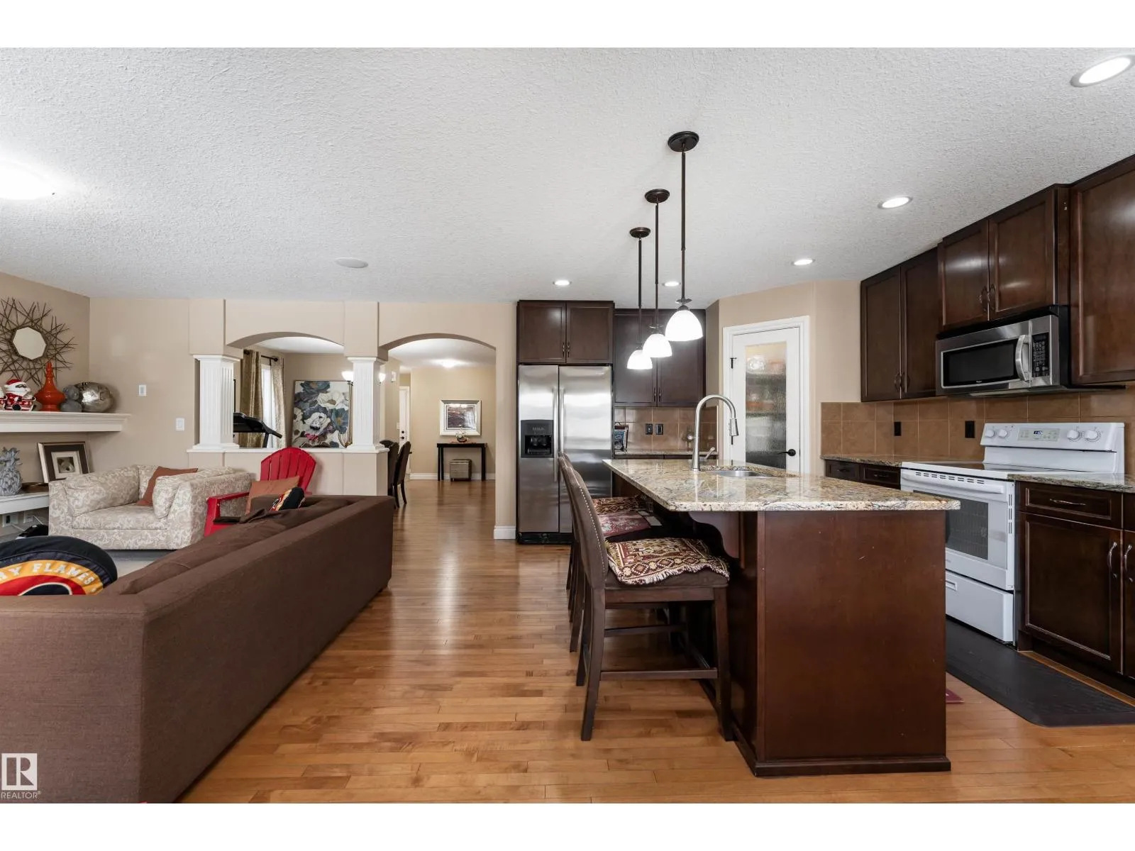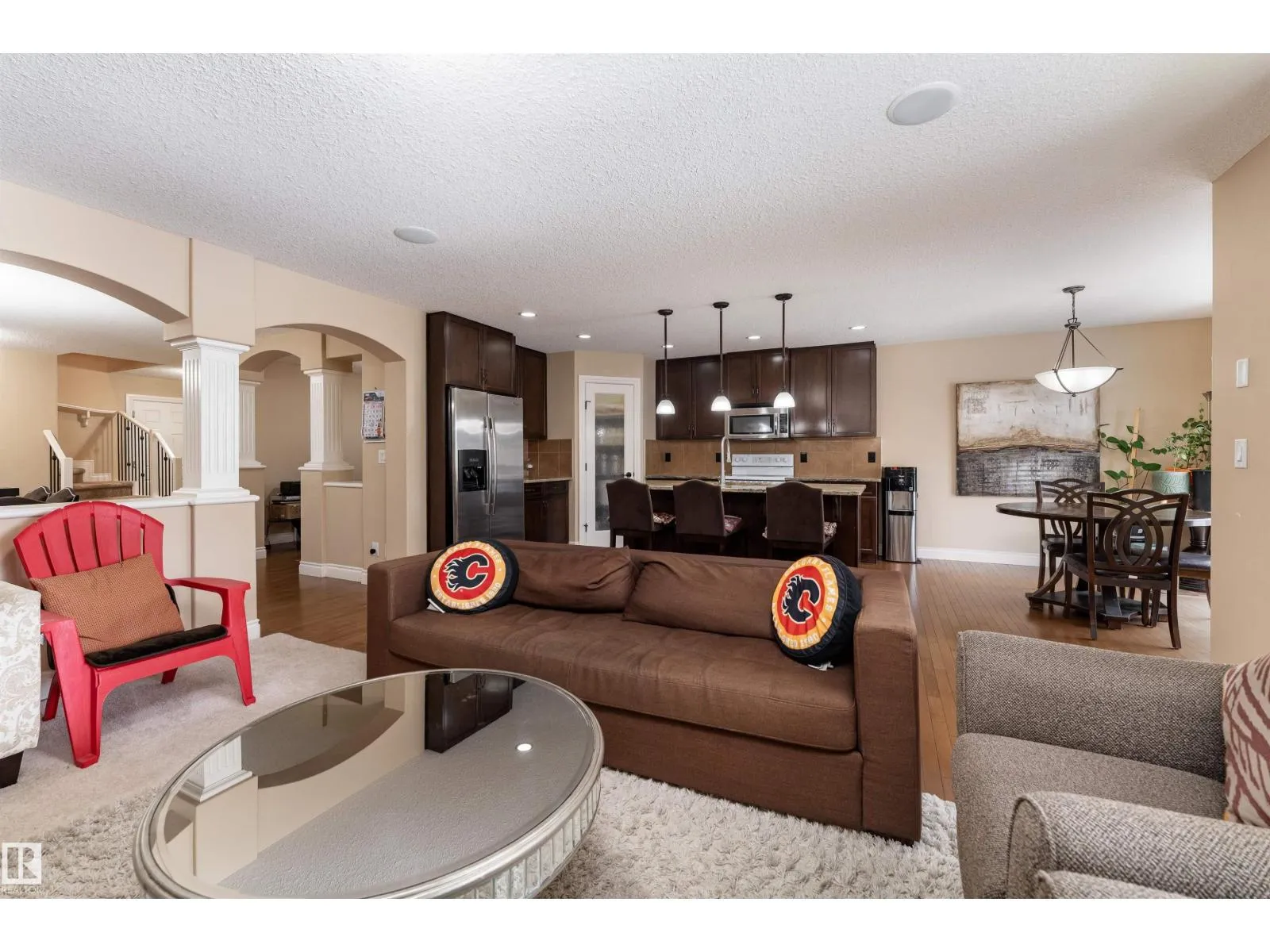 A home that stands out from the rest, offering 2,450 sq ft of functional living space, a fully LEGAL BASEMENT SUITE, and a prime location in the community of Maple Crest. Step into this stunning two-storey with a SEPARATE ENTRANCE, ideal for extended family, rental income, or multi-generational living. The main floor features hardwood flooring, an open-concept layout, a spacious kitchen with granite countertops, ample cabinetry, a large island, formal dining area and den. Upstairs offers a bright bonus room, 4 bedrooms, upper laundry, and a spacious primary suite with a spa-like ensuite and walk-in closet. The fully finished LEGAL BASEMENT SUITE includes its OWN ENTRANCE, laundry, second kitchen with island, dining area, living space, and 2 bedrooms. Outside youâll find a wide SOUTH EAST BACKYARD & a heated, double attached garage, all located on a quiet CUL-DE-SAC backing a RAVINE and walking TRAILS! Close to schools, parks, shopping, and major routes. A home that truly delivers on every level. (id:27476)