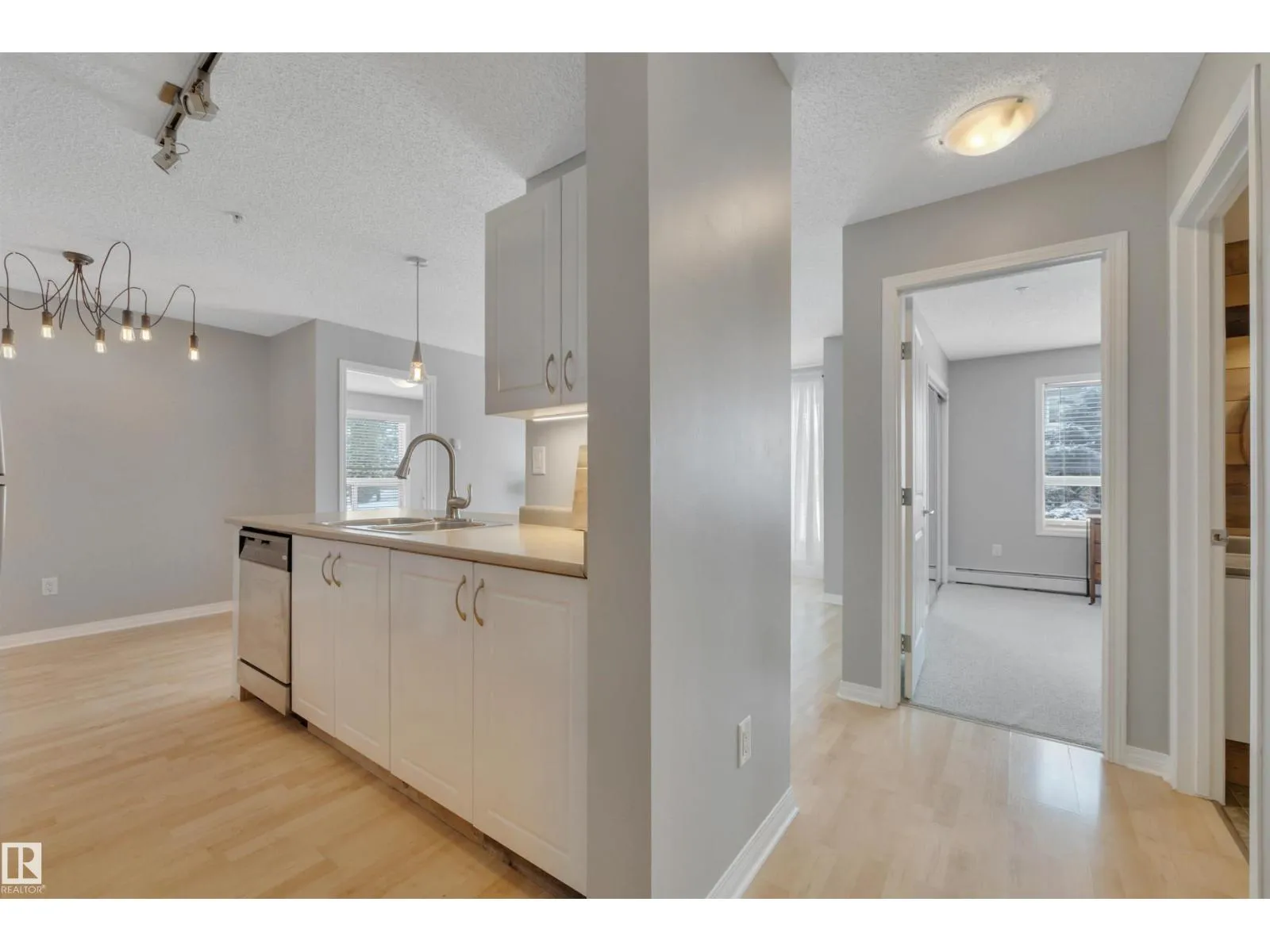 Welcome to Hudson Village,where comfort meets quiet community living. This 2 bedroom, 2 bath ground-floor corner unit backs onto a beautifully landscaped yard and a peaceful residential area, offering a tranquil setting rarely found in condo living. Freshly painted in neutral tones, the home features laminate flooring throughout the main living areas with newer carpeting in the bedrooms. The bright kitchen includes white cabinetry, a neutral countertop, and stainless steel appliances, with a newer fridge and over-the-range microwave. A separate laundry and storage room adds convenience. Both bathrooms feature rustic shiplap accents, creating a warm cabin-inspired vibe in the city, complemented by upgraded light fixtures, white doors and trim, new hardware, and 2-inch slat blinds throughout. Step outside to the private concrete corner patio, where you can open the windows and listen to birds in the trees while enjoying the peaceful surroundings. Heated underground parking stall steps from the elevator. (id:27476)