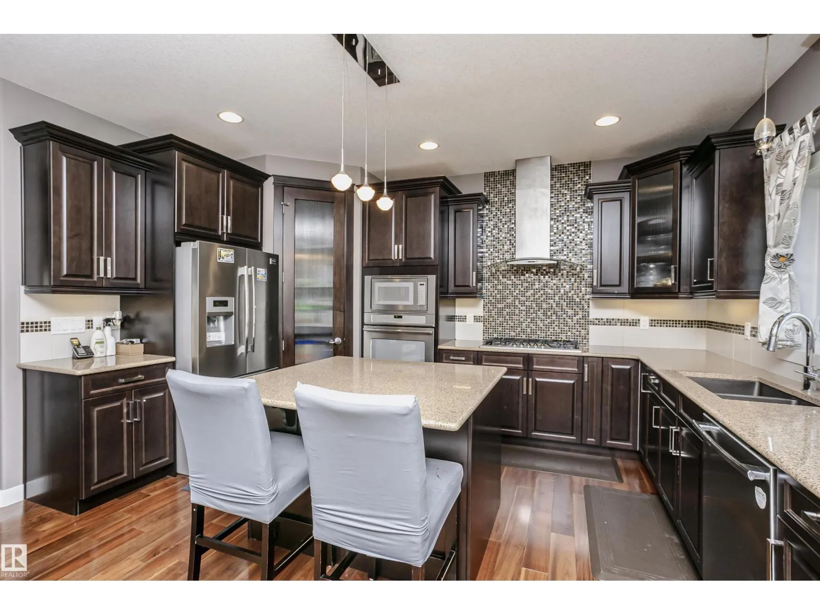 Welcome to Glenridding! Backing onto a peaceful lake, built by Parkwood master builders, featuring a fully finished walkout basement (separate entranced). Grand foyer with soaring ceilings. 9' ceilings on both the main floor and basement. Sun-filled living room with fireplace and patio doors leading to a large deck, showcasing stunning lake views. Gourmet kitchen with wood cabinetry, granite counters, and stainless steel appliances. Main floor also includes 2 offices/dens and a Formal Dinning room. Upper floor offers vaulted-ceiling bonus room, 3 large bedrooms, laundry room, and 4-piece bath. Primary suite includes walk-in closet and 5-piece ensuite. Basement features perfect setup for a in-law unit, a family room, 2 x bedrooms, 4-piece bath, and a 2nd butlers kitchen with appliances, just need the cabinets to complete! Additional highlights include wide driveway, triple pane windows, water softener, soundproof basement, open riser staircase w/ wrought iron railings & maintenance free yard! (id:27476)