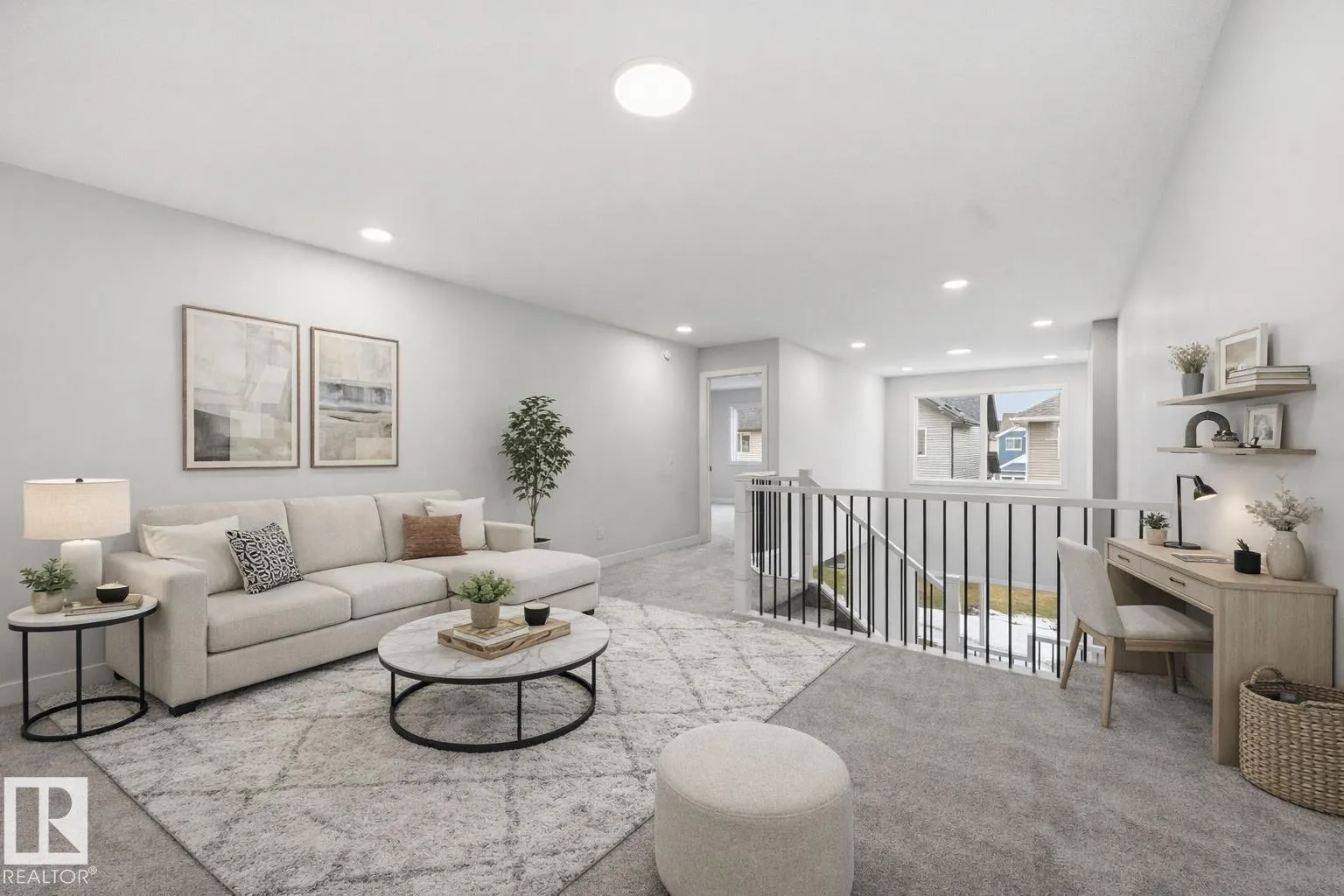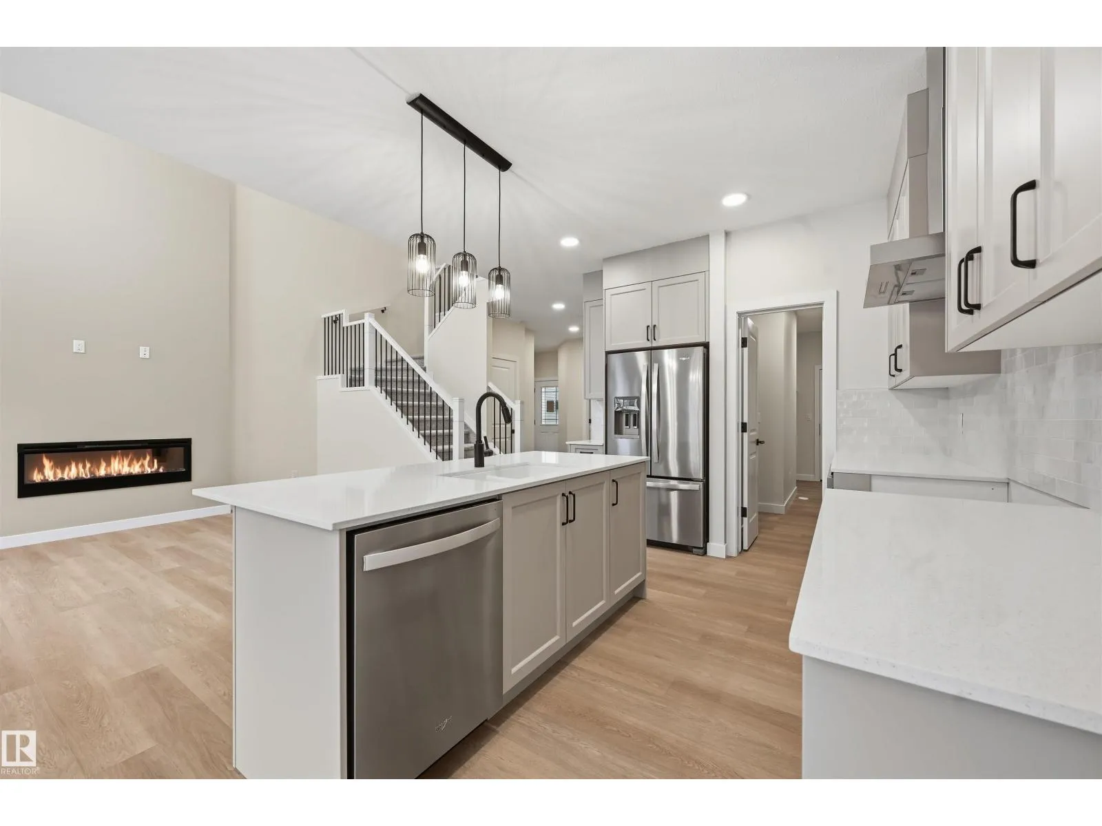 Quality built by Landmark Homes (with nearly 50 years experience in Edmonton)! Boasting nearly 2,100sf this popular floor plan includes a MAIN FLOOR BEDROOM & FULL BATH plus 3 bedrooms upstairs. Bright interior with OPEN-TO-BELOW living room with floor-to-ceiling feature wall & electric fireplace. Kitchen upgrades include full height & soft-close cabinetry, counter-to-cabinet backsplash & a walk through pantry. Plush carpeted 2nd level w/ bonus room, laundry room & large primary retreat with 5pc ensuite & walk-in closet. Features include: SIDE ENTRANCE, 9' ceilings, ENERGY STAR STAINLESS STEEL APPLIANCES including washer & dryer, LVP flooring, cast iron spindle railings & more. With a focus on innovative & energy efficient homes, find features such as tankless hot water heater, high velocity heating system, heat recovery ventilator, 3-stage air purification system, triple pane windows, R50 insulation, spray foam in garage, frost wall in basement & more. See the difference, feel the difference! (id:27476)