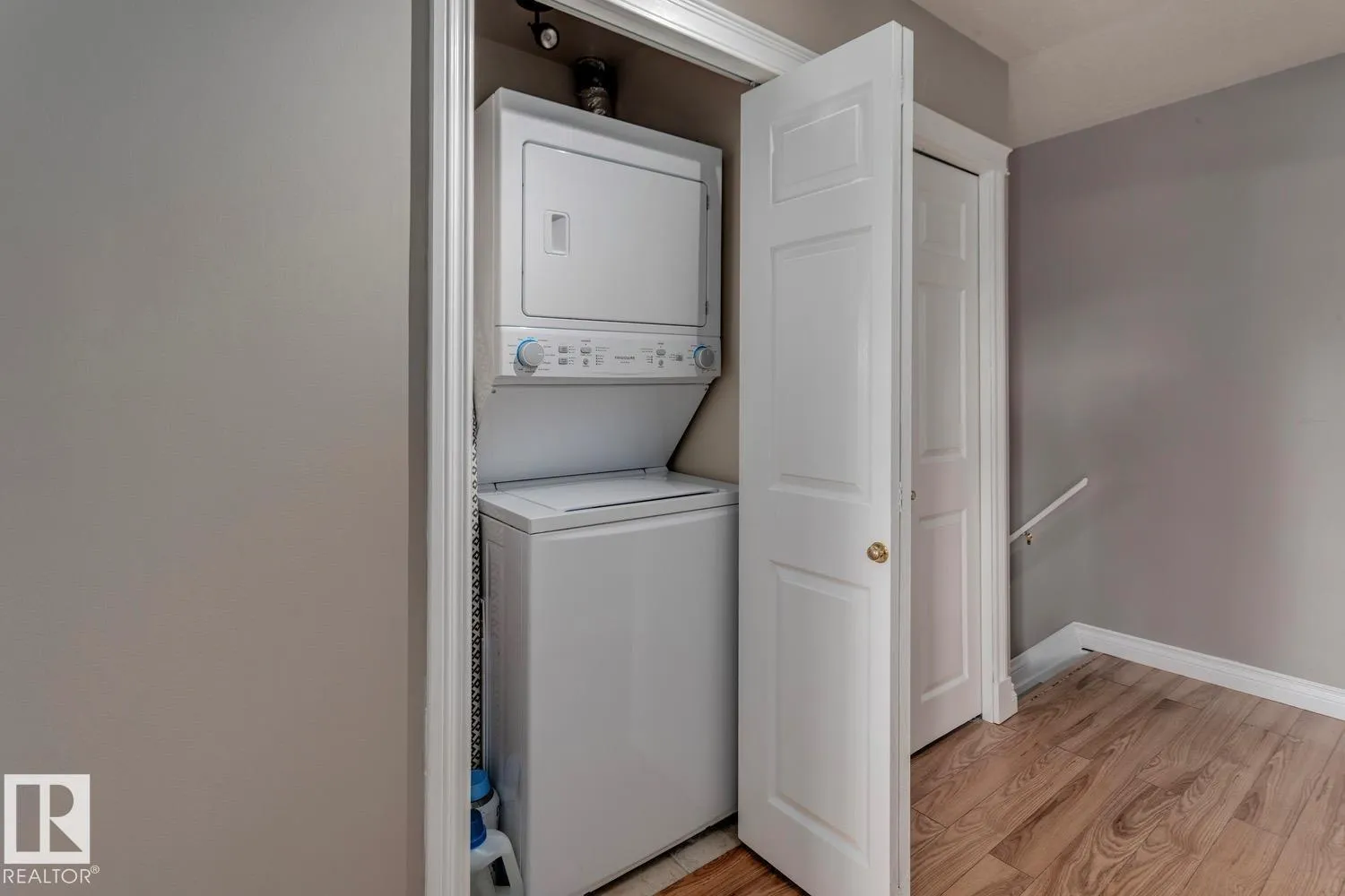 Upscale and stylish two-storey condo perfectly located in Edmontonâs vibrant Westmount community. Offering over 1,100 sq. ft. of thoughtfully designed living space, this home features two spacious bedrooms and two bathrooms. The open-concept main floor boasts a bright and inviting living room, convenient two-piece bath, and patio doors leading to your private west facing balcony. Upstairs, both large bedrooms are complete with walk-in closets, alongside a thoughtfully designed laundry area and an expansive full bathroom. Warm, neutral décor throughout creates a welcoming atmosphere that feels both modern and timeless. A perfect blend of comfort and sophistication in a pet friendly building in one of Edmontonâs most desirable communities. Welcome home! (id:27476)