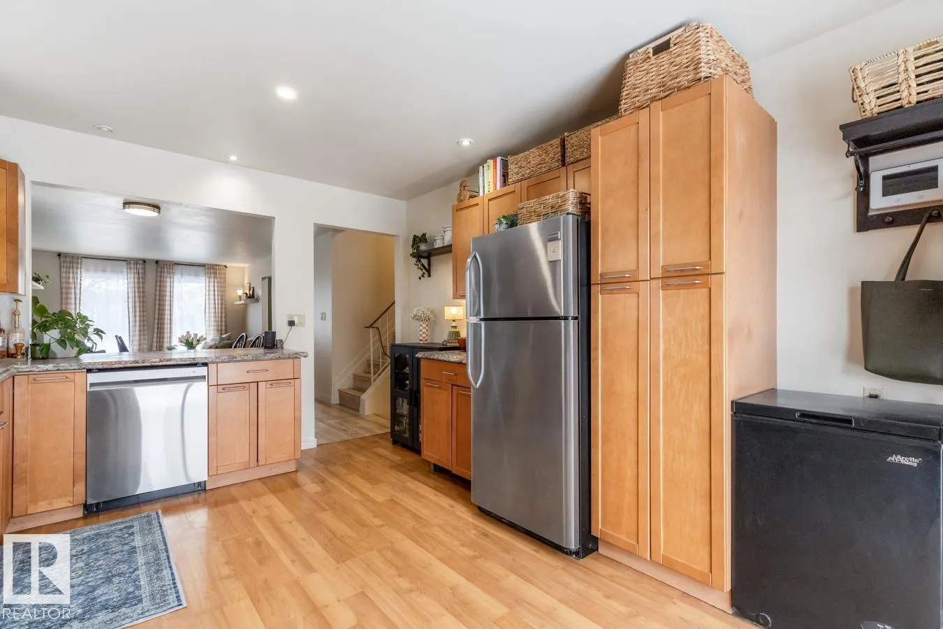 This is the perfect starter home! Tucked away on a quiet street and beautifully maintained, this charming property offers 2 bedrooms & 2 baths. Youâre welcomed by laminate flooring throughout the spacious entry, leading into a bright, family-sized living room filled with natural light and open to the dining area. The kitchen features ample cabinetry, pantry storage & stainless steel appliances. Upstairs, youâll find a king-sized primary bedroom, a generous second bedroom & a 4 pc bath. The lower level adds valuable living space with a cozy family room, 3 pc bath, laundry & plenty of storage. Roof 2018, Hot Water Tank 2023, Windows & Doors 2021 PLUS upgraded insulation & NEW siding! Step outside to a fully fenced, landscaped yard with a patio surrounded by lush gardens, perfect for relaxing or entertaining. Two parking stalls complete this adorable home, ideally located just steps from parks, schools & all amenities! (id:27476)