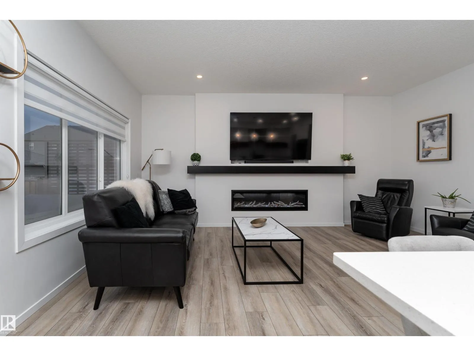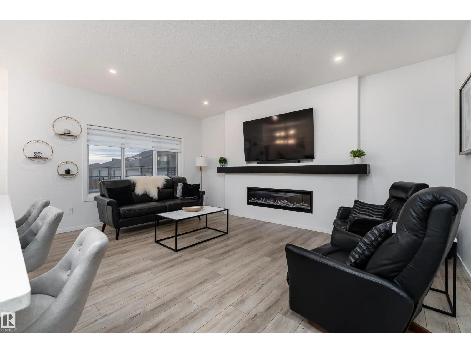 This beautifully designed, Welcome Homesâbuilt two-storey end unit offers 1,826 sq ft of above-grade contemporary living. The bright, open-concept main floor showcases a sleek chefâs kitchen with a gas range and high-end appliances, seamlessly flowing into a spacious living room anchored by a striking feature fireplace. Enjoy the elevated feel of 9-ft ceilings on both the main level and the basement. A stunning glass-railed staircase leads to the upper level, featuring an open-to-below design, a generous family room, convenient upper-floor laundry, and a well-appointed primary retreat complete with a 4-piece ensuite. Two additional bedrooms and a 4-piece main bathroom complete this level. Additional highlights include no condo fees, a double attached garage, a fully fenced backyard with raised deck, and the added confidence of a remaining 10-year structural warranty. This home offers the perfect balance of modern design, comfort, and low-maintenance living. (id:27476)