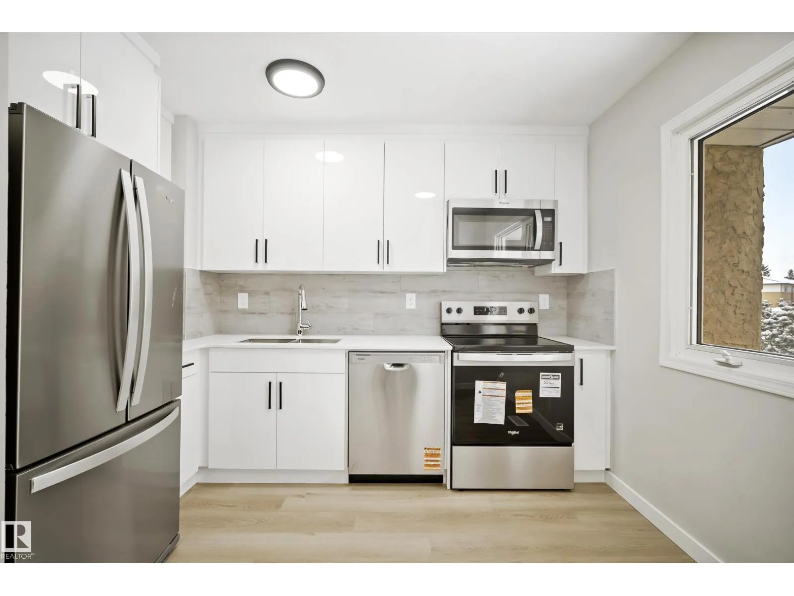Move-in ready! Beautifully updated 3-bedroom, 1.5-bathroom home offering a bright and functional layout in a convenient location. The main floor features new vinyl plank flooring, fresh paint, new light fixtures, and a stunning renovated kitchen with quartz countertops, white cabinetry, and stainless steel appliances. A newly updated 2-piece bathroom completes the main level. Upstairs youâll find three well-sized bedrooms with durable hard surface flooring throughout. The fully finished basement adds valuable living space with a large rec room, laundry area, and plenty of storage. Enjoy the spacious, fully fenced backyard, perfect for relaxing or entertaining. Includes an assigned parking stall. Ideally located just steps to public transit, schools, and everyday amenities, with quick access to Victoria Trail, Yellowhead Trail, and Anthony Henday Drive. (Some photos have been virtually staged with furniture) (id:27476)