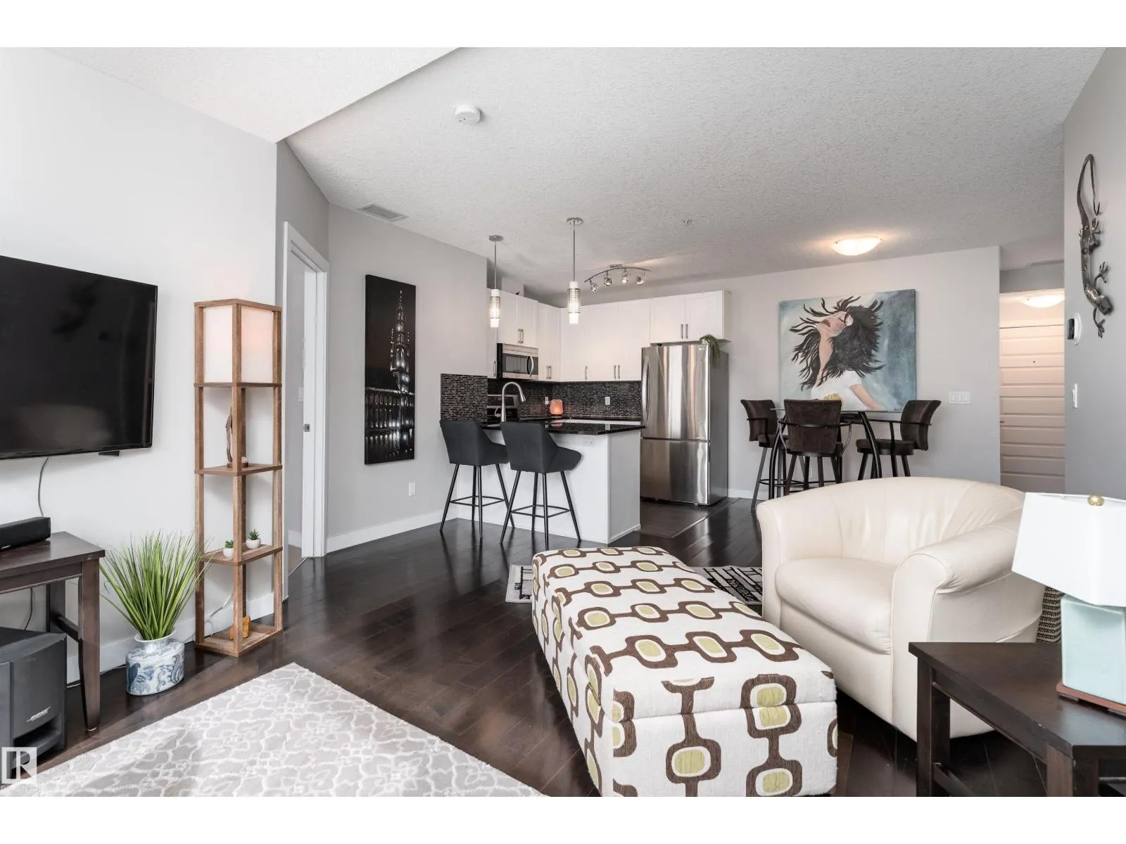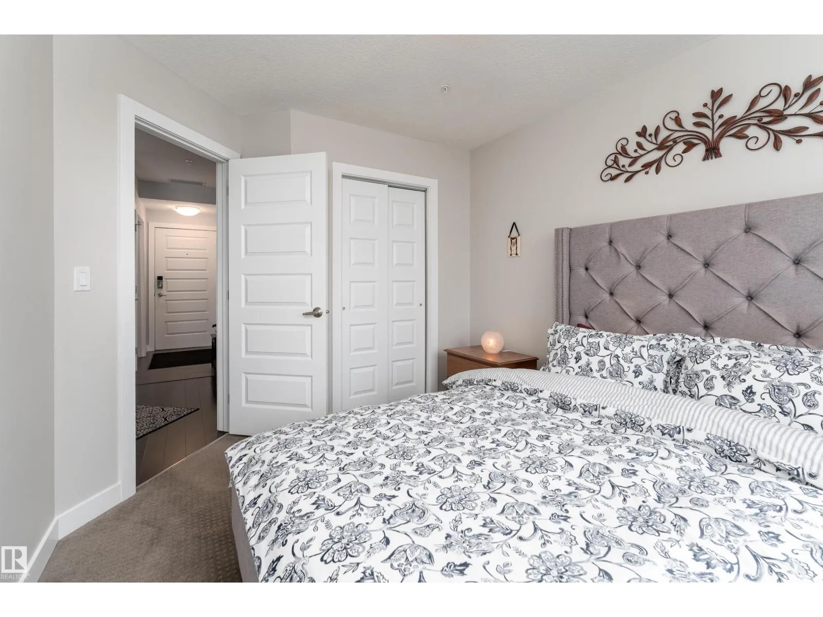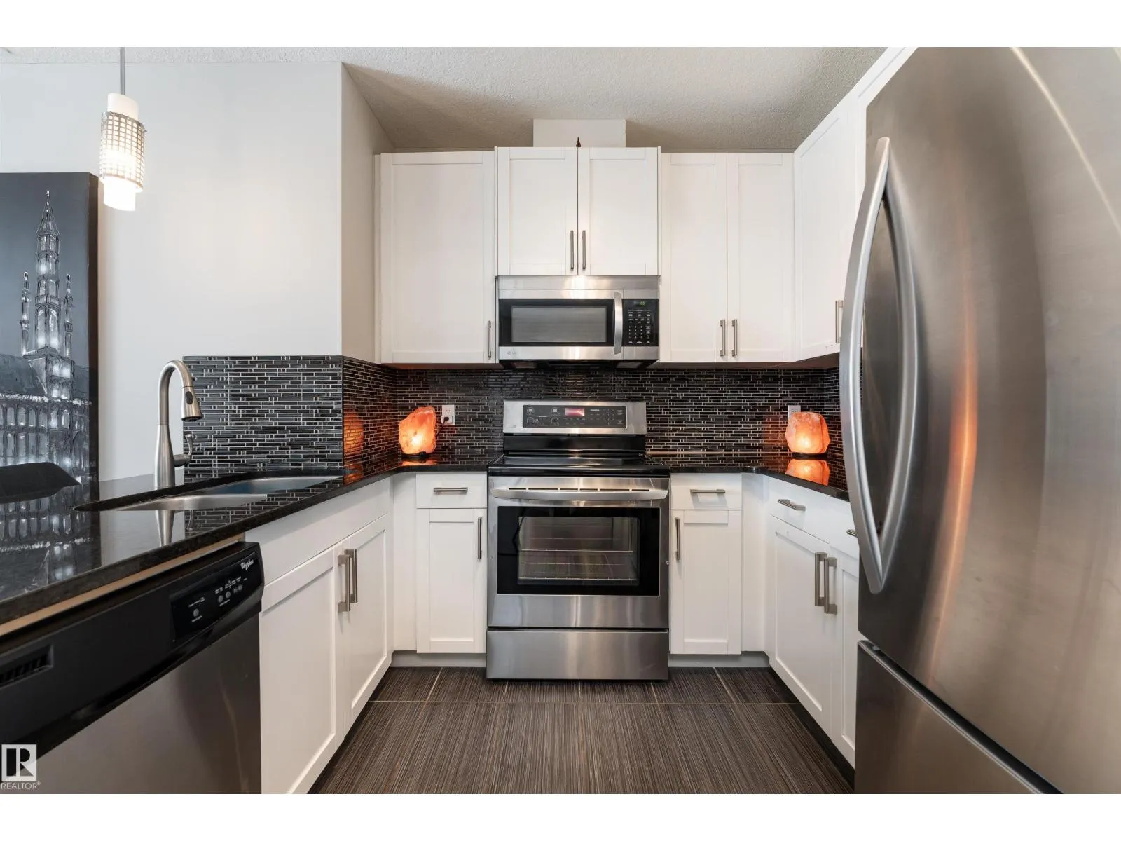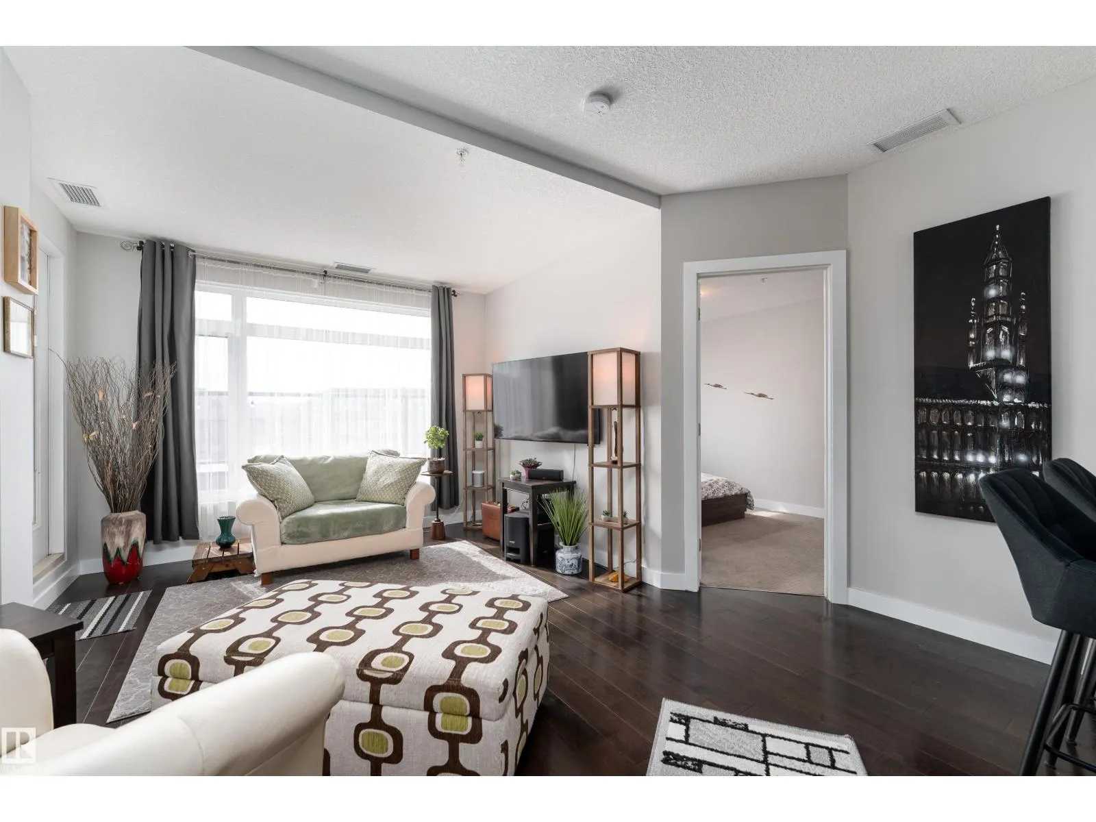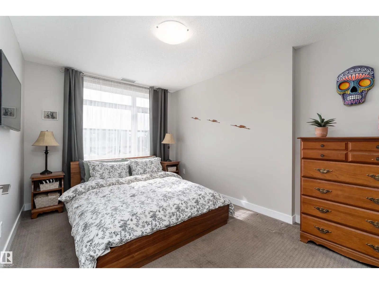 This stunning home has it all-Breathtaking views, a massive south facing private balcony, and a bright, open layout perfect for entertaining, and underground parking. Hardwood floors flow into a modern kitchen with white cabinetry, granite counters, stainless steel appliances, and an eat-up bar. The living room, filled with natural light, opens to a huge balcony overlooking a serene pond, green space, and walking trails. The primary suite offers scenic views, a walk-through closet, and a stylish 3 pc ensuite, while a second bedroom, 4 pc bathroom, and in-suite laundry complete the unit. Additional features include underground titled parking, central A/C, and building amenities like a gym, social room, and concierge. Enjoy the quiet comfort of a solid concrete building that is ideally located near Anthony Henday and within walking distance to restaurants, shopping, and parks, this home truly combines luxury, convenience, and lifestyle in one exceptional package ready to move in and enjoy. (id:27476)