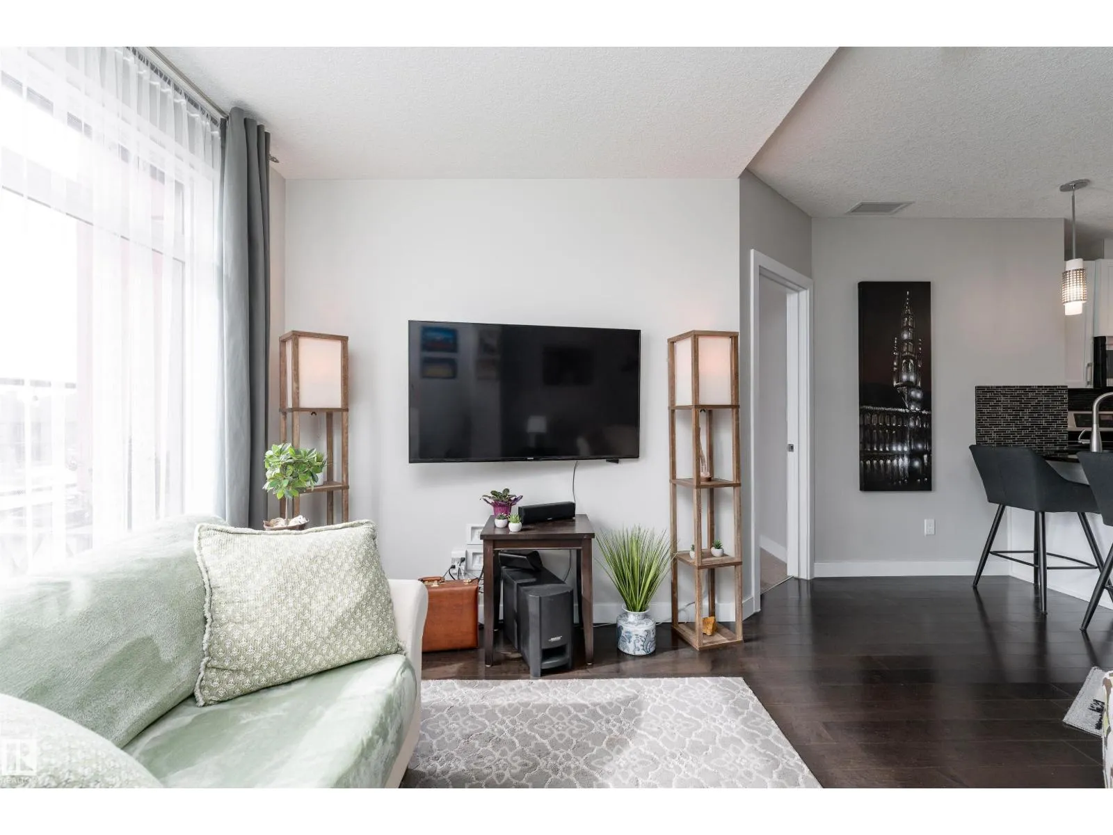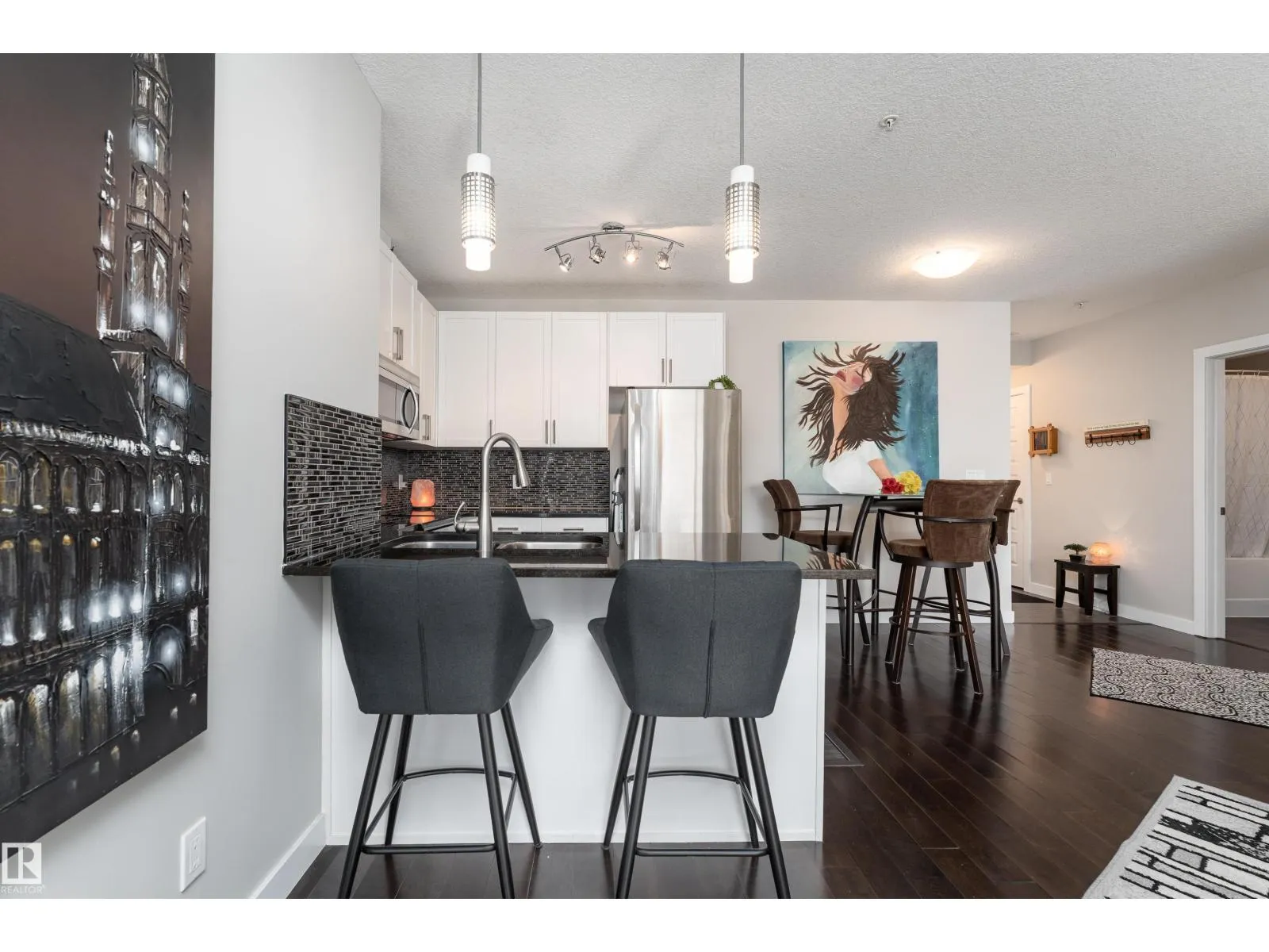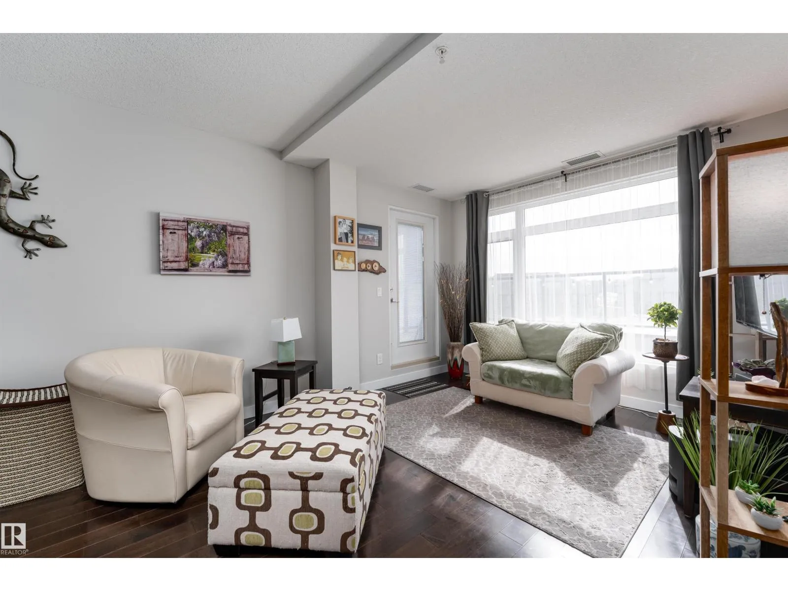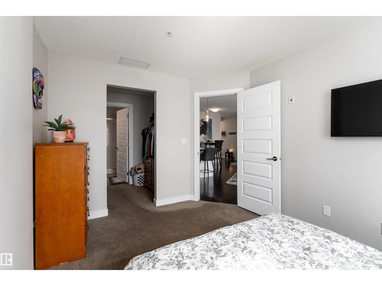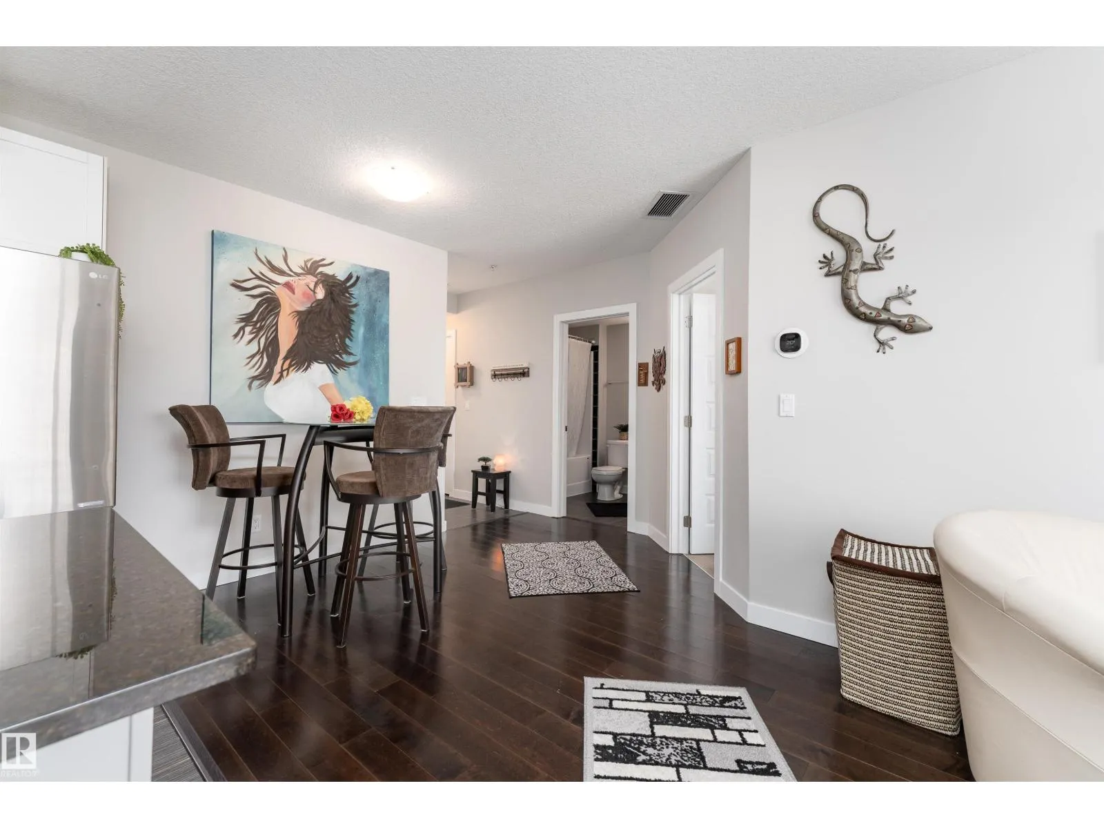 This stunning home has it all-Breathtaking views, a massive south facing private balcony, and a bright, open layout perfect for entertaining, and underground parking. Hardwood floors flow into a modern kitchen with white cabinetry, granite counters, stainless steel appliances, and an eat-up bar. The living room, filled with natural light, opens to a huge balcony overlooking a serene pond, green space, and walking trails. The primary suite offers scenic views, a walk-through closet, and a stylish 3 pc ensuite, while a second bedroom, 4 pc bathroom, and in-suite laundry complete the unit. Additional features include underground titled parking, central A/C, and building amenities like a gym, social room, and concierge. Enjoy the quiet comfort of a solid concrete building that is ideally located near Anthony Henday and within walking distance to restaurants, shopping, and parks, this home truly combines luxury, convenience, and lifestyle in one exceptional package ready to move in and enjoy. (id:27476)
